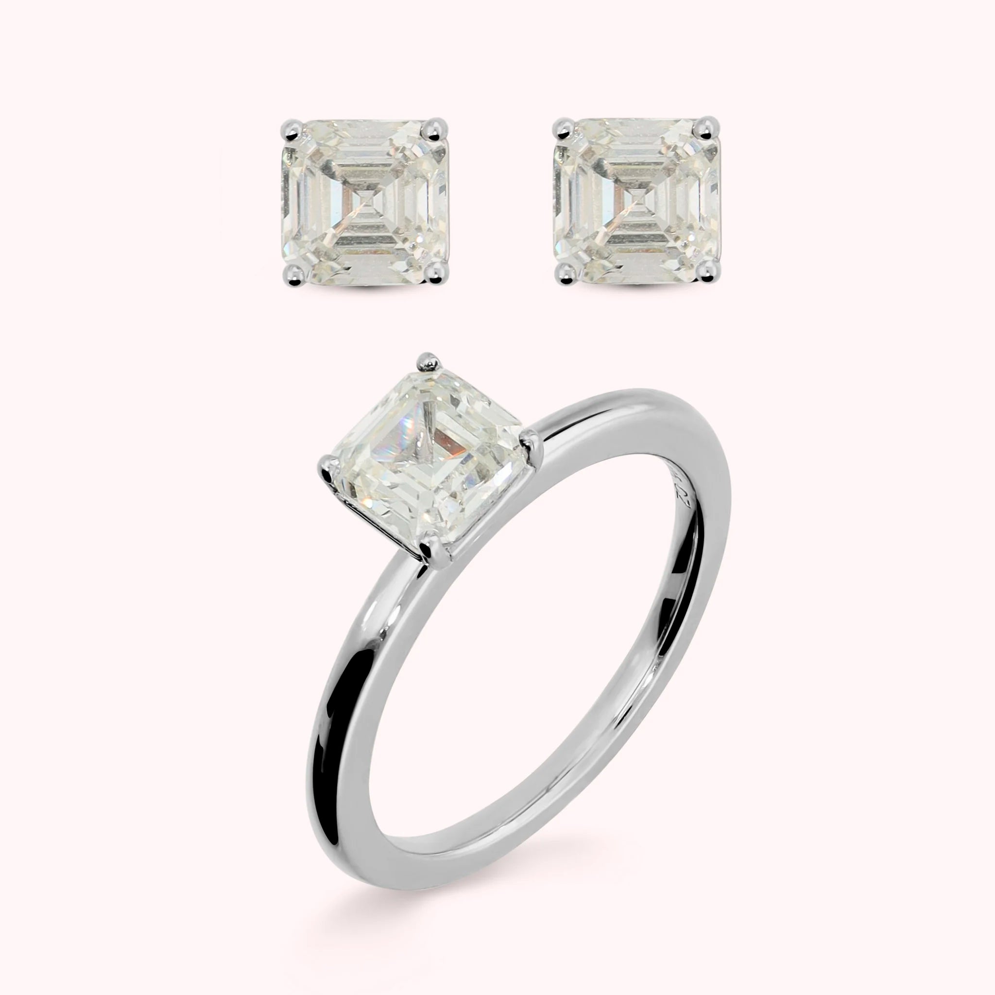 Set Earrings + Solitaire Ring with Princess Cut Cubic Zirconia