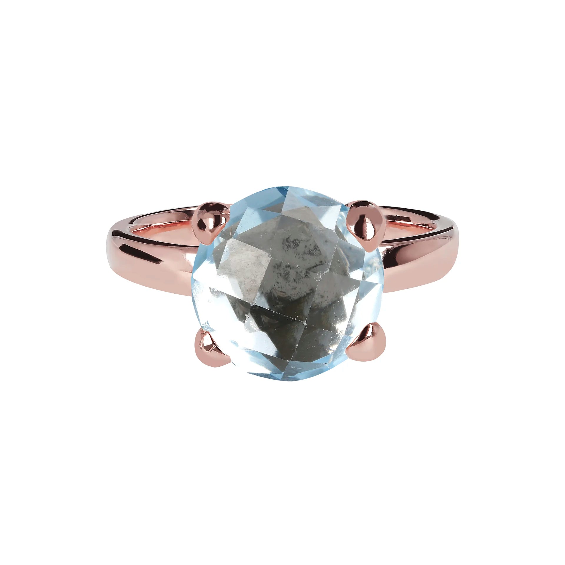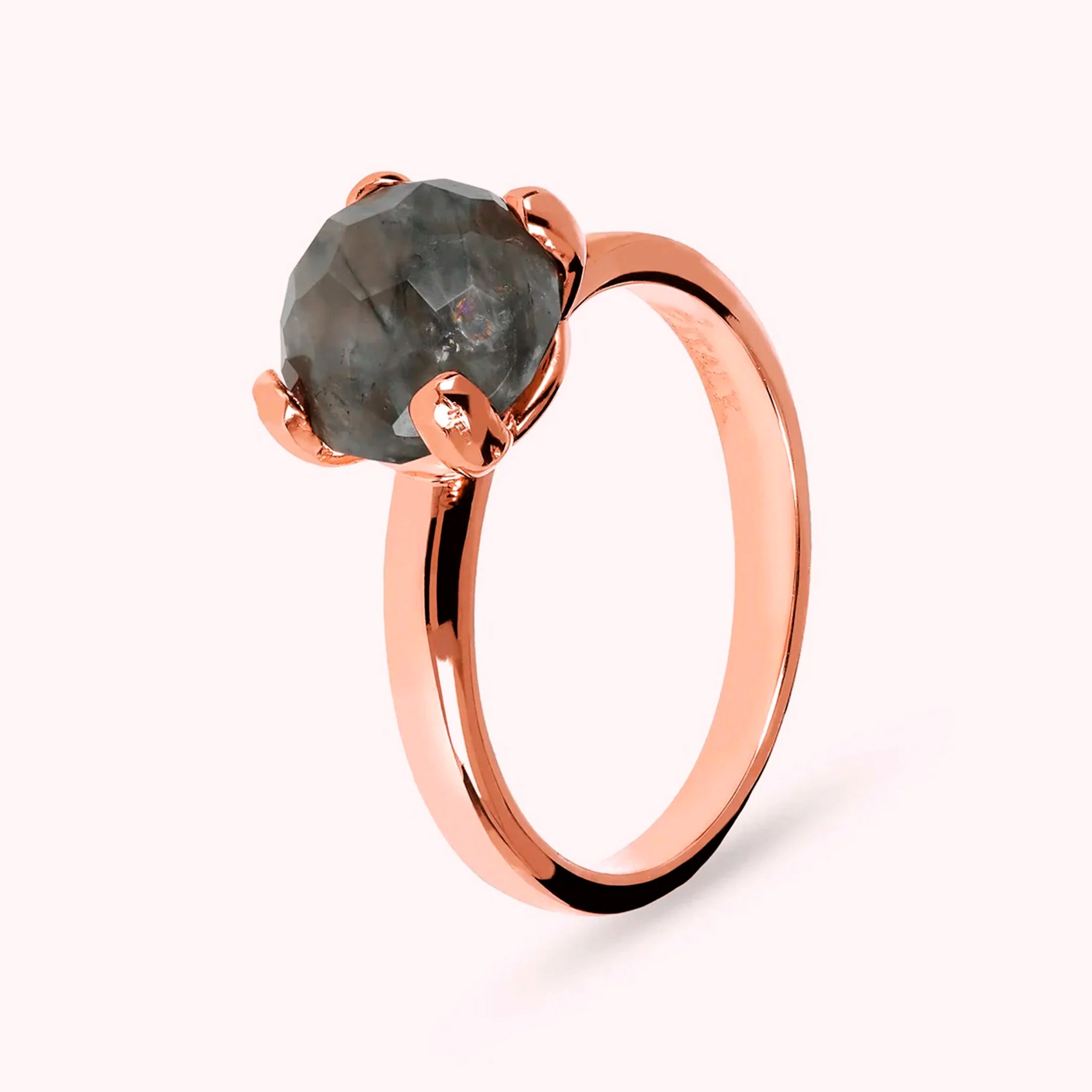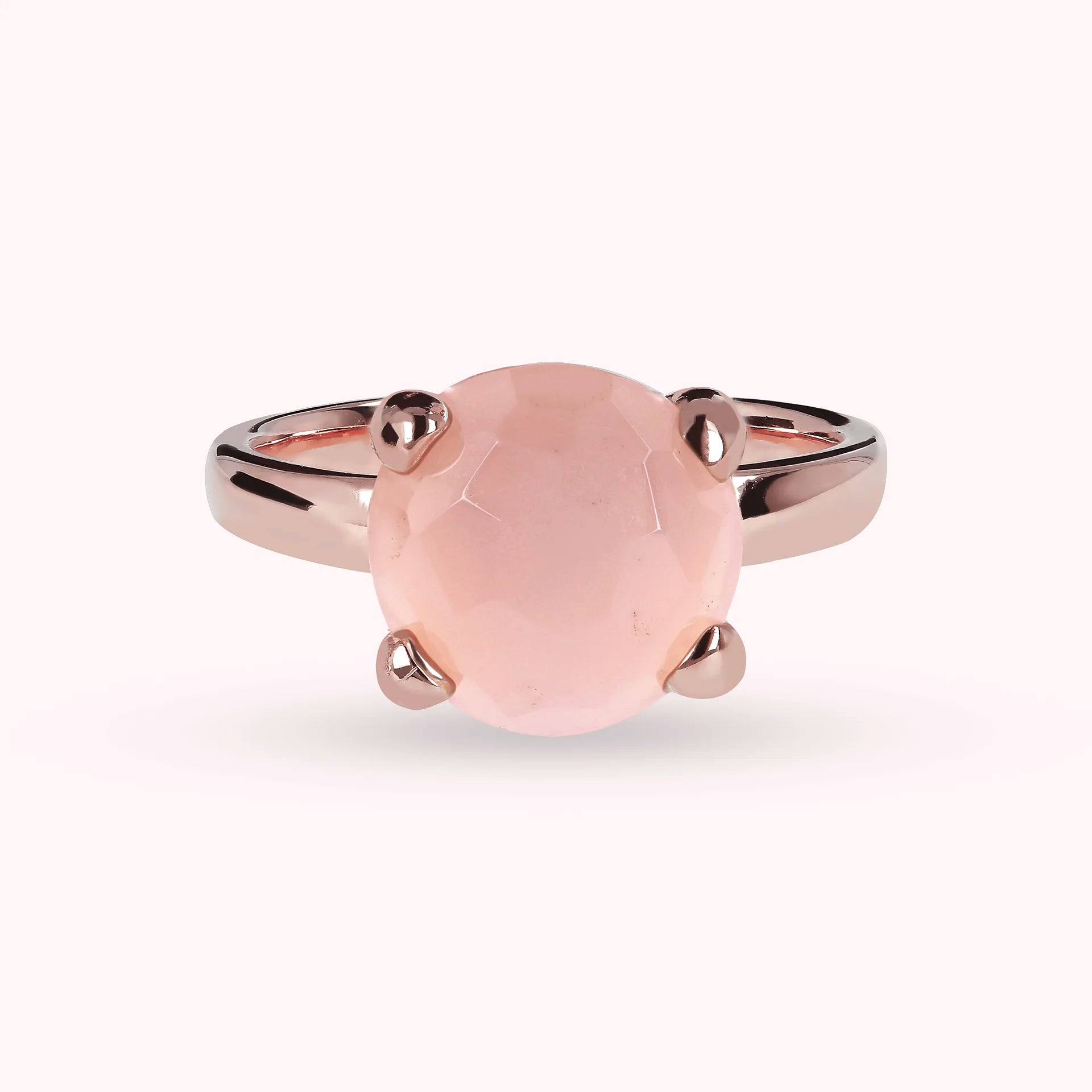 Bague cocktail moyenne Bronzallure en alliage Golden Rosé, doré à l'or fin 18ct, avec une petite pierre naturelle (10 mm) de couleurs vives et de forme ronde.