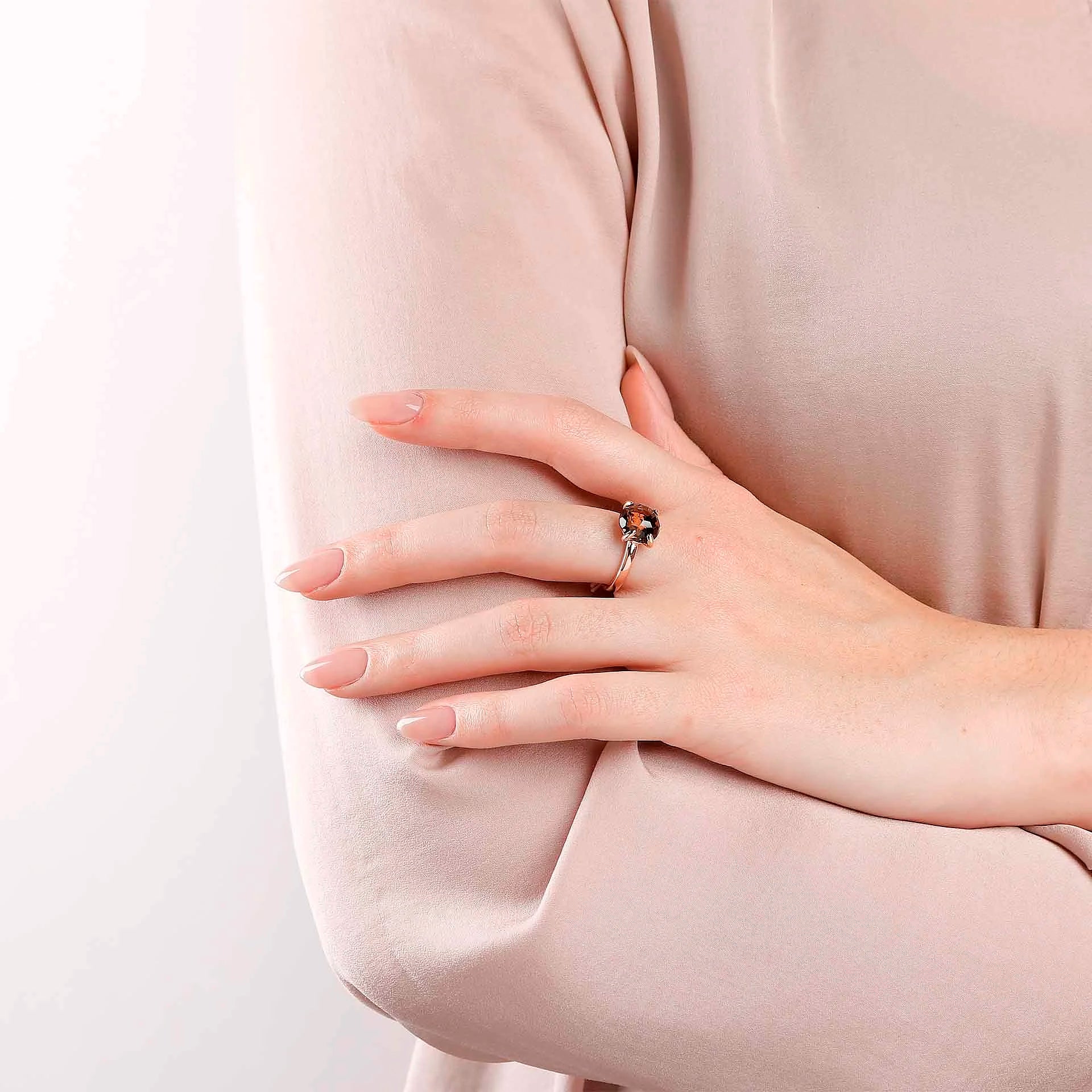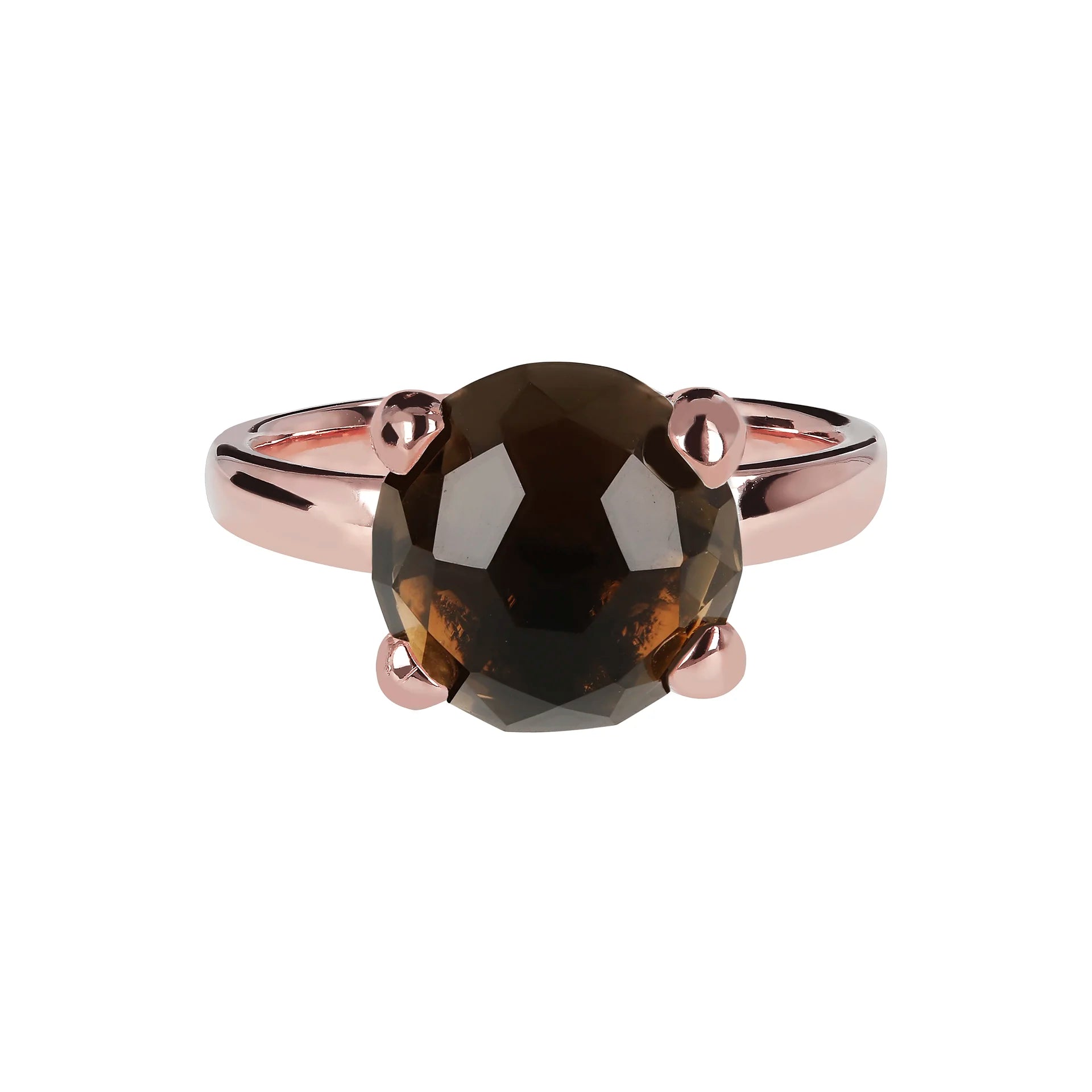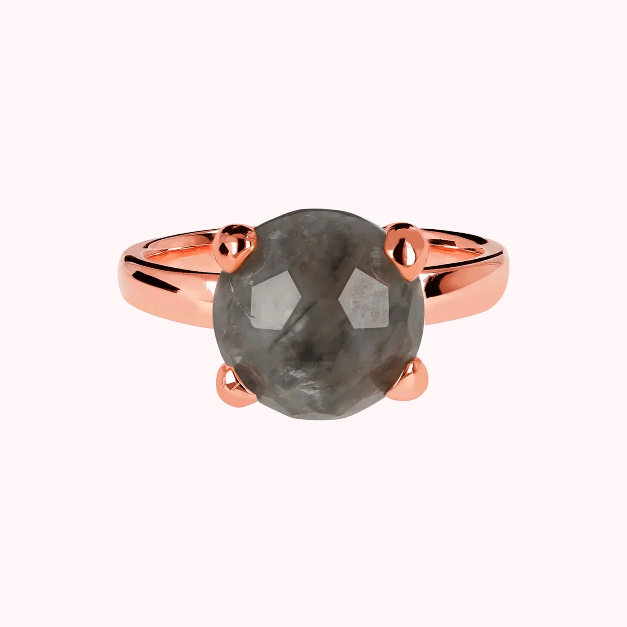 Bague cocktail moyenne Bronzallure en alliage Golden Rosé, doré à l'or fin 18ct, avec une petite pierre naturelle (10 mm) de couleurs vives et de forme ronde.