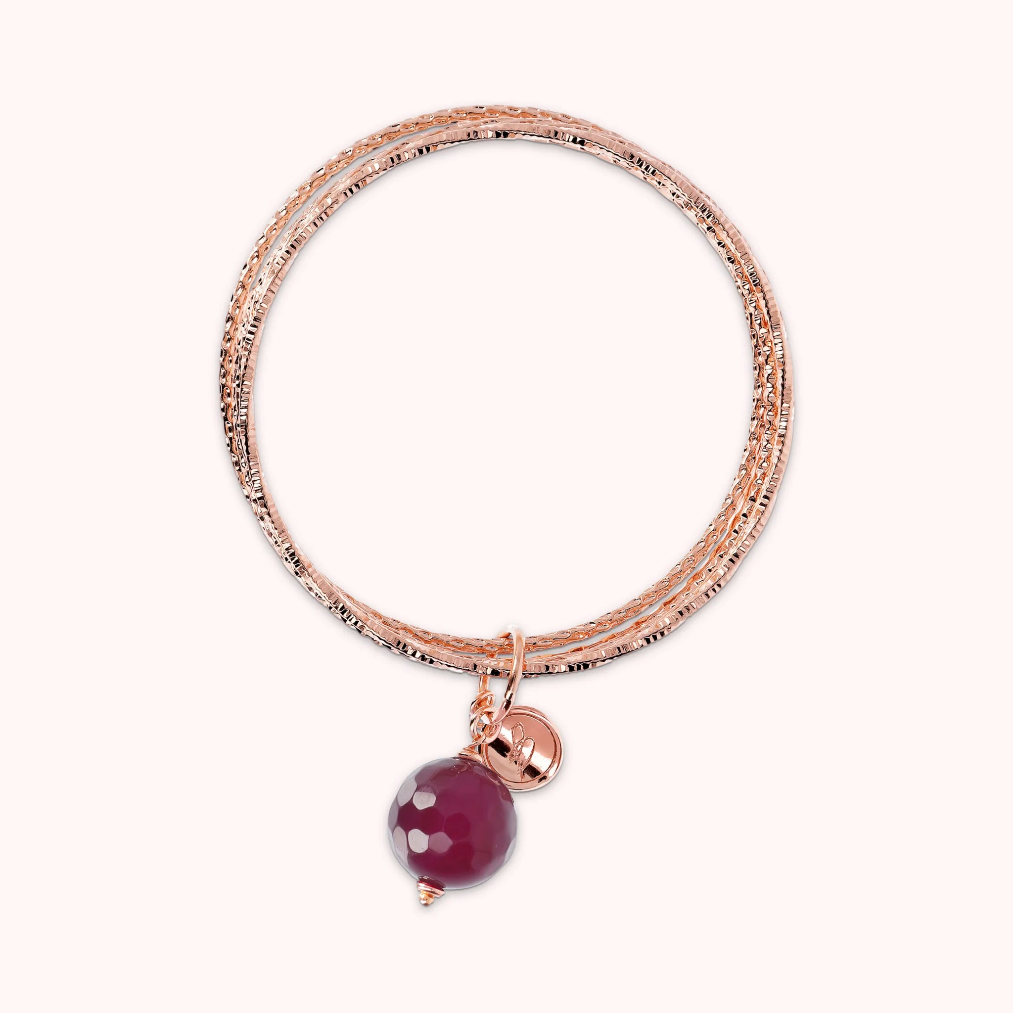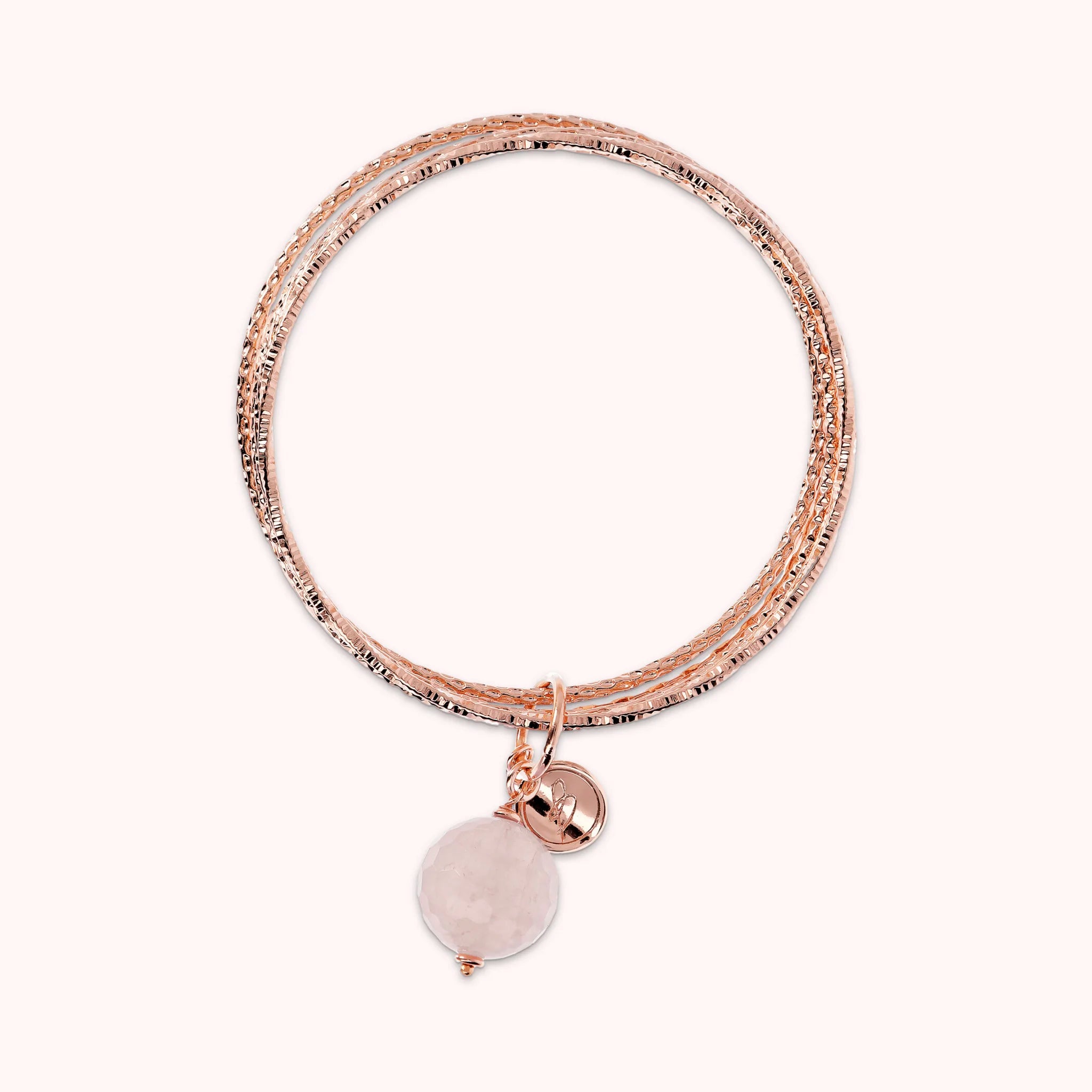 Bracelet rigide multi-rangs Bronzallure en alliage Golden Rosé, doré à l'or fin 18ct avec pierre naturelle ronde (13 mm).