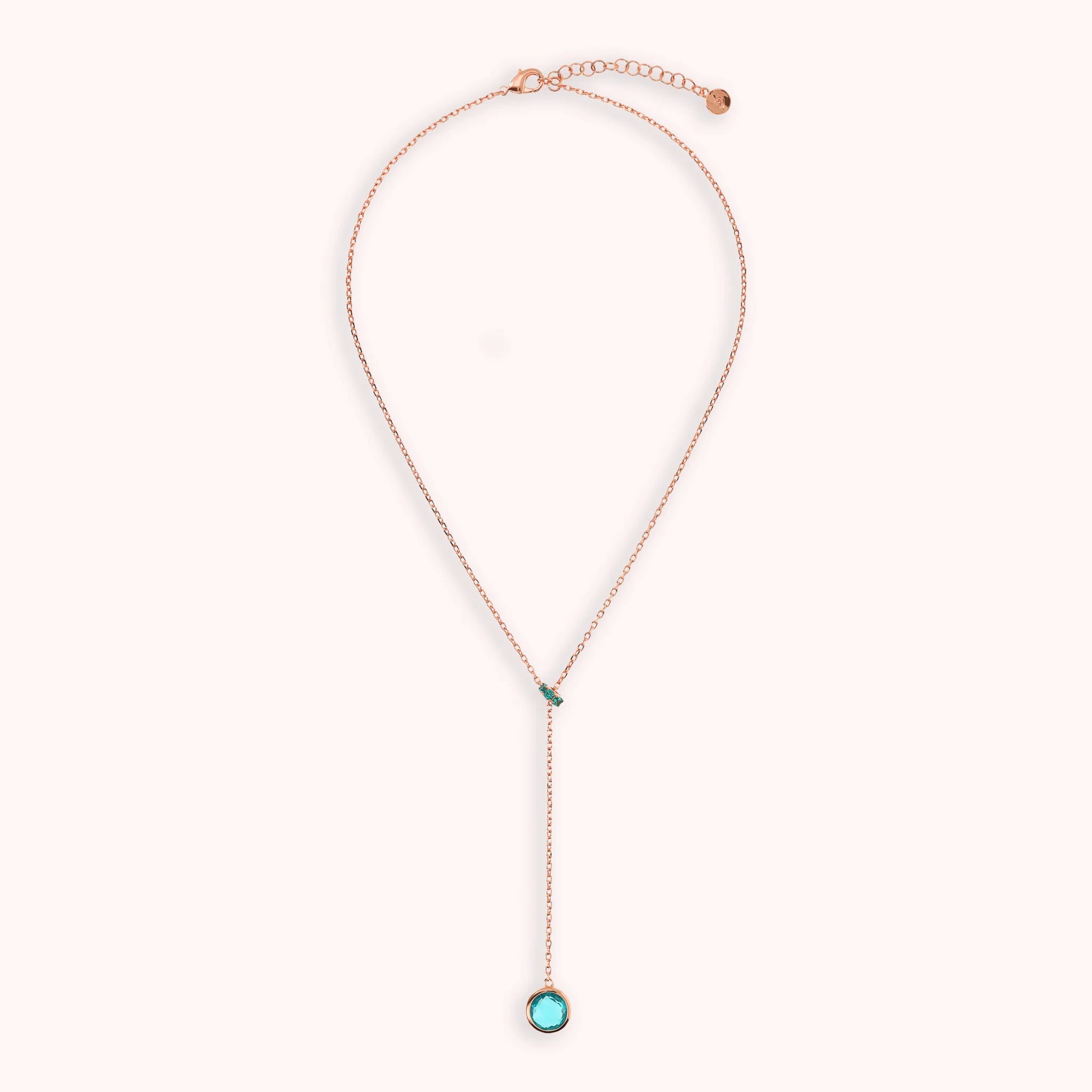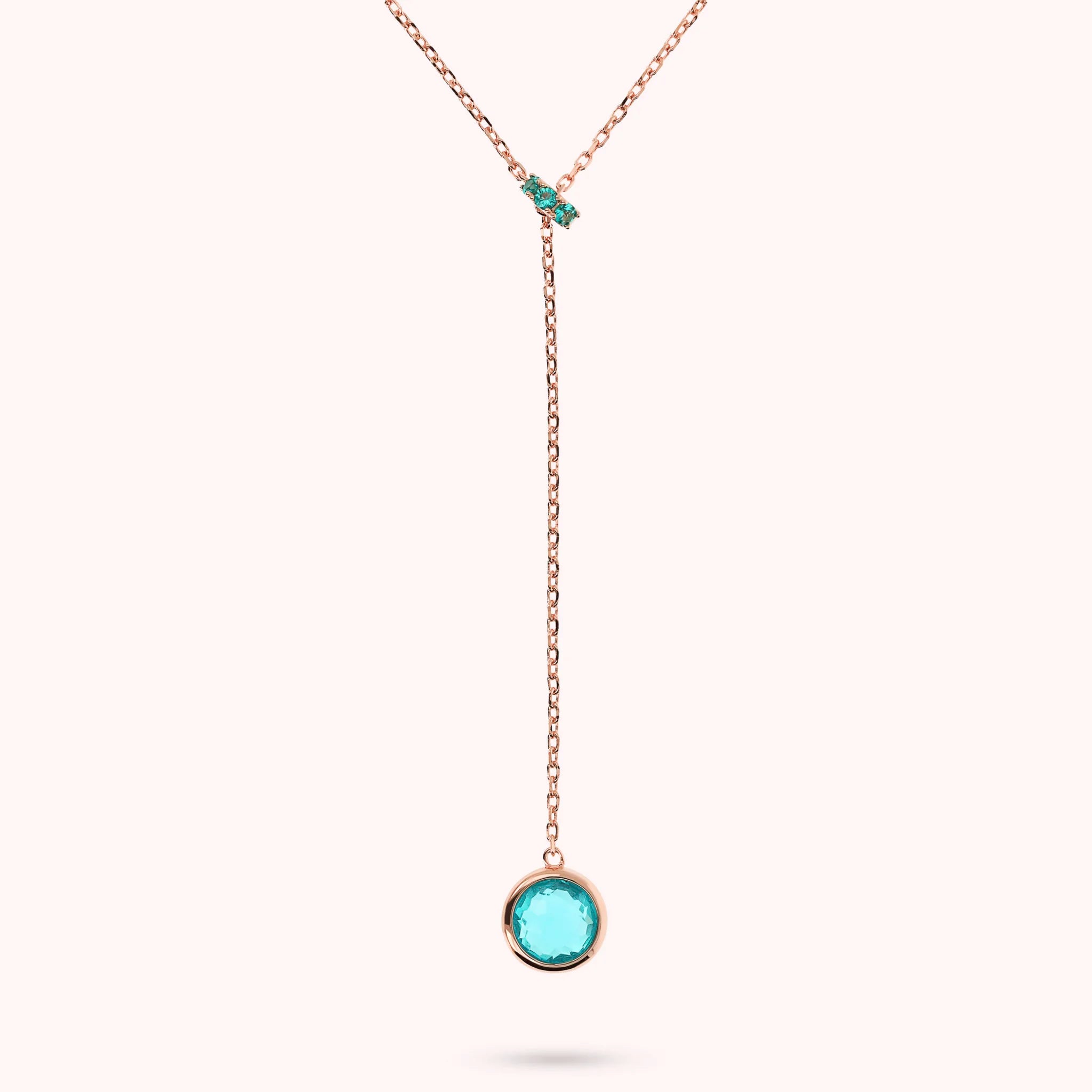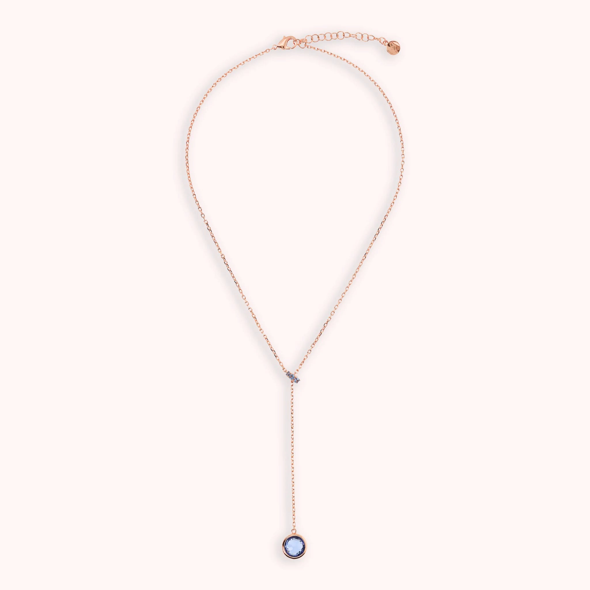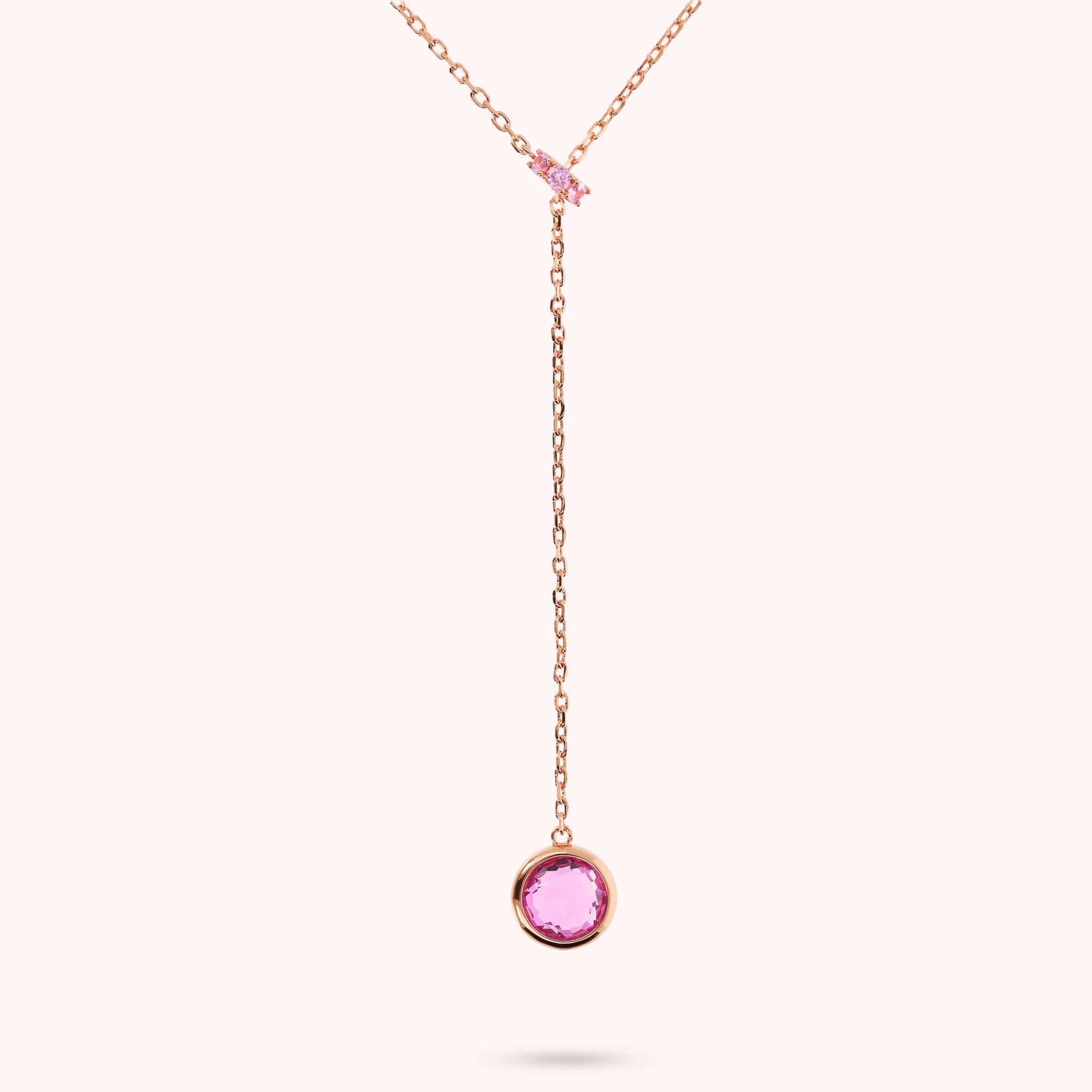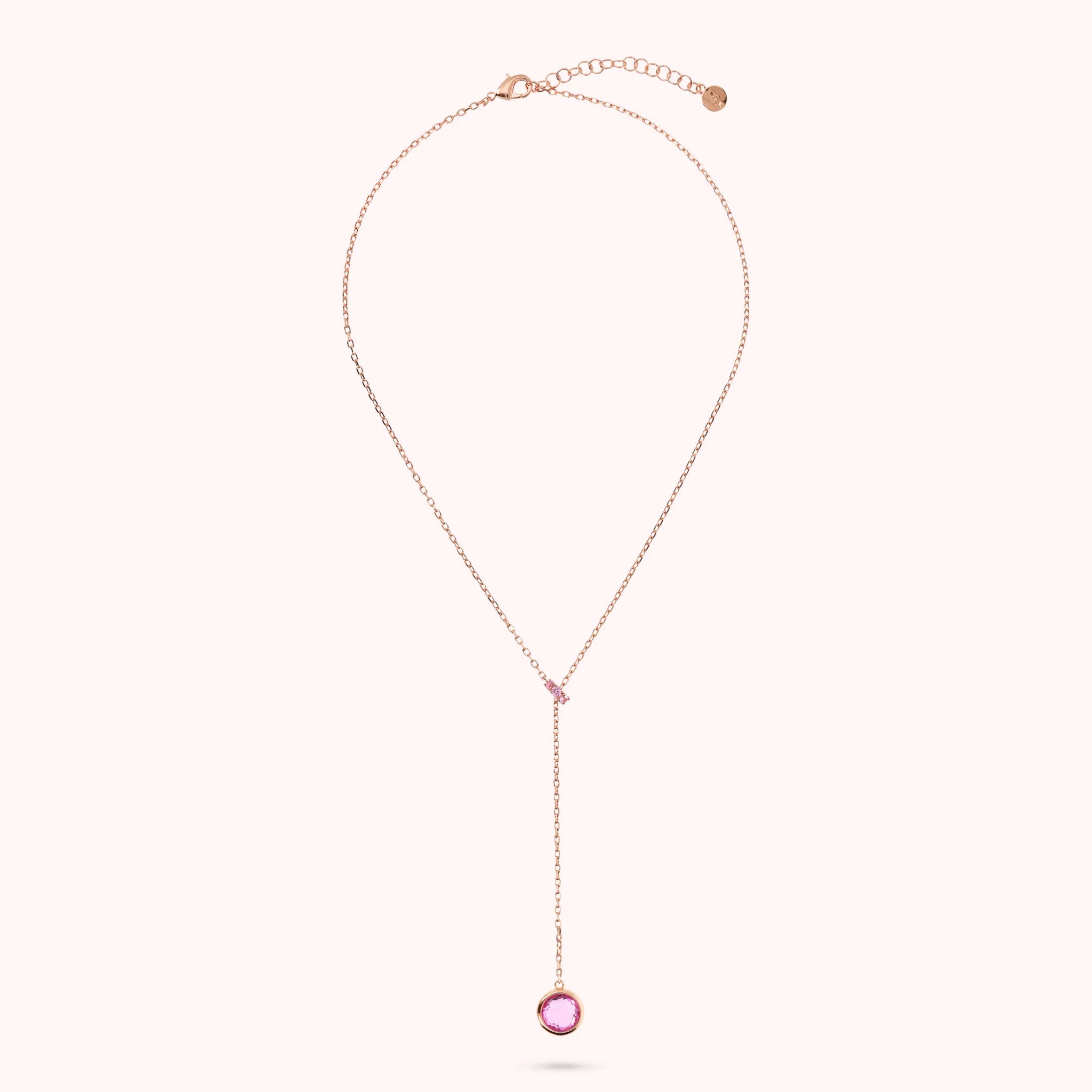 Collier à cravate Bronzallure réalisé en alliage Golden Rosé, doré à l'or rose fin 18ct, avec une chaîne forçat embellie par une rondelle en pavé de zircon cubique, qualité lumineuse, et par une pierre gemme prismatique ronde (10 mm). Longueur 38+8 cm de chute. Fermeture à mousqueton avec extension de 5 cm.