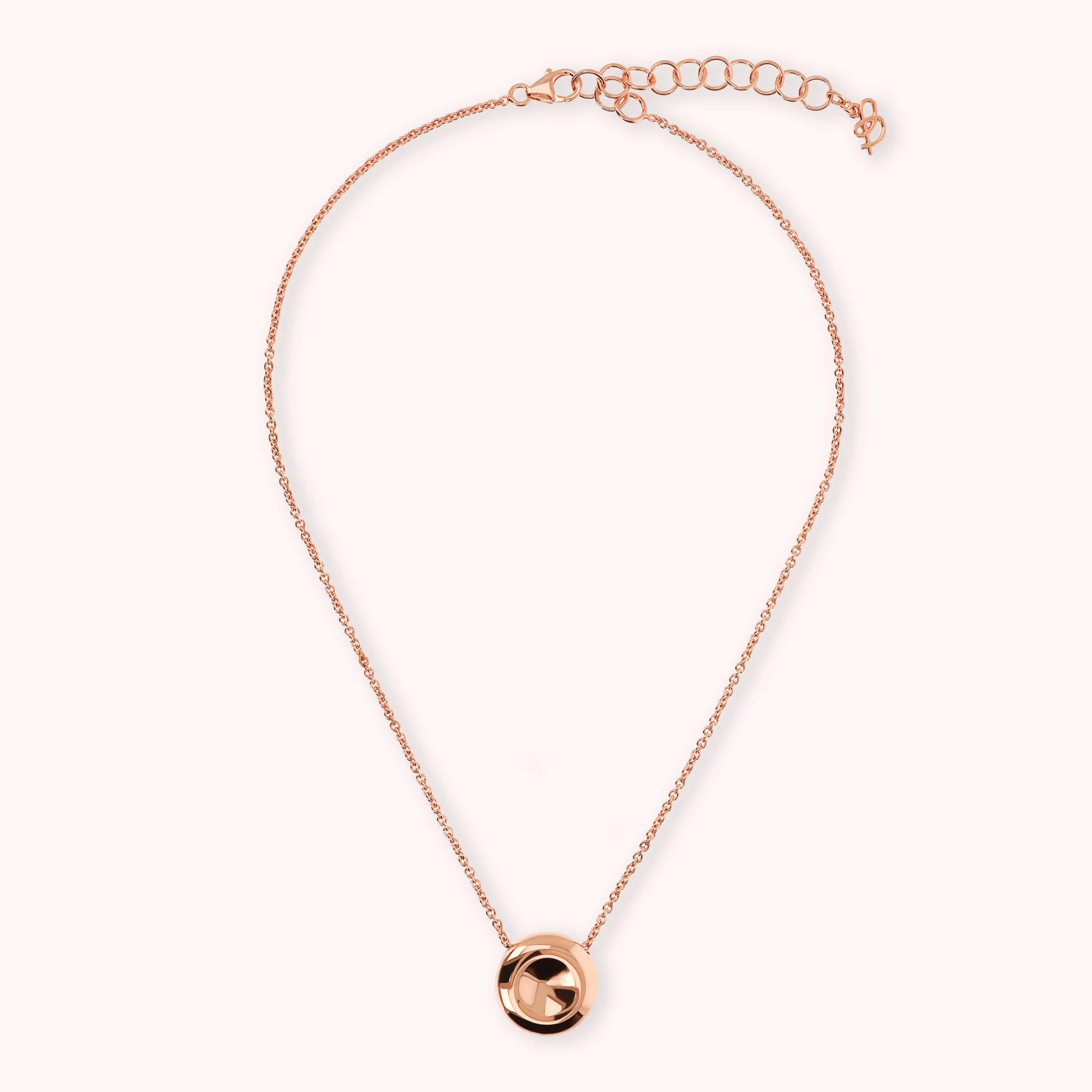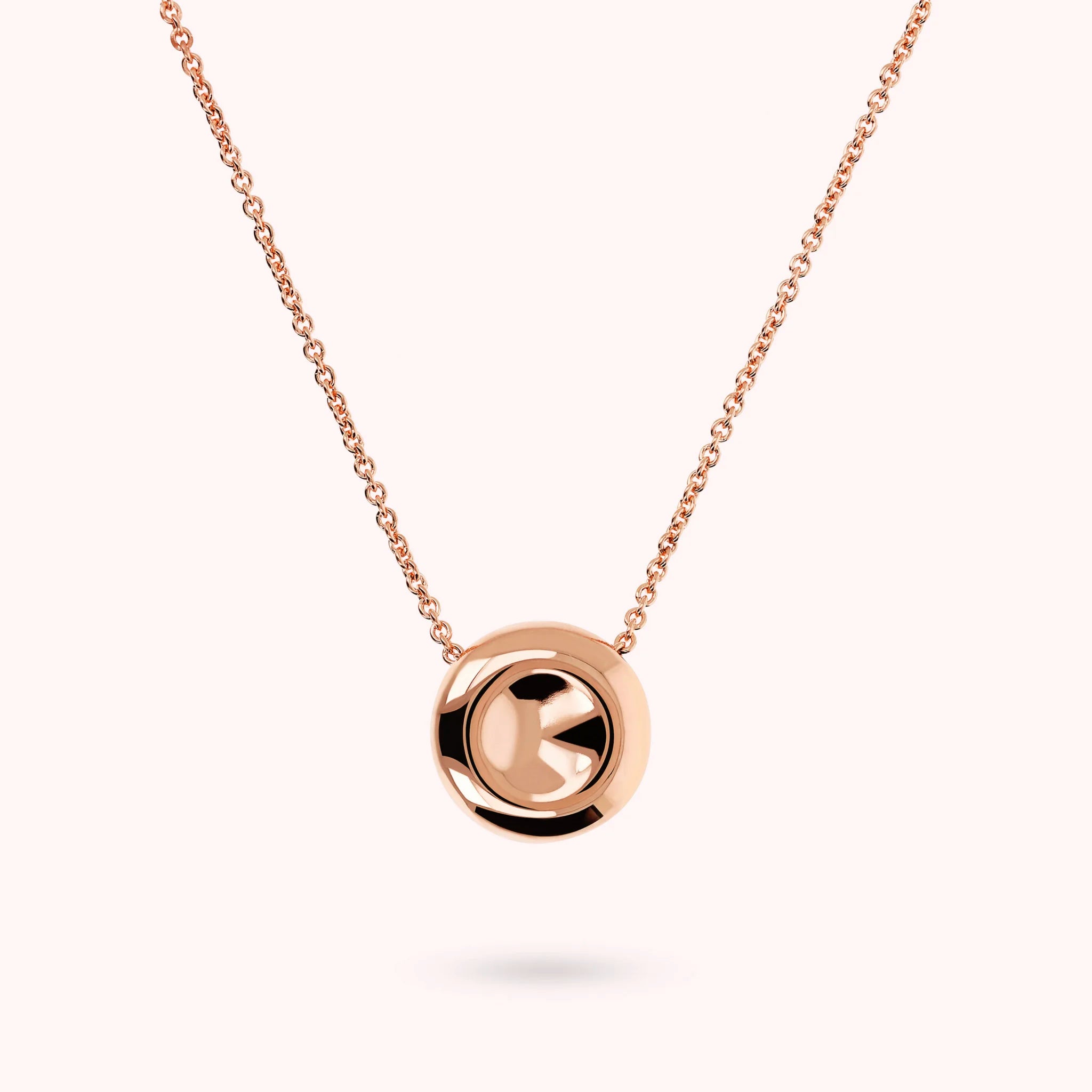 Collier Bronzallure réalisé en alliage Golden Rosé, doré à l'or rose fin 18ct, avec une chaîne rolo embellie par un pendentif à bouton brillant (18 mm). Longueur 38+4 cm d'extension. Fermeture à mousqueton.