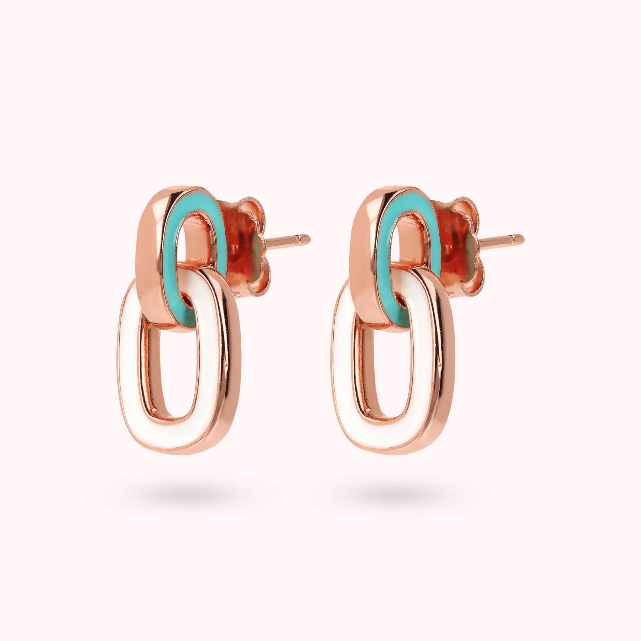 Boucles d'Oreilles Pendantes Bicolores avec Double Maillon Émaillé