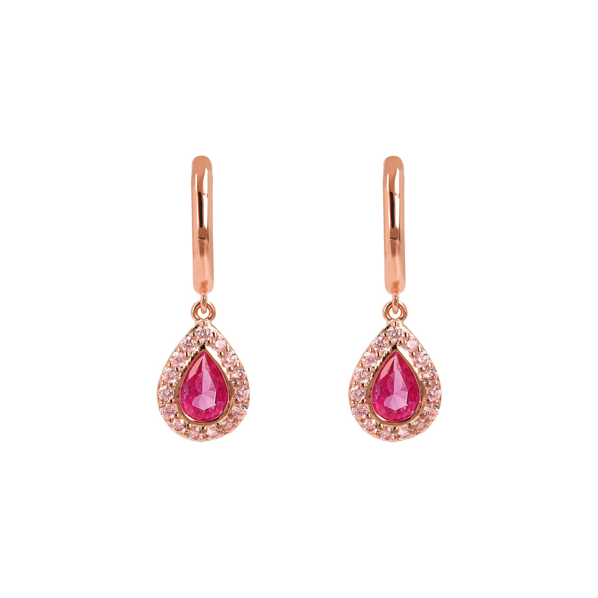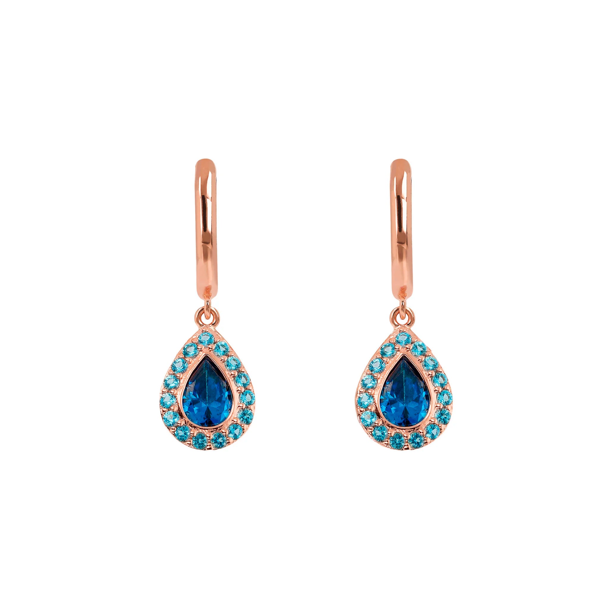 Boucles d'oreilles Bronzallure en alliage Golden Rosé, doré à l'or fin 18ct, agrémentées de deux pendentifs en forme de goutte entourés de petits points lumineux en zircone cubique ; fermeture épingle et papillon.