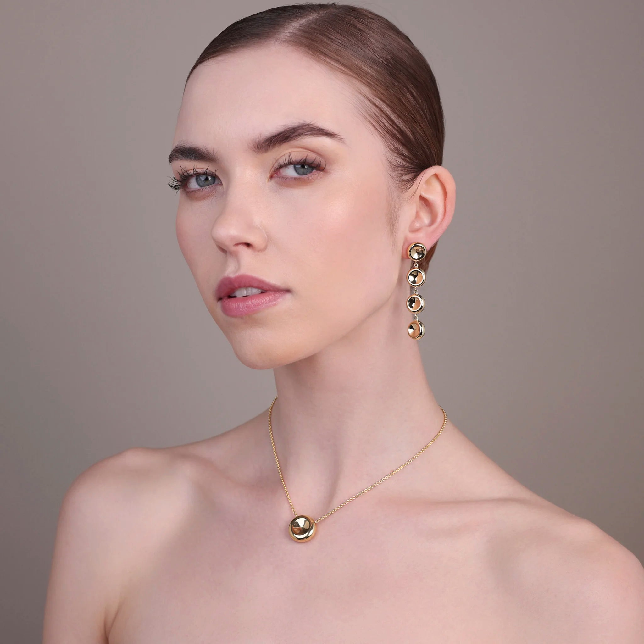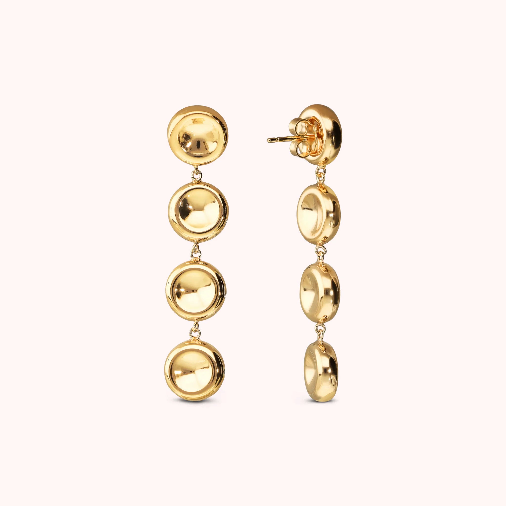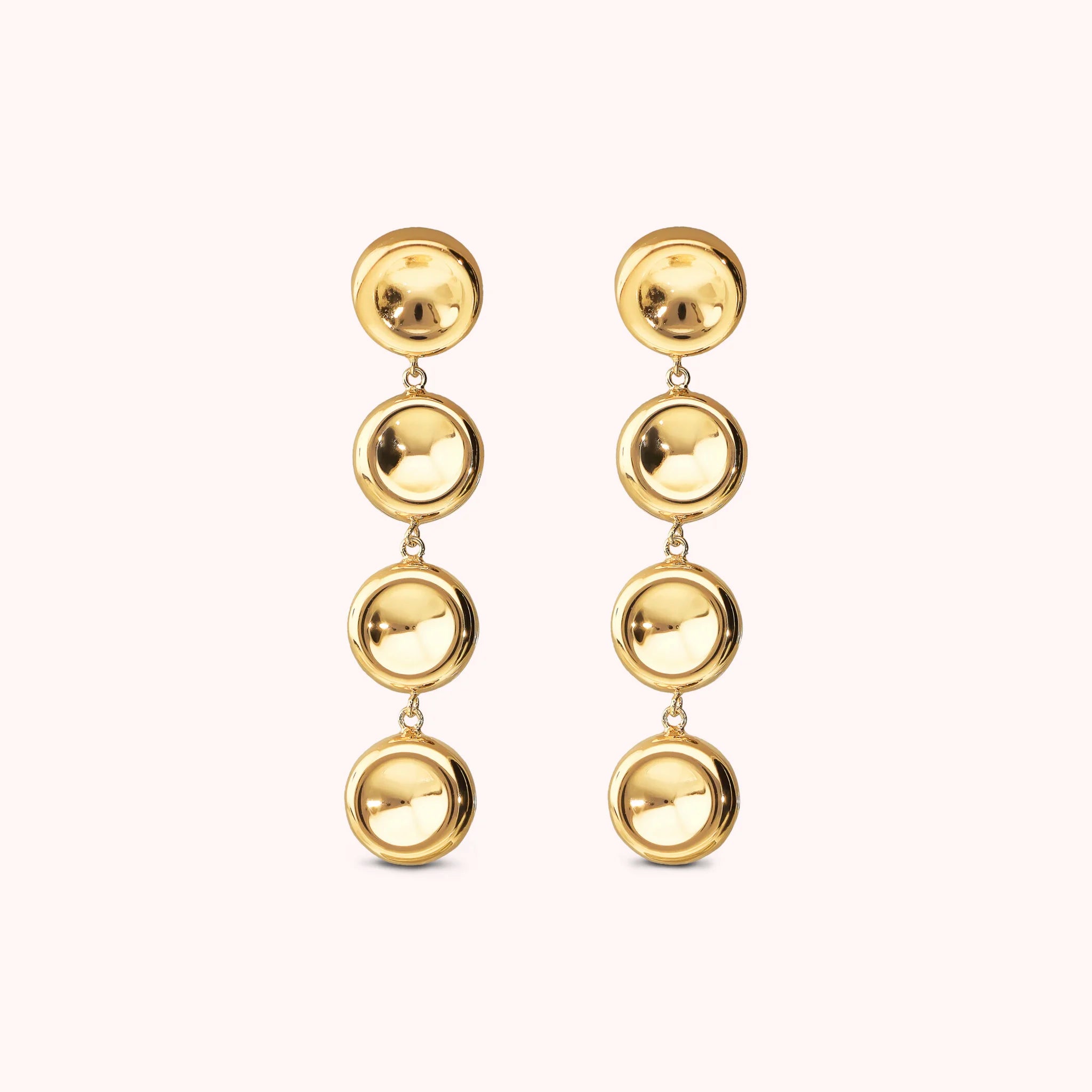 Boucles d'oreilles pendantes dorées avec boutons brillants