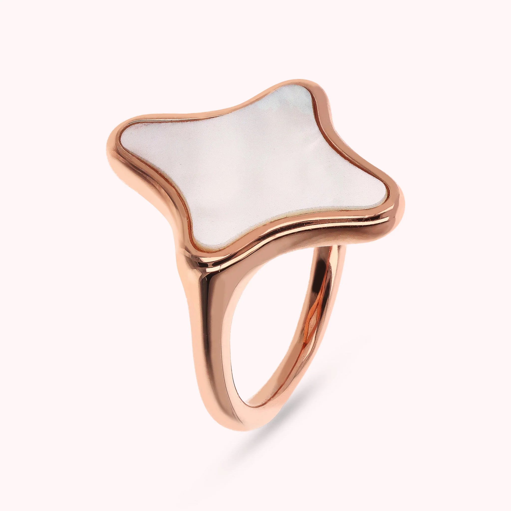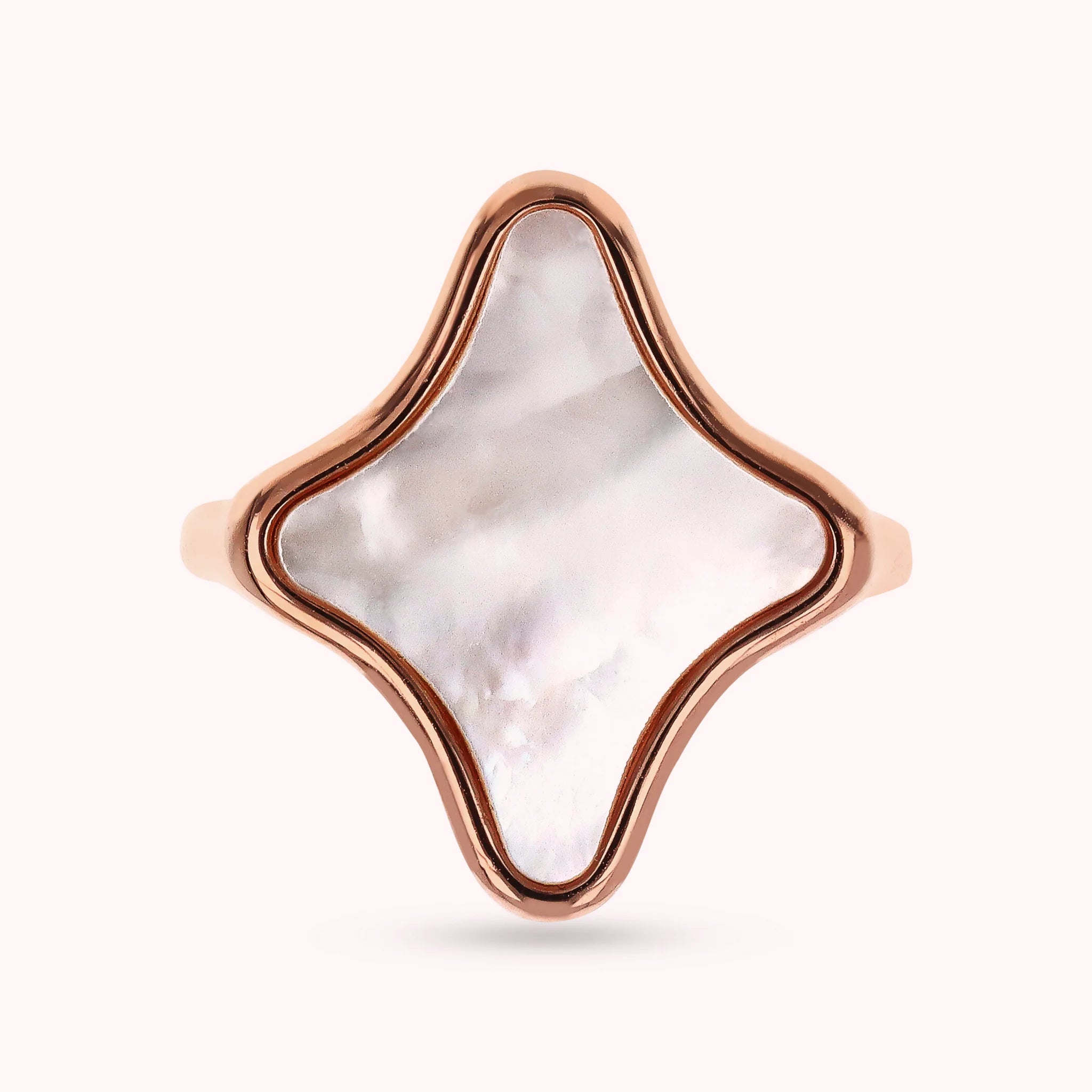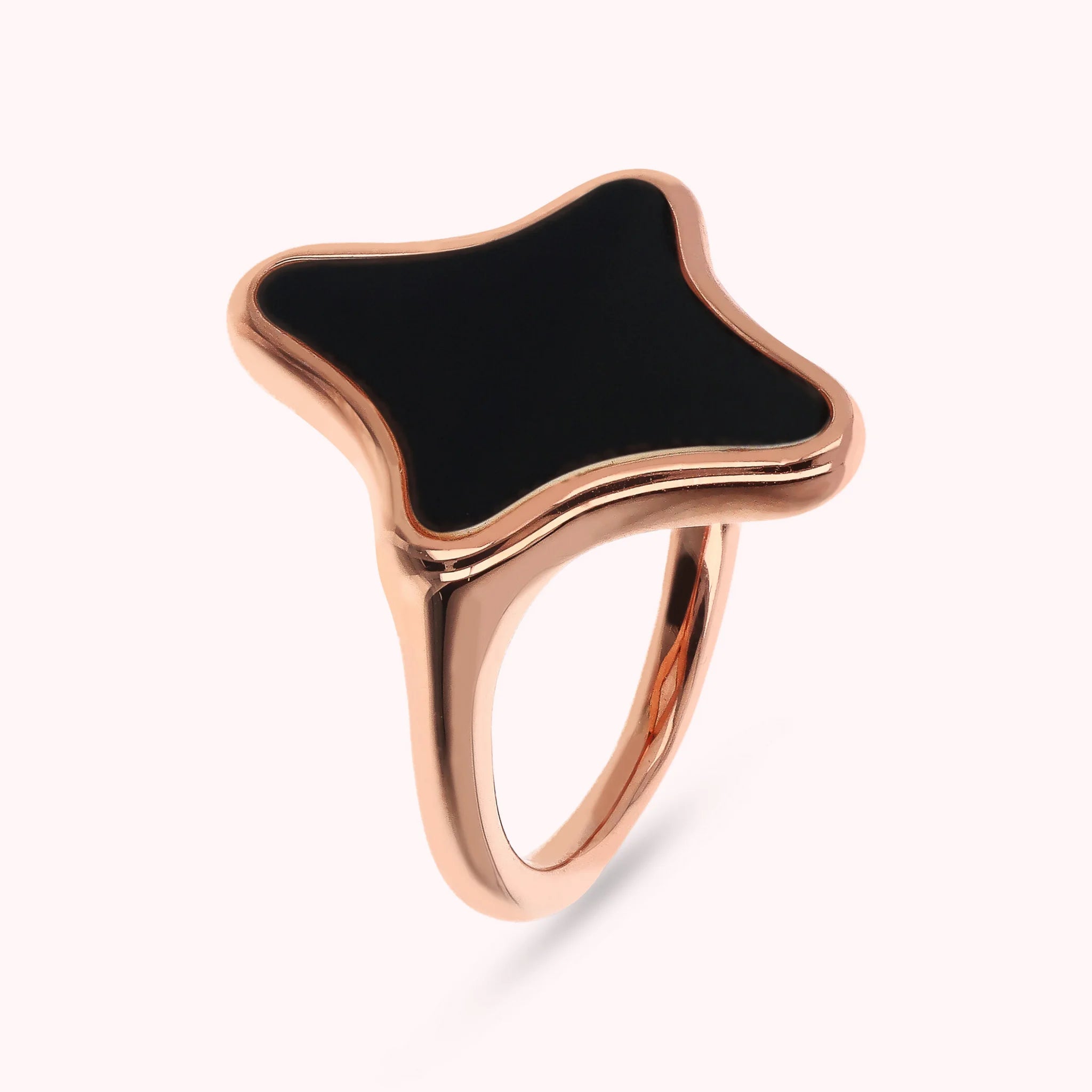 Bague cocktail Bronzallure en alliage Golden Rosé, plaqué or rose 18 carats, agrémentée d'un élément étoile central (19,5x15,5 mm) en pierre naturelle.