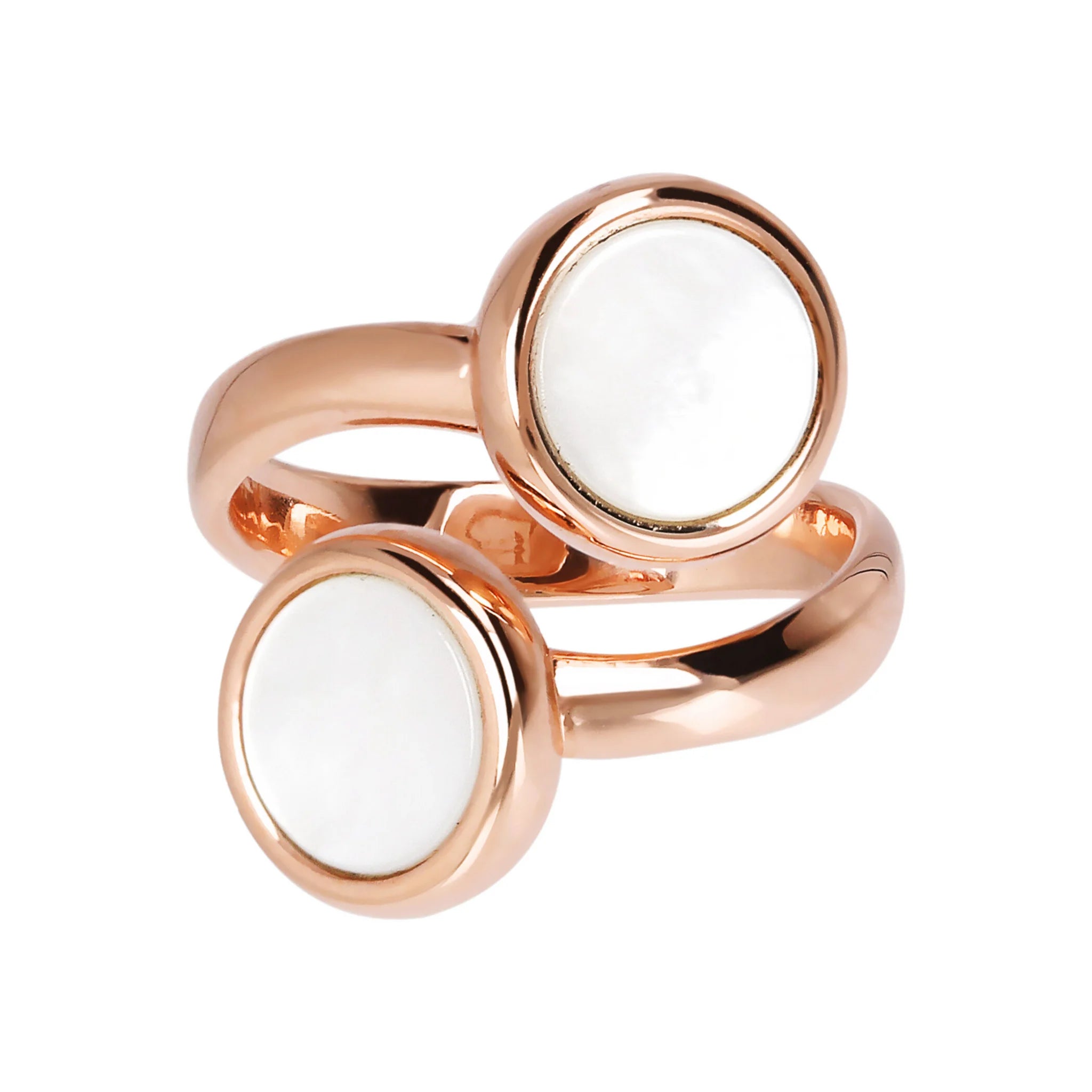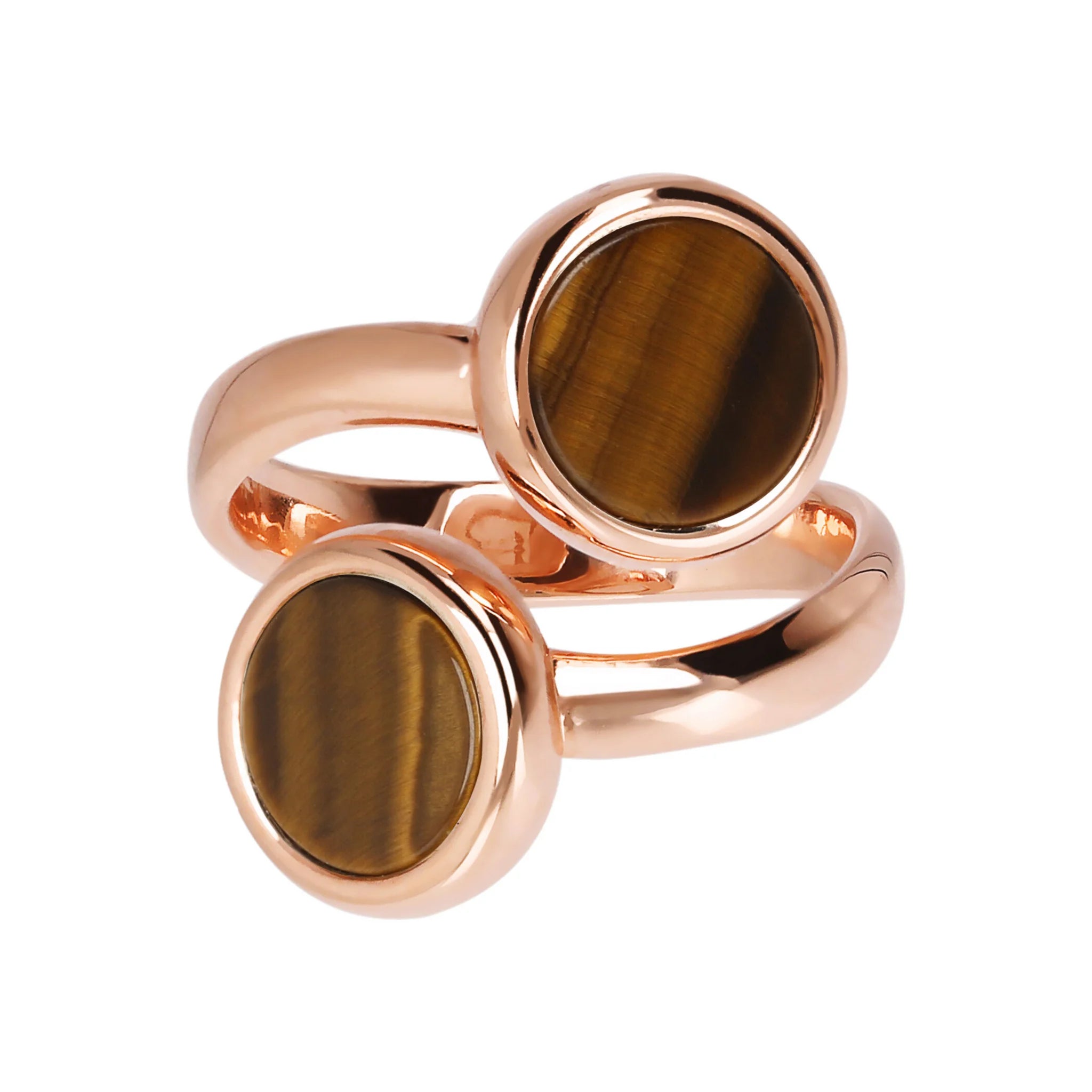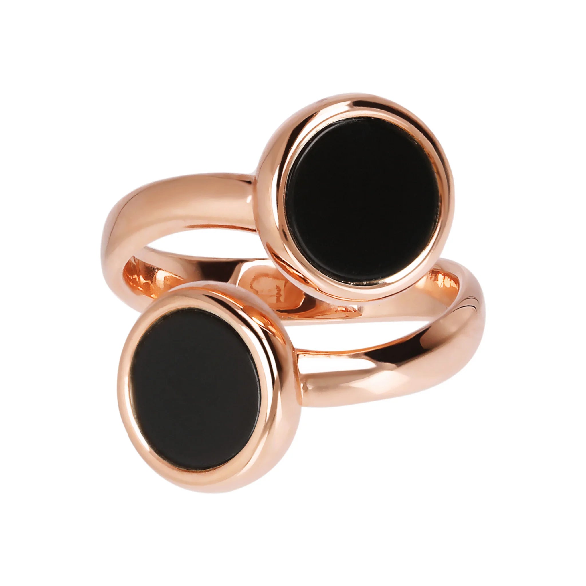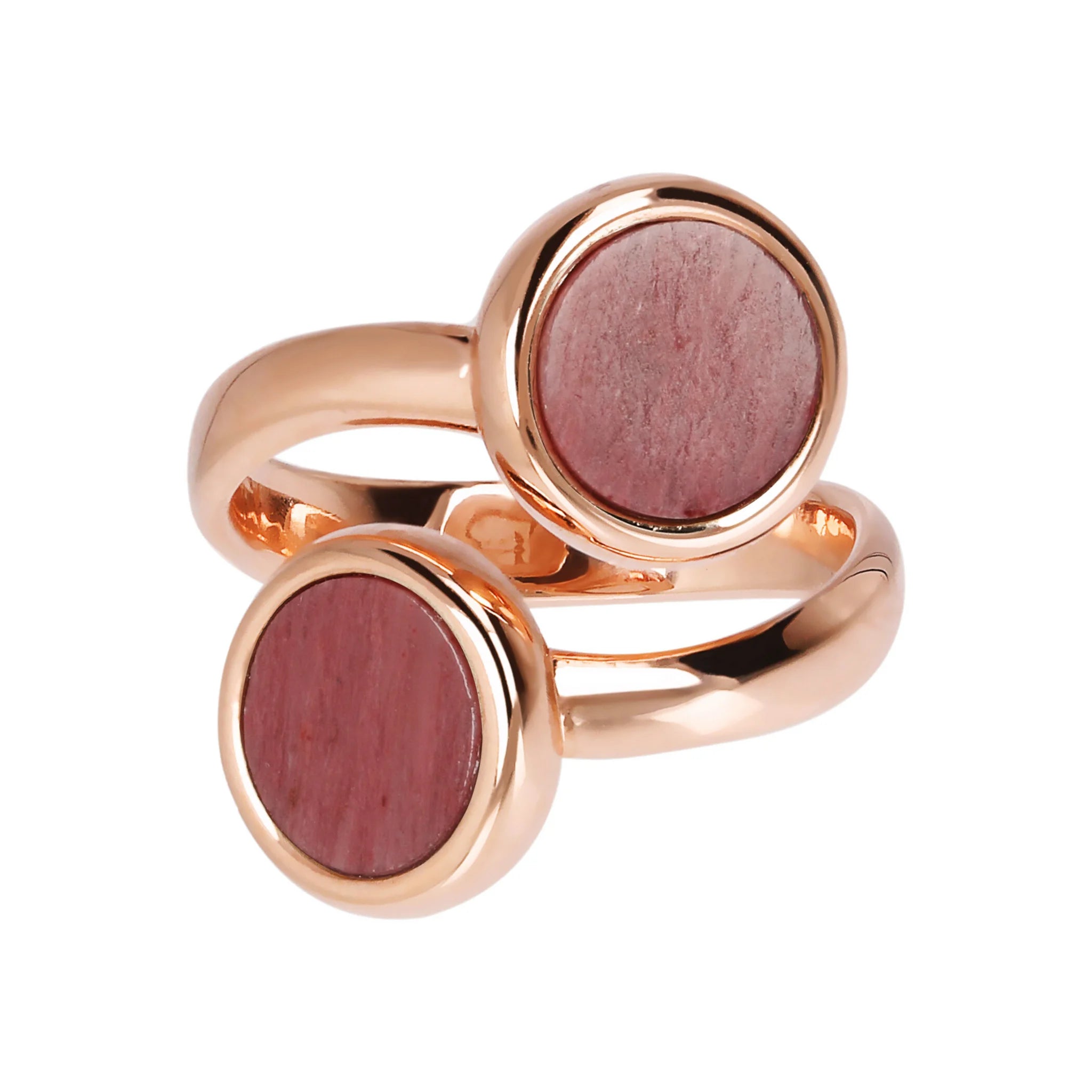 Bague Bronzallure contrarié en alliage Golden Rosé, doré à l'or fin 18ct avec des disques en pierre naturelle montés sur une base doré à l'or fin 18ct.