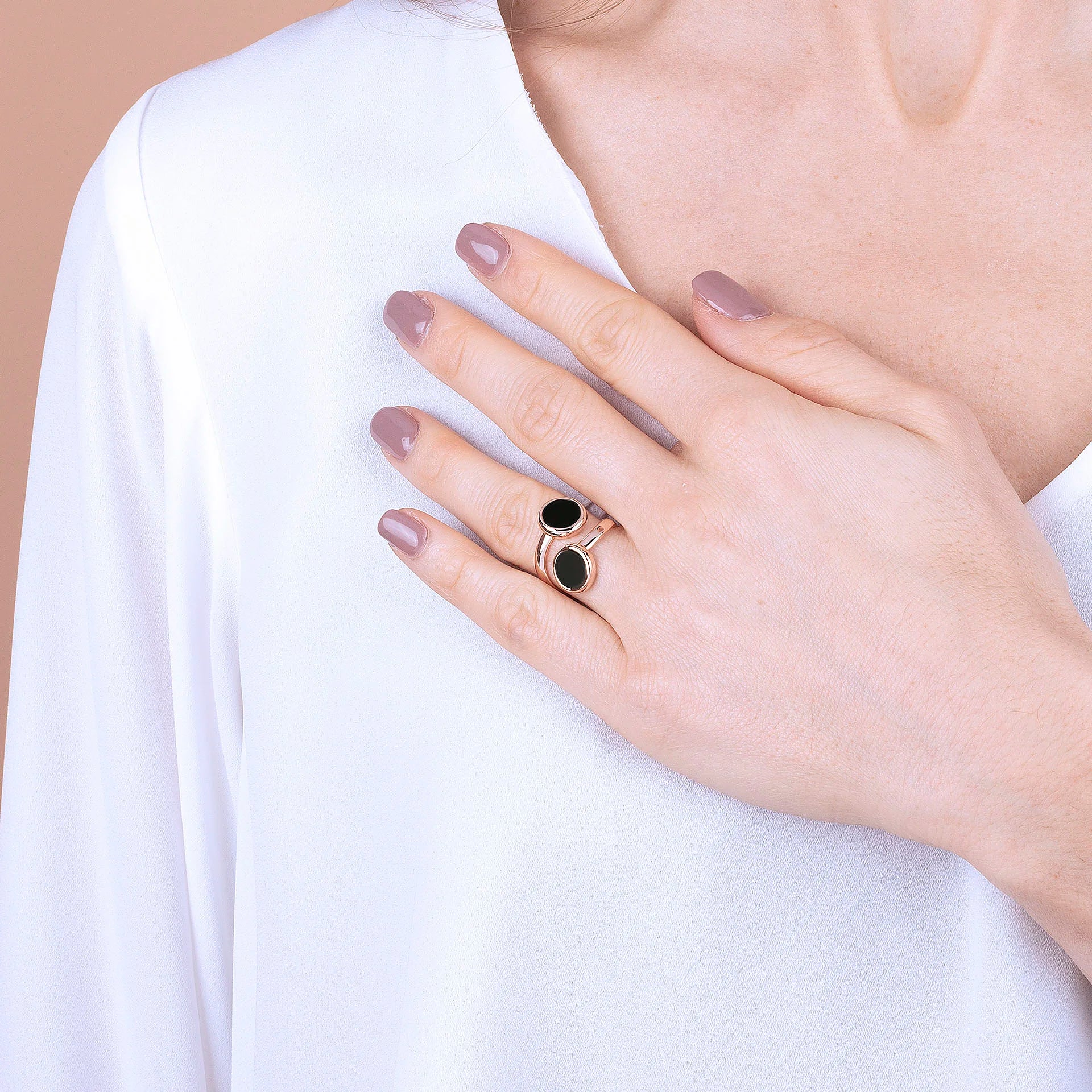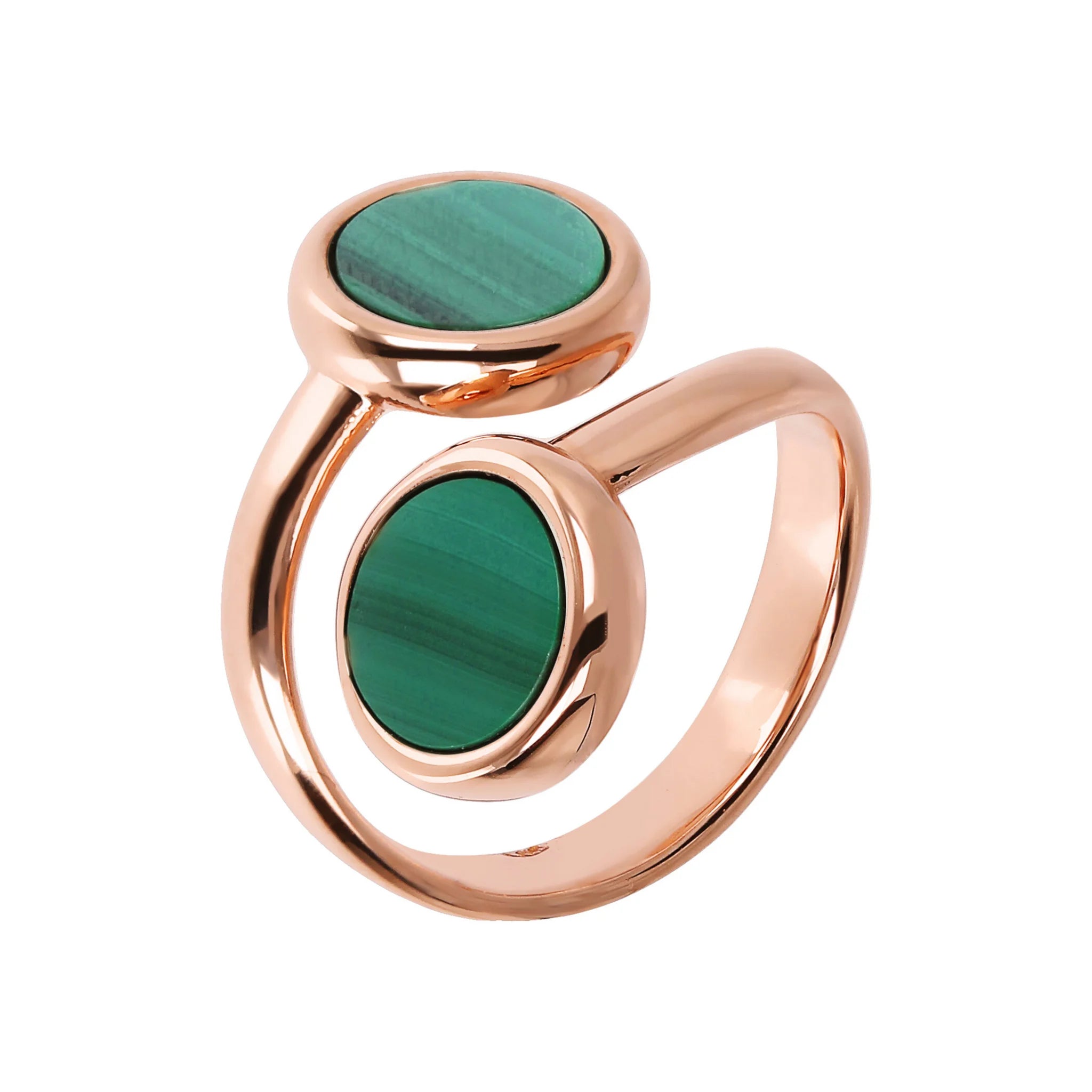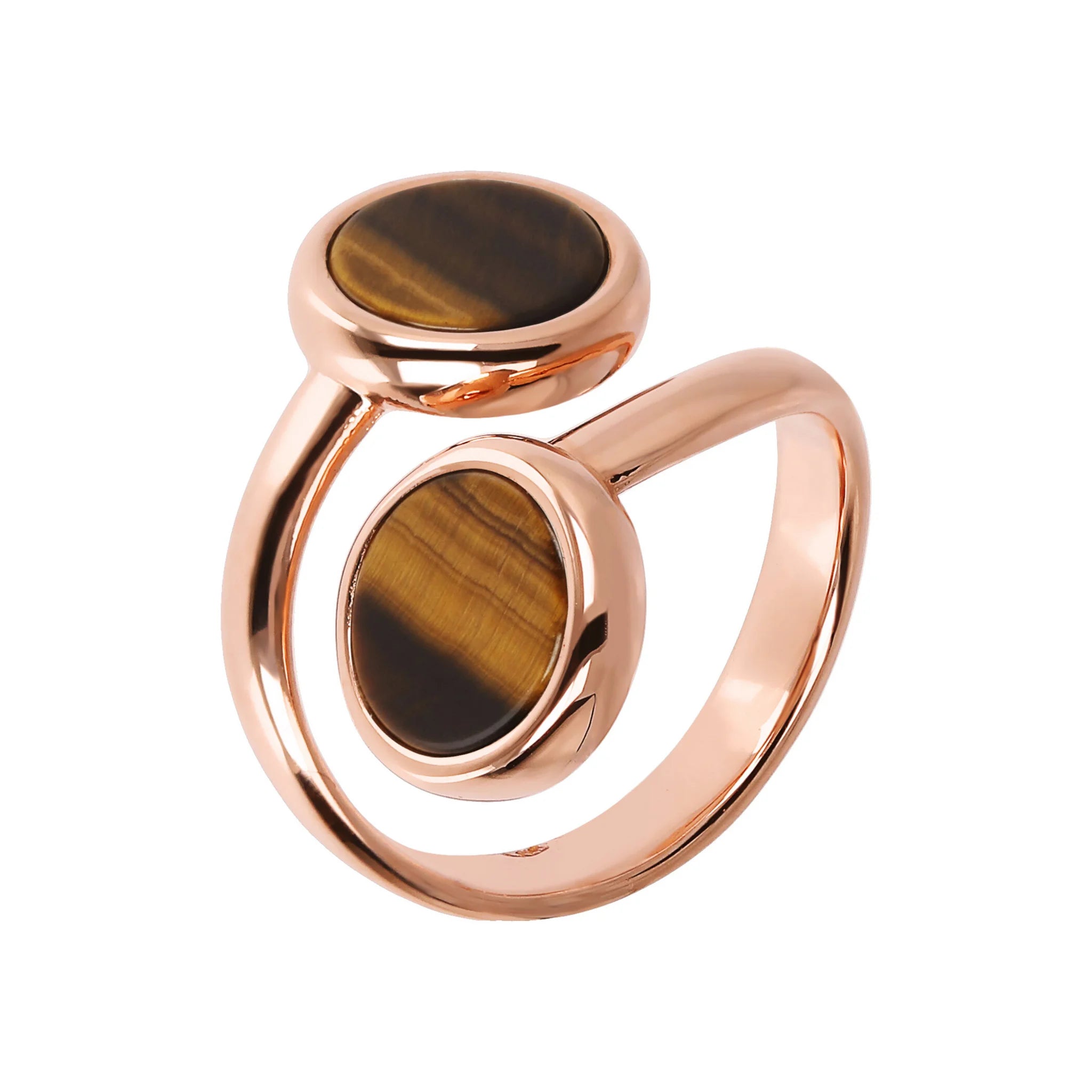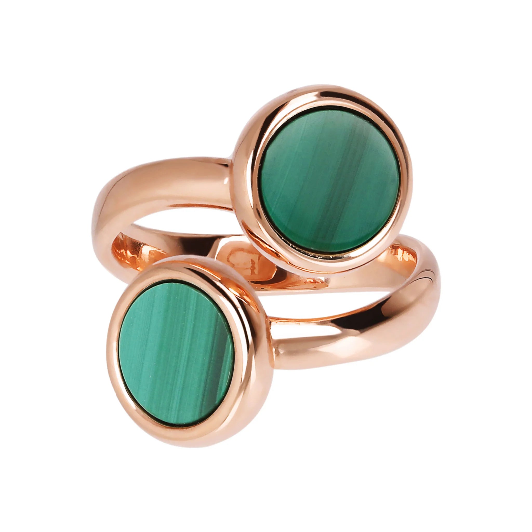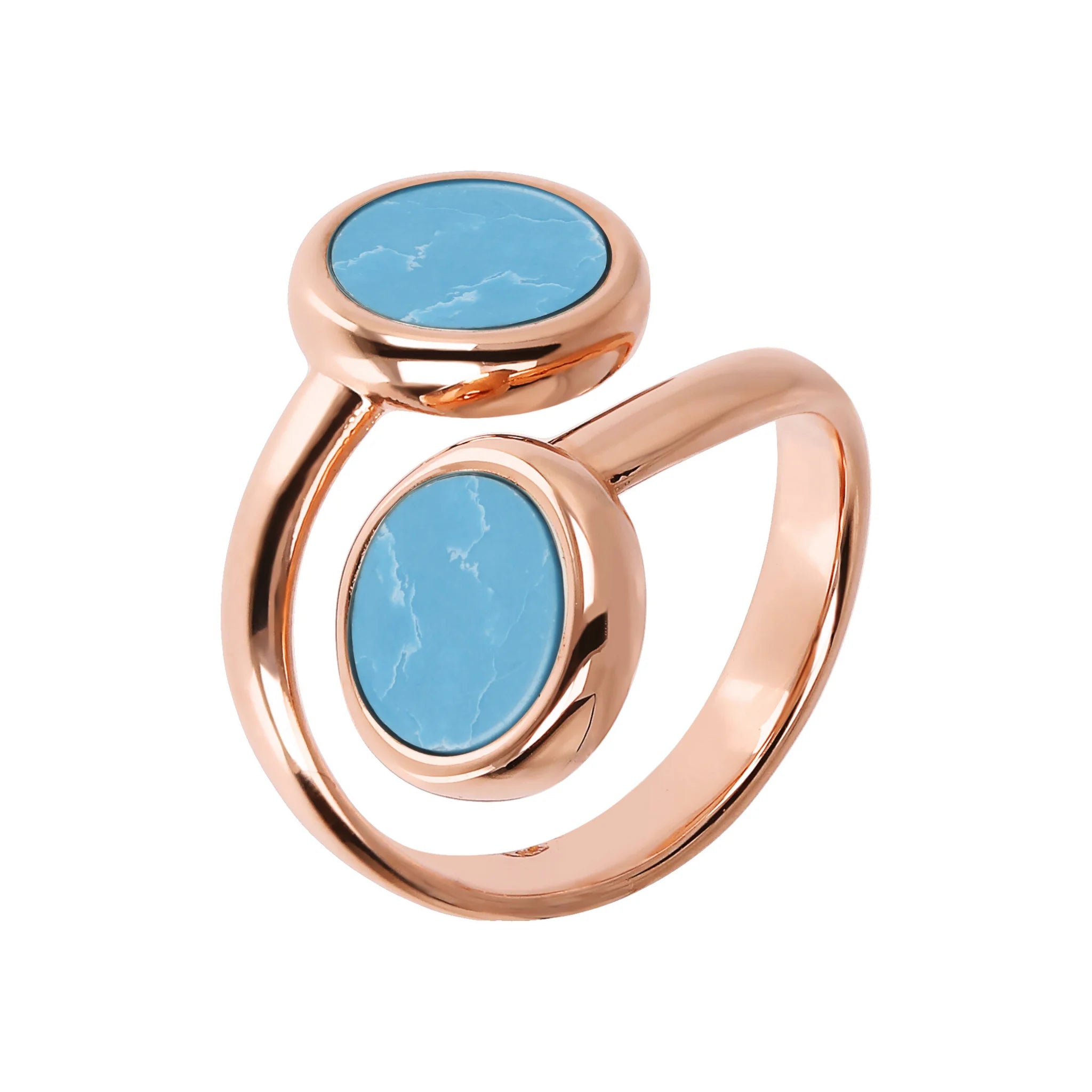 Bague Bronzallure contrarié en alliage Golden Rosé, doré à l'or fin 18ct avec des disques en pierre naturelle montés sur une base doré à l'or fin 18ct.