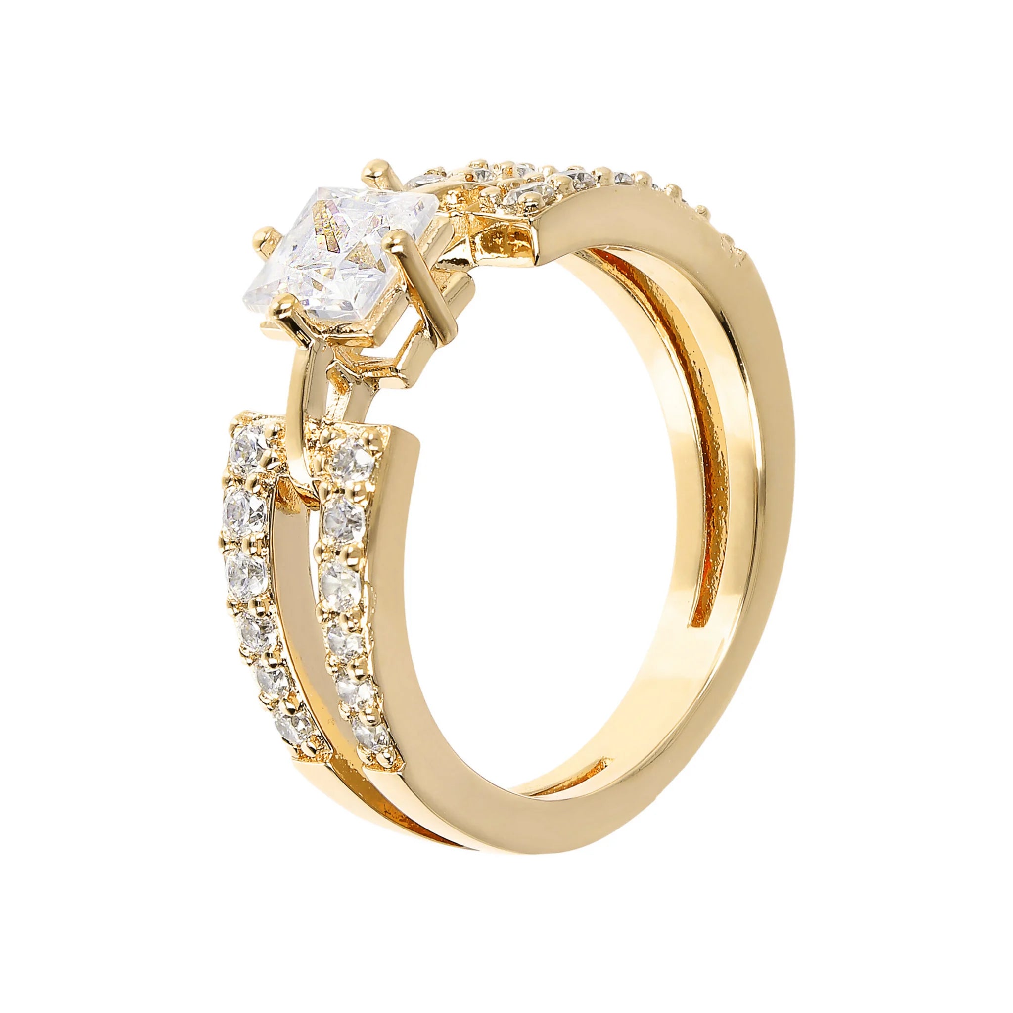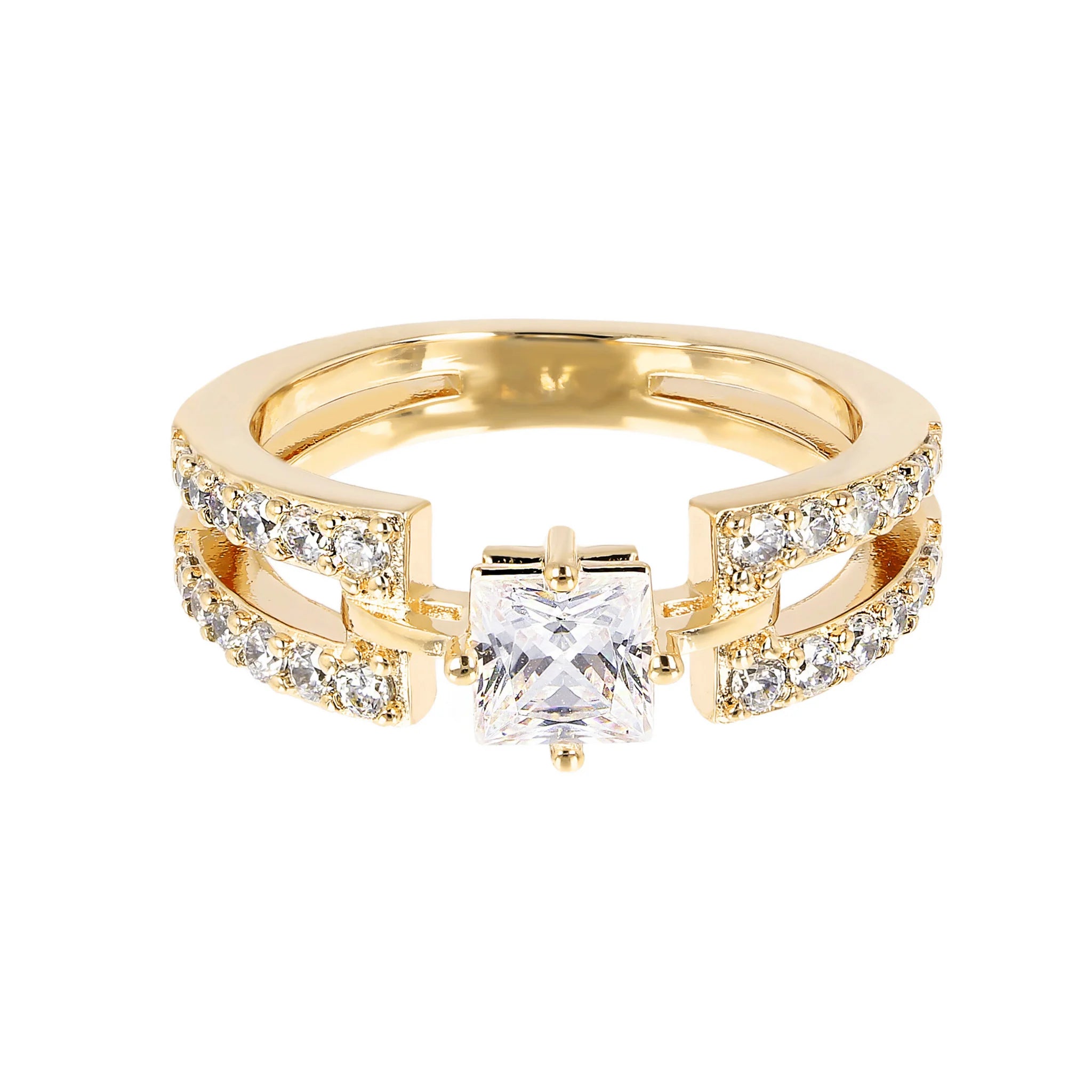 Bague solitaire double brin dorée avec zircone cubique