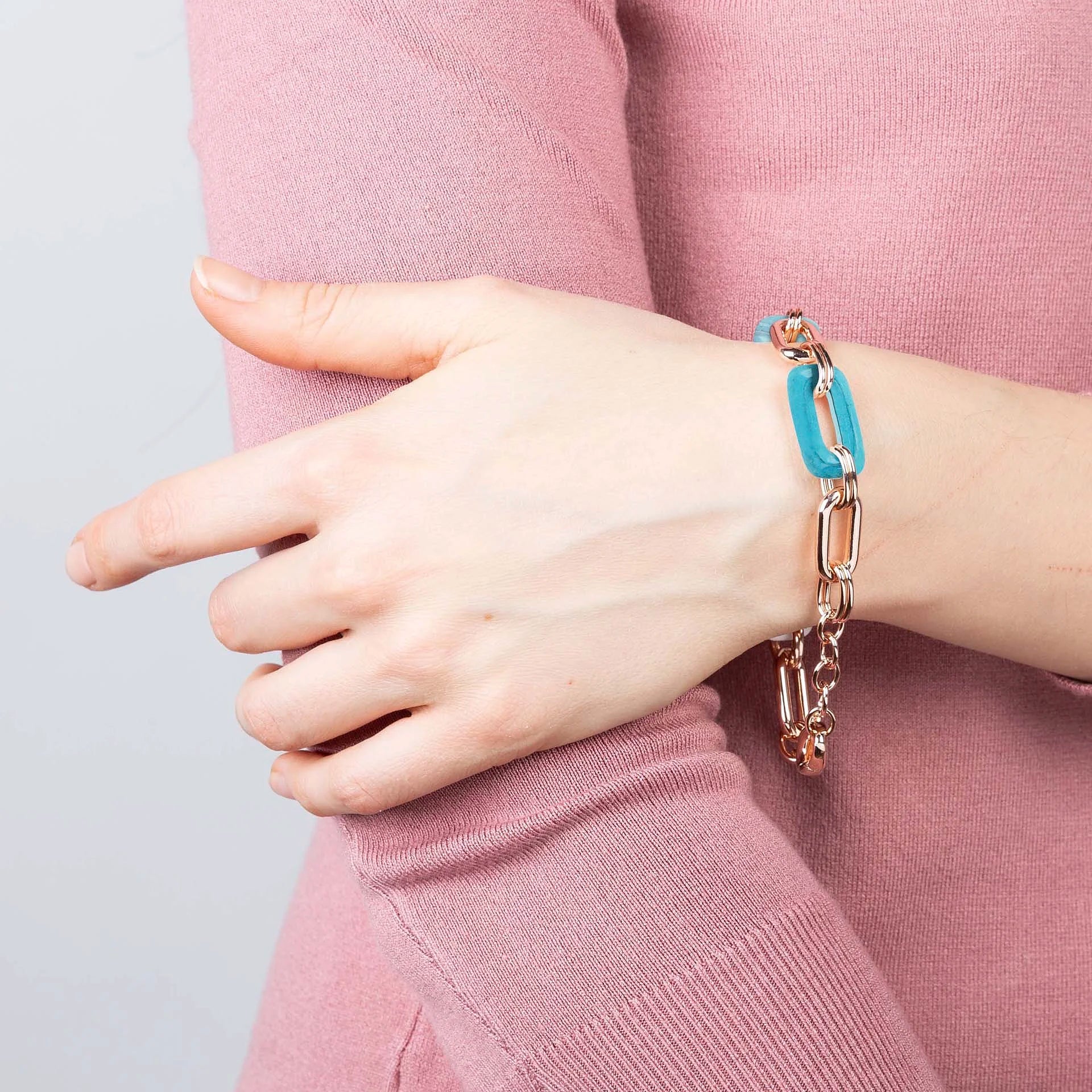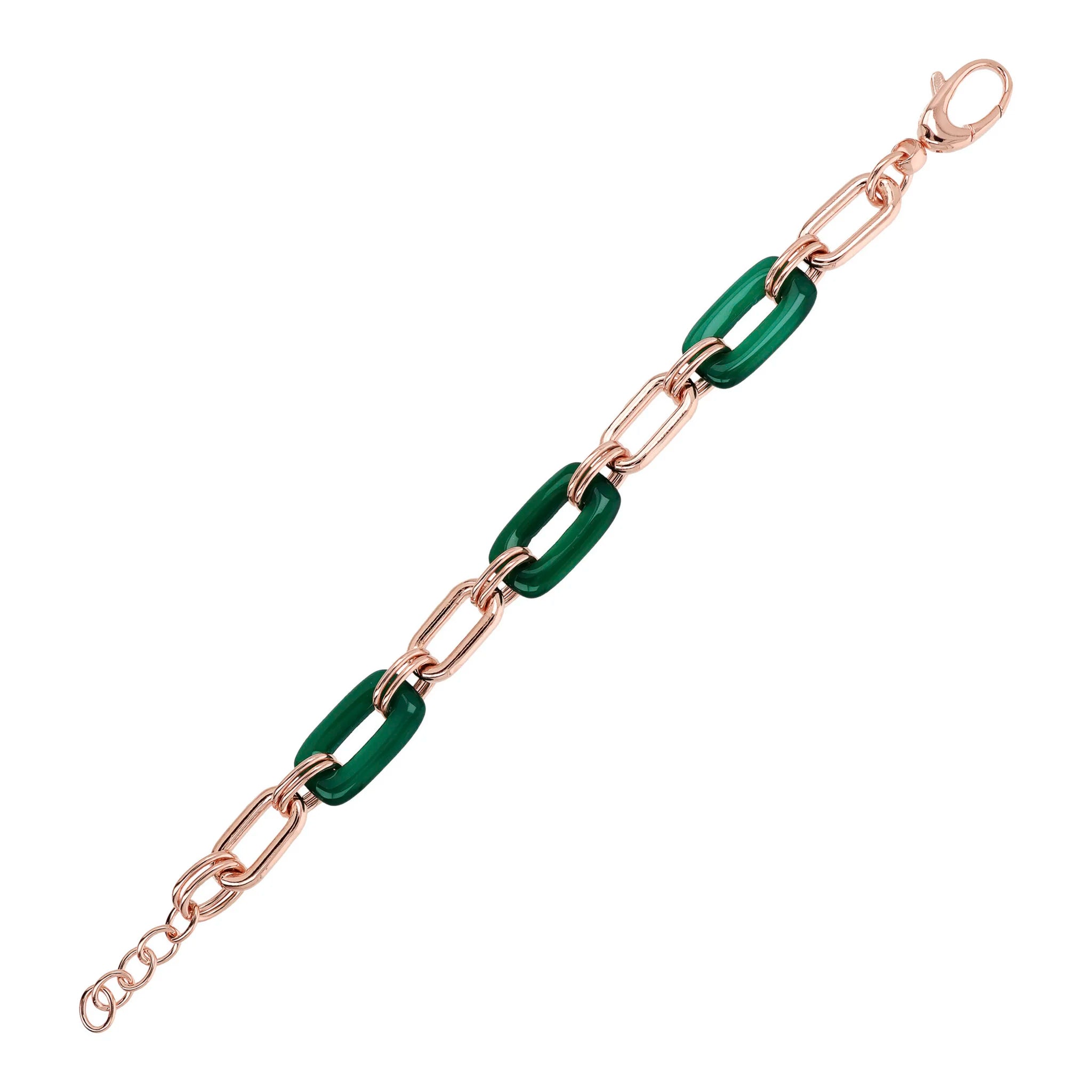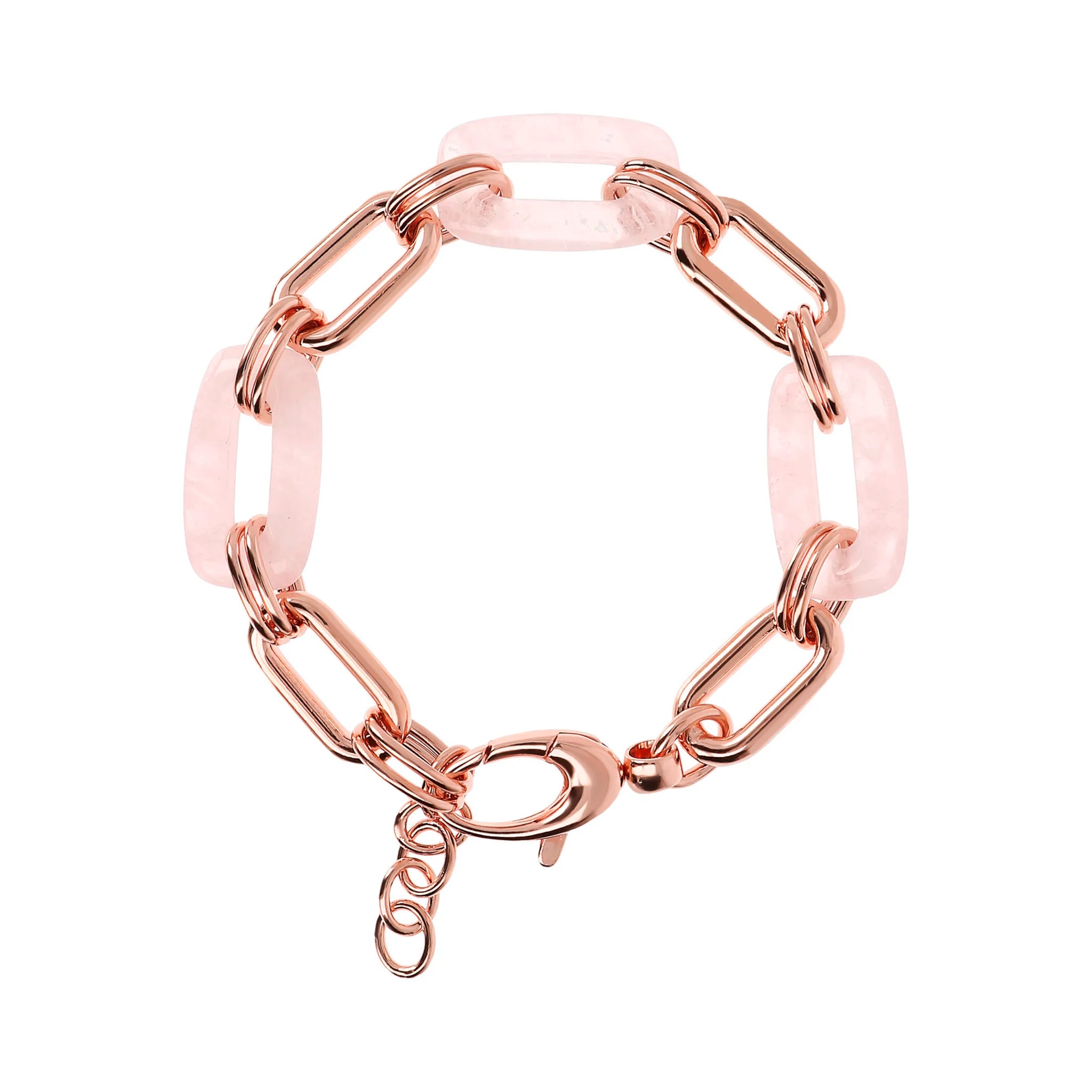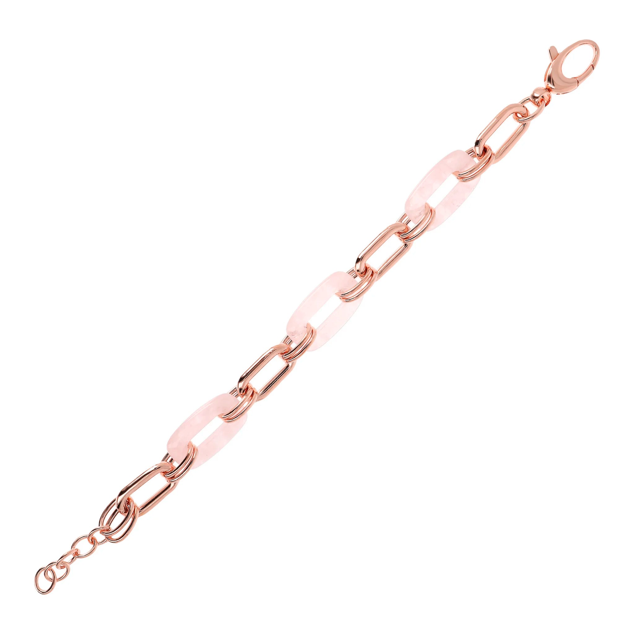 Bracelet Bronzallure en alliage Golden Rosé, doré à l'or fin 18ct, agrémenté de maillons rectangulaires alternés en pierre naturelle ; fermoir mousqueton et rallonge.