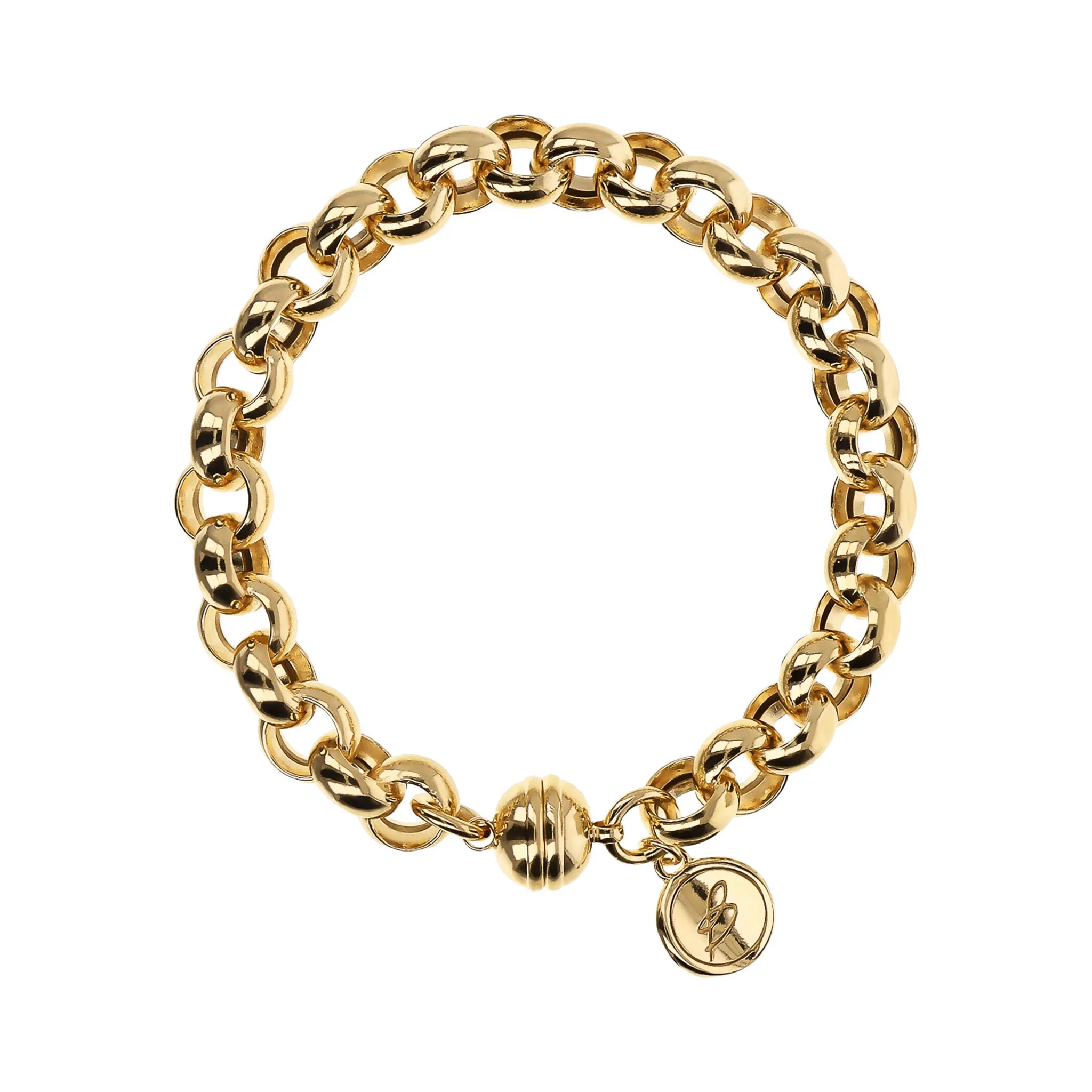 Bracelet réalisé sur une base Golden Rosé, doré à l'or fin 18ct, avec chaîne rolo épaisse ; fermeture magnétique.