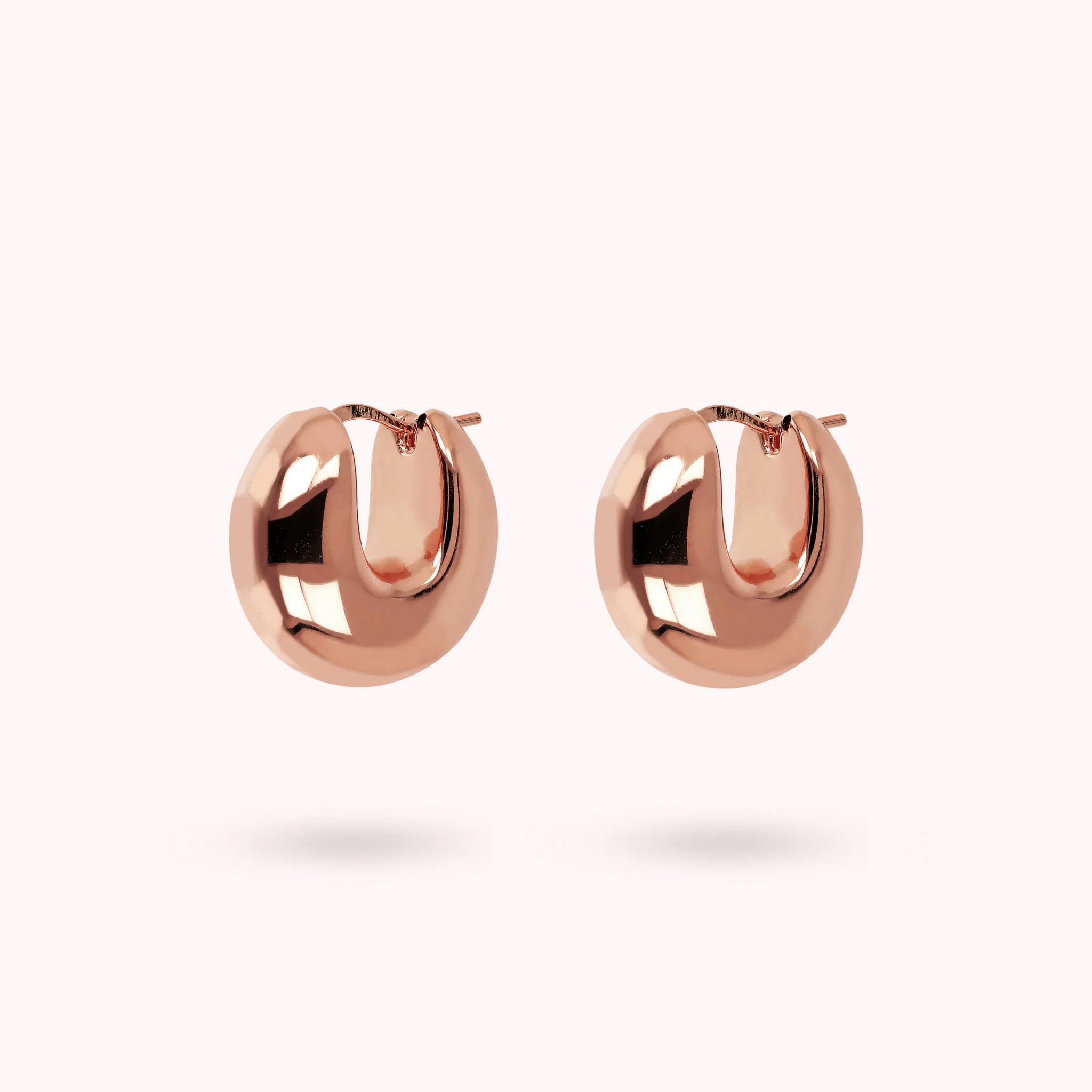 Boucles d'oreilles créoles Bronzallure en alliage Golden Rosé, doré à l'or fin 18ct, avec un design arrondi ; diamètre extérieur de 26 mm; fermeture à baïonnette.