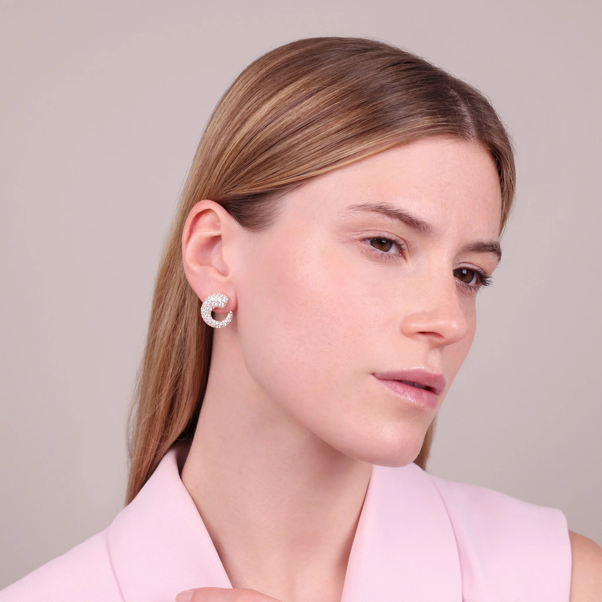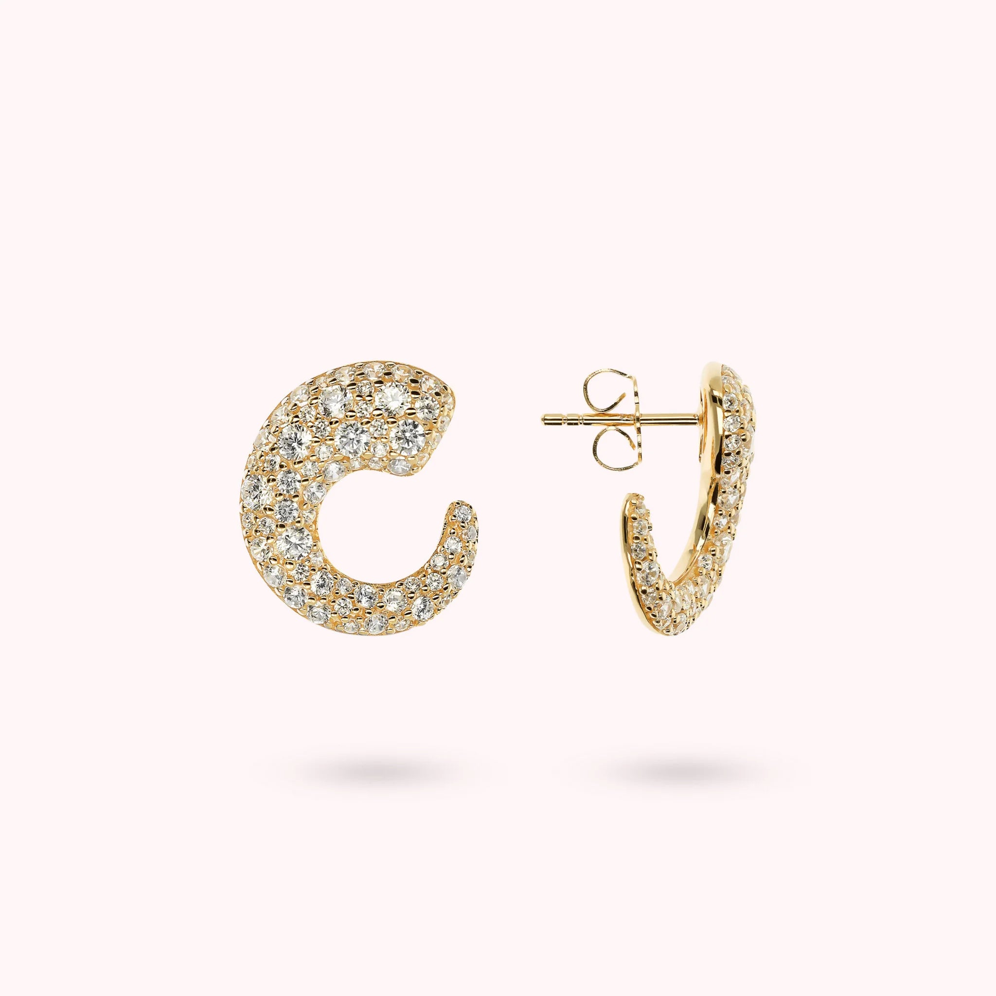 Boucles d'oreilles à lobe en demi-cercle doré gradué en pavé mixte
