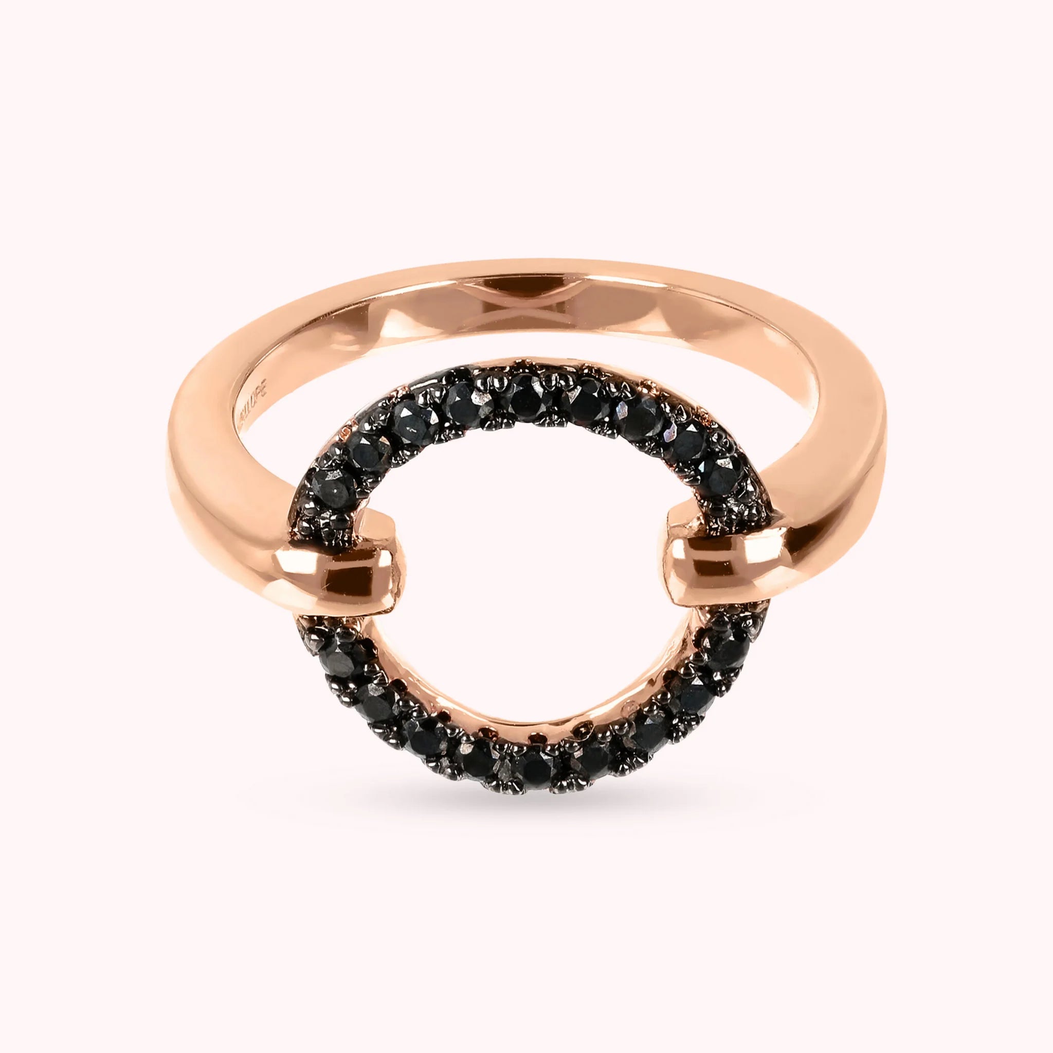 Bague cocktail avec cercle en oxyde de zirconium et spinelle noir