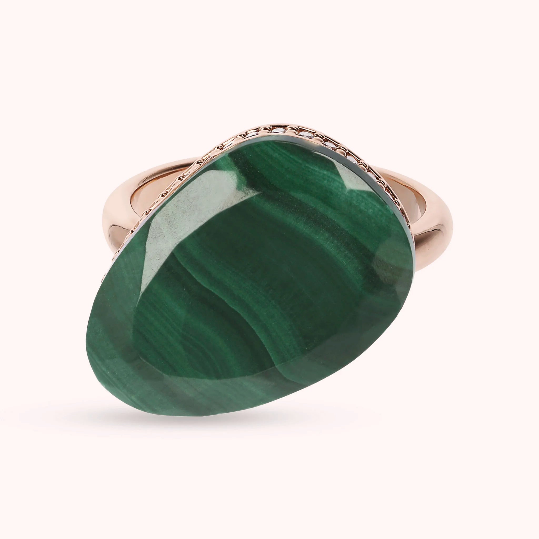 Bague cocktail Bronzallure en alliage Golden Rosé, doré à l'or fin 18ct, avec pierre naturelle (19 mm) aux couleurs vives et à la surface lisse entourée de zircons cubiques, qualité lumineuse, ou de spinelles noirs.