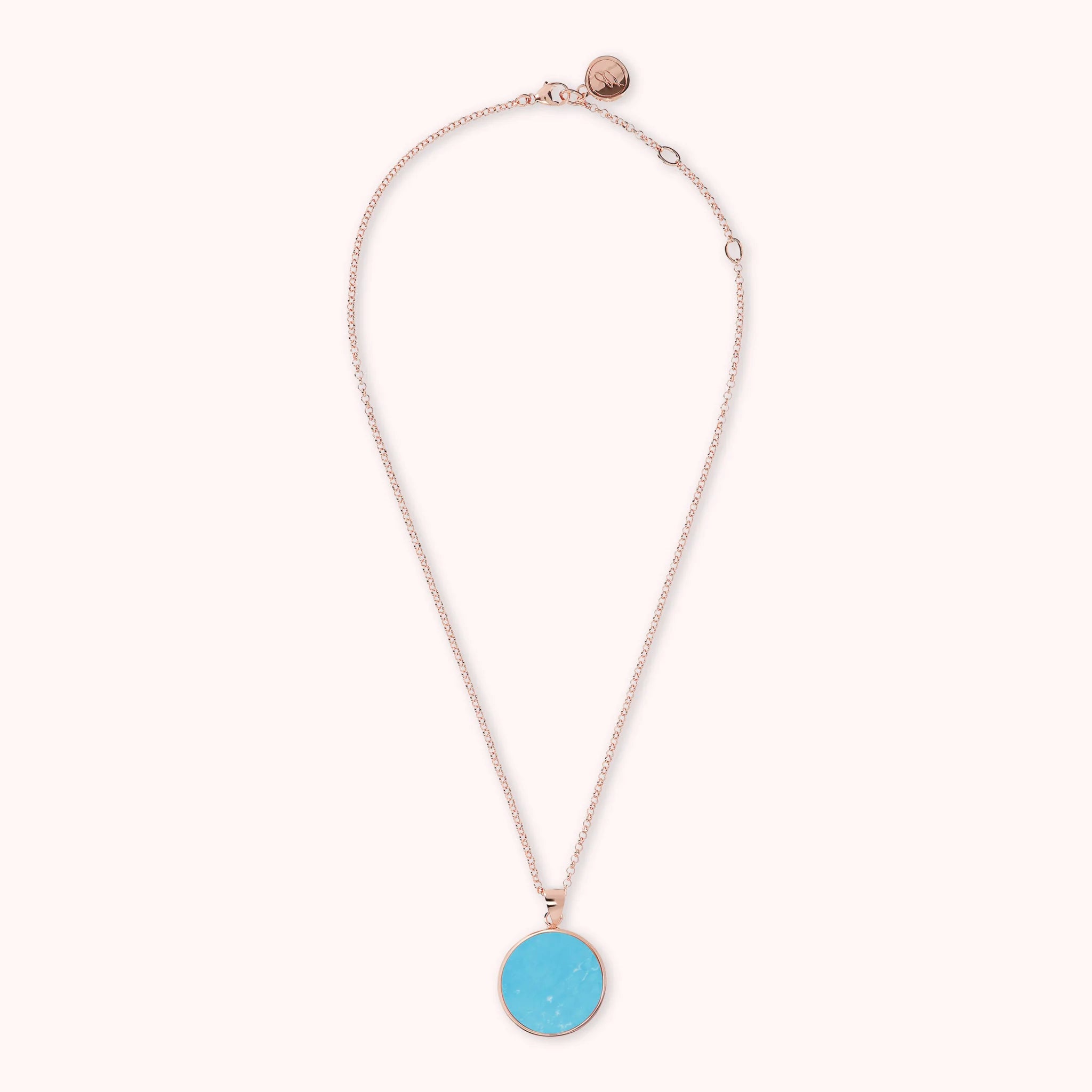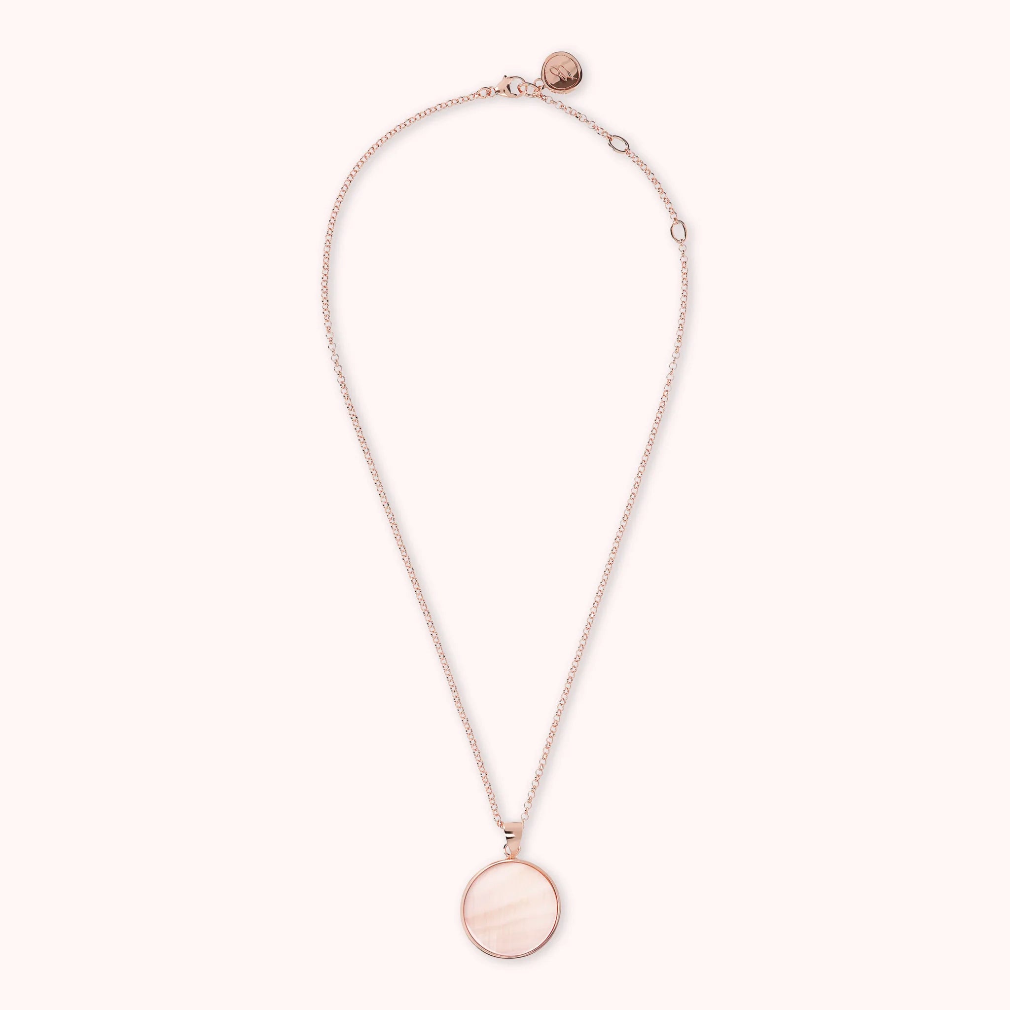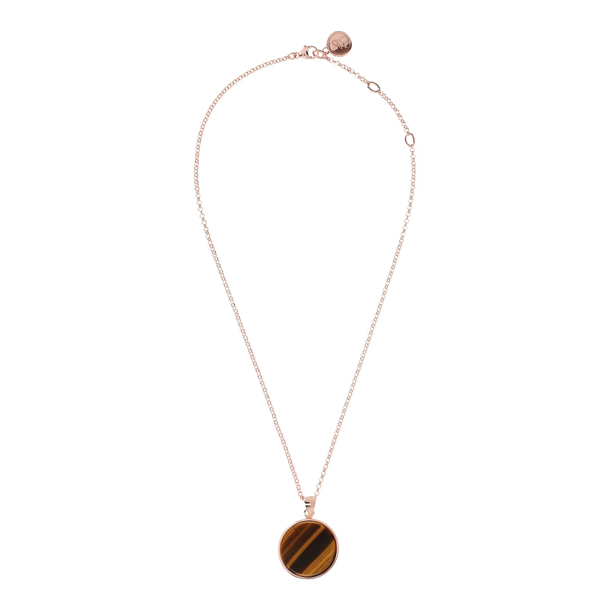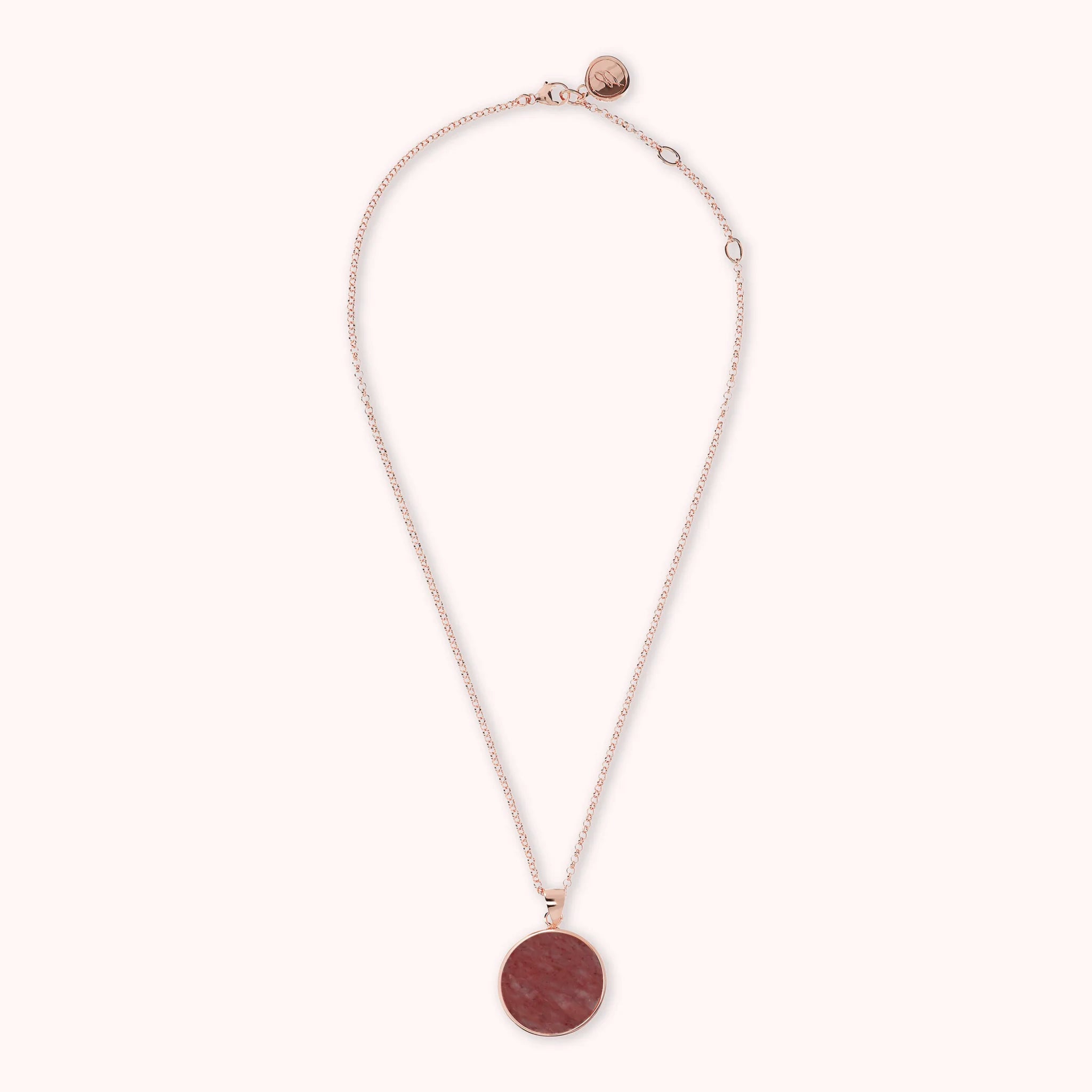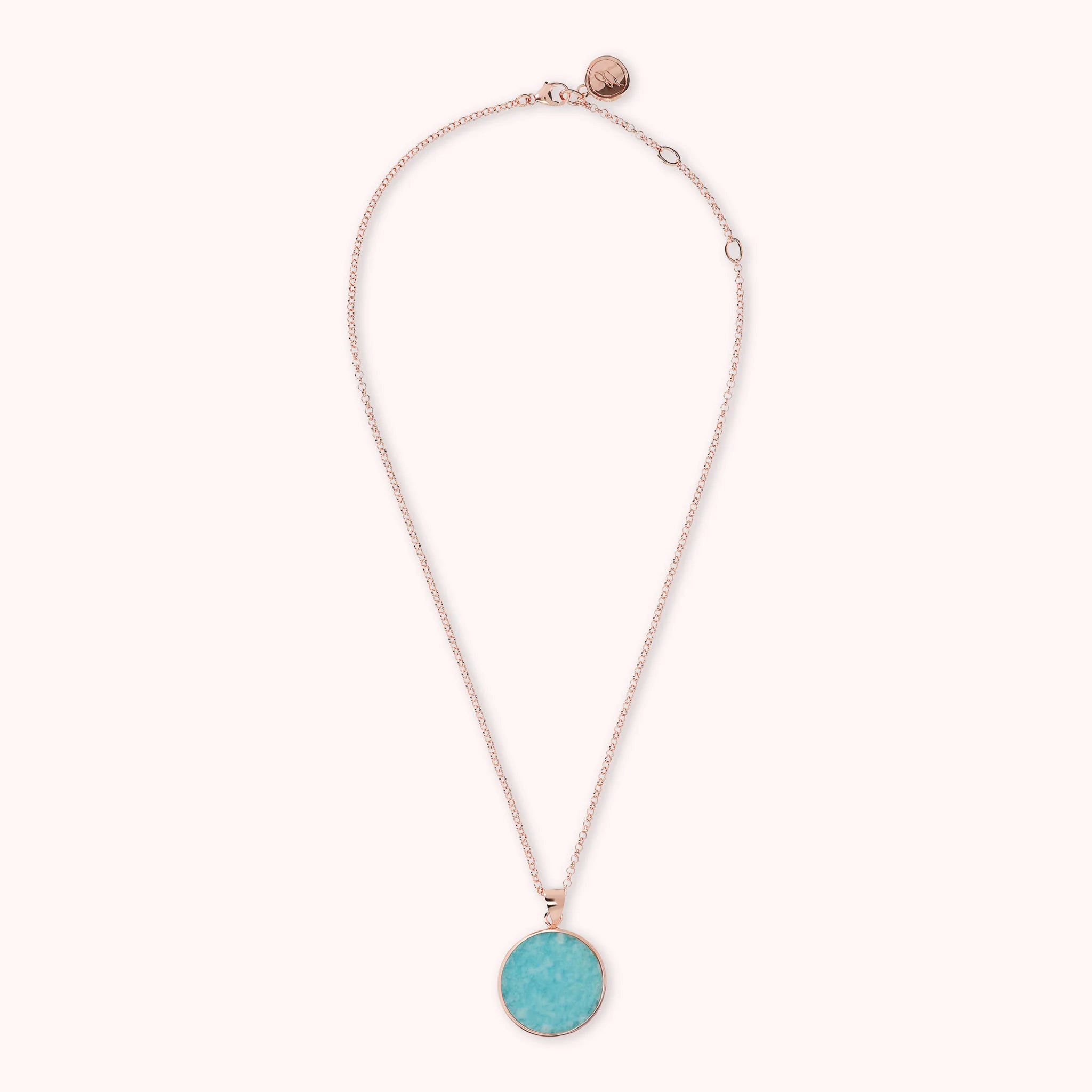 Collier Bronzallure en alliage Golden Rosé, doré à l'or fin 18ct, avec chaîne rolo agrémentée d'un pendentif disque moyen en pierre naturelle (2,4 cm), fermoir mousqueton avec rallonge.