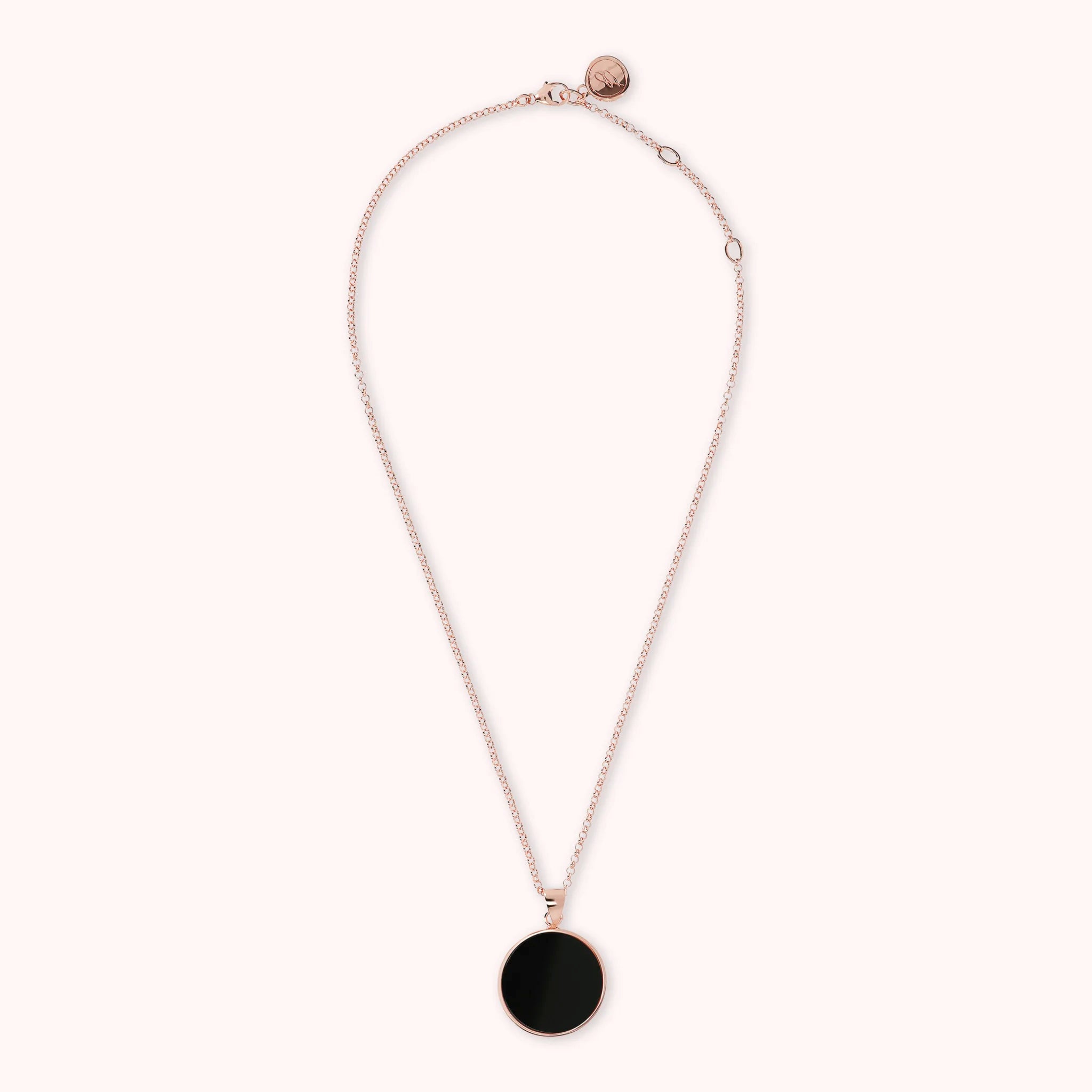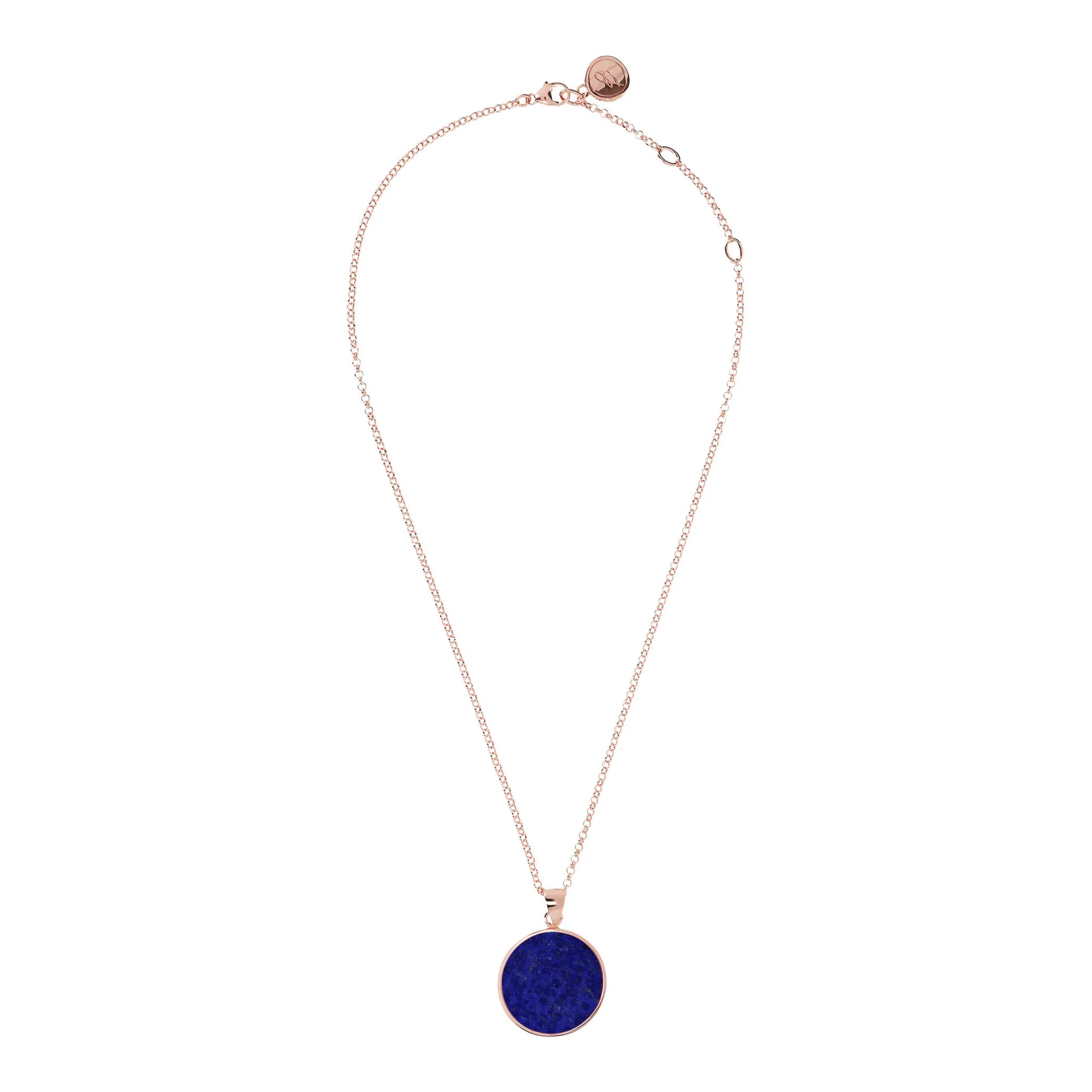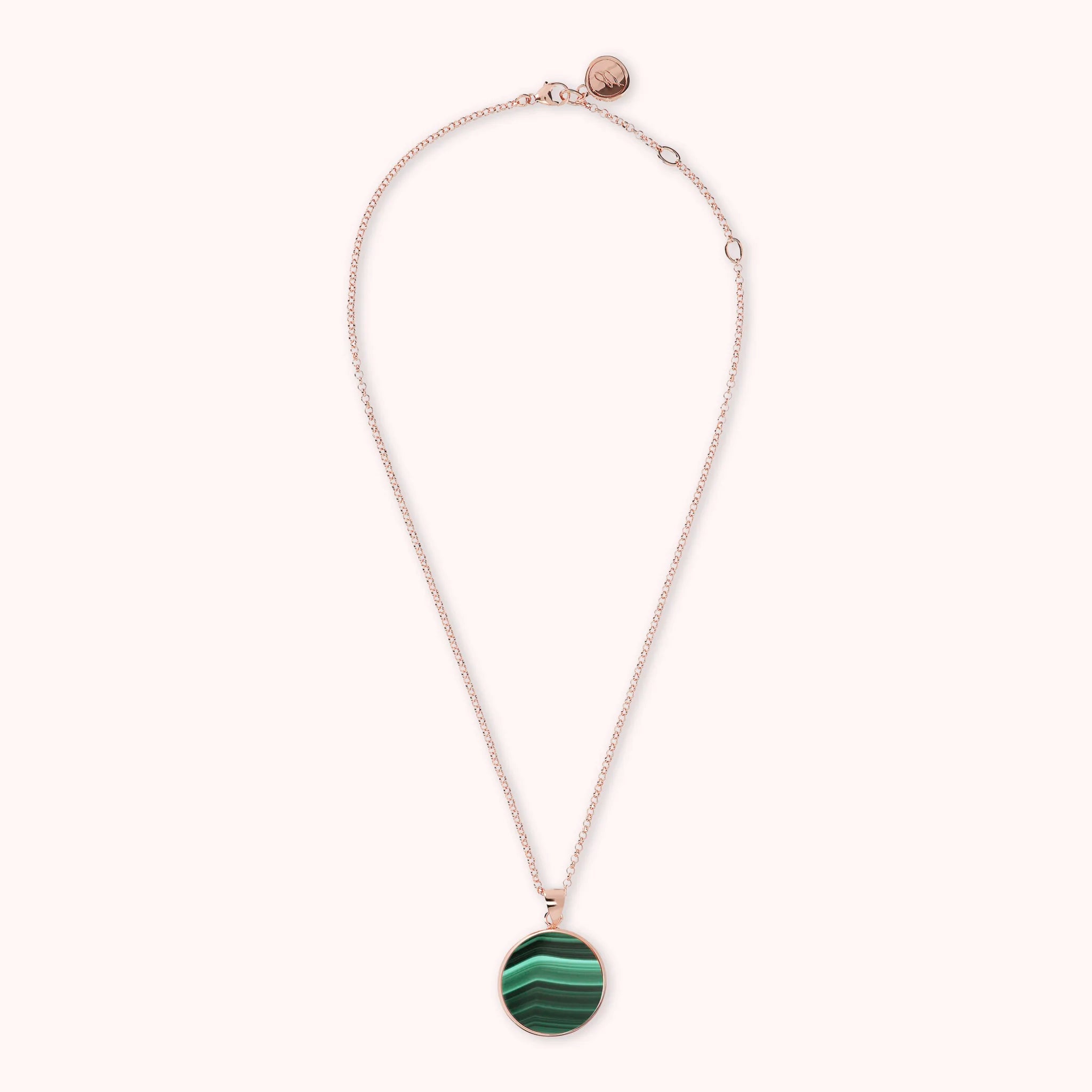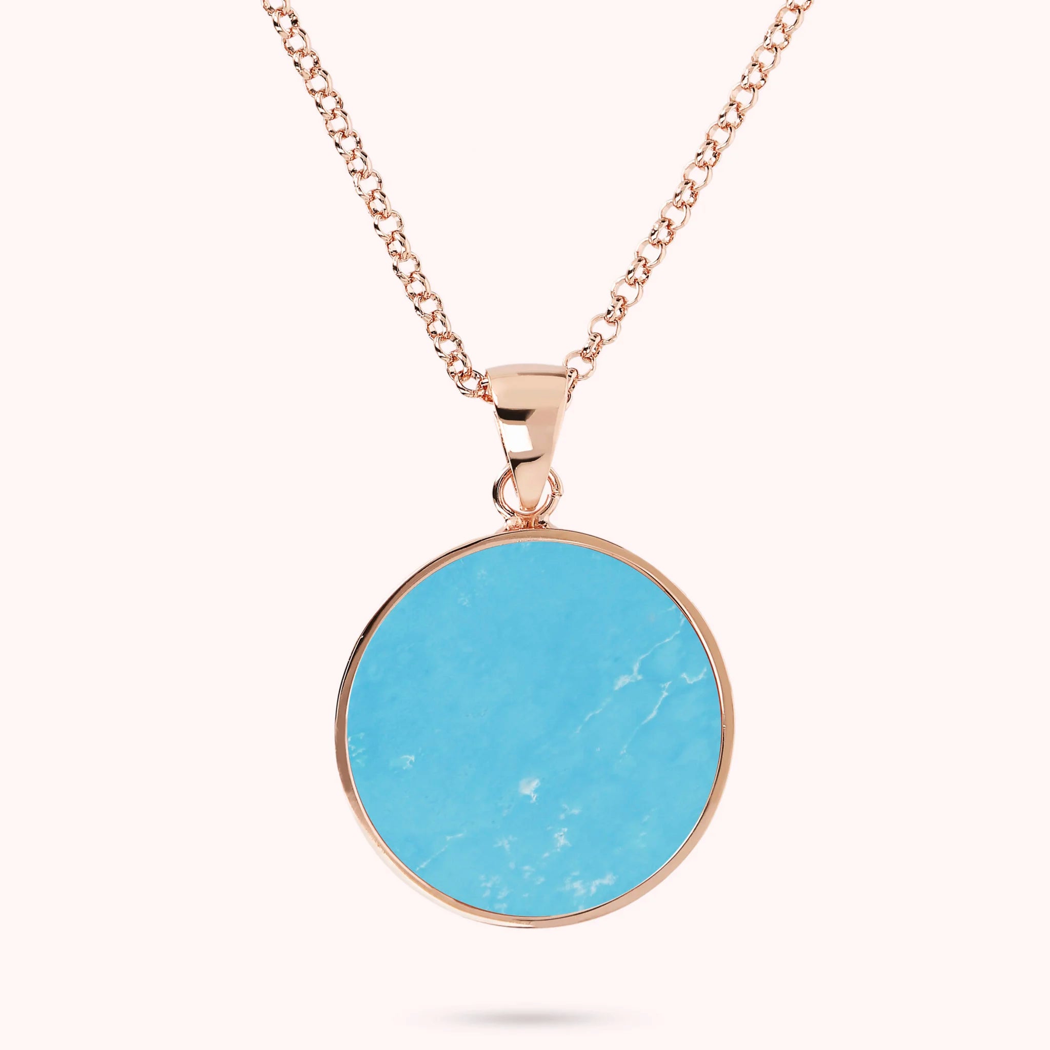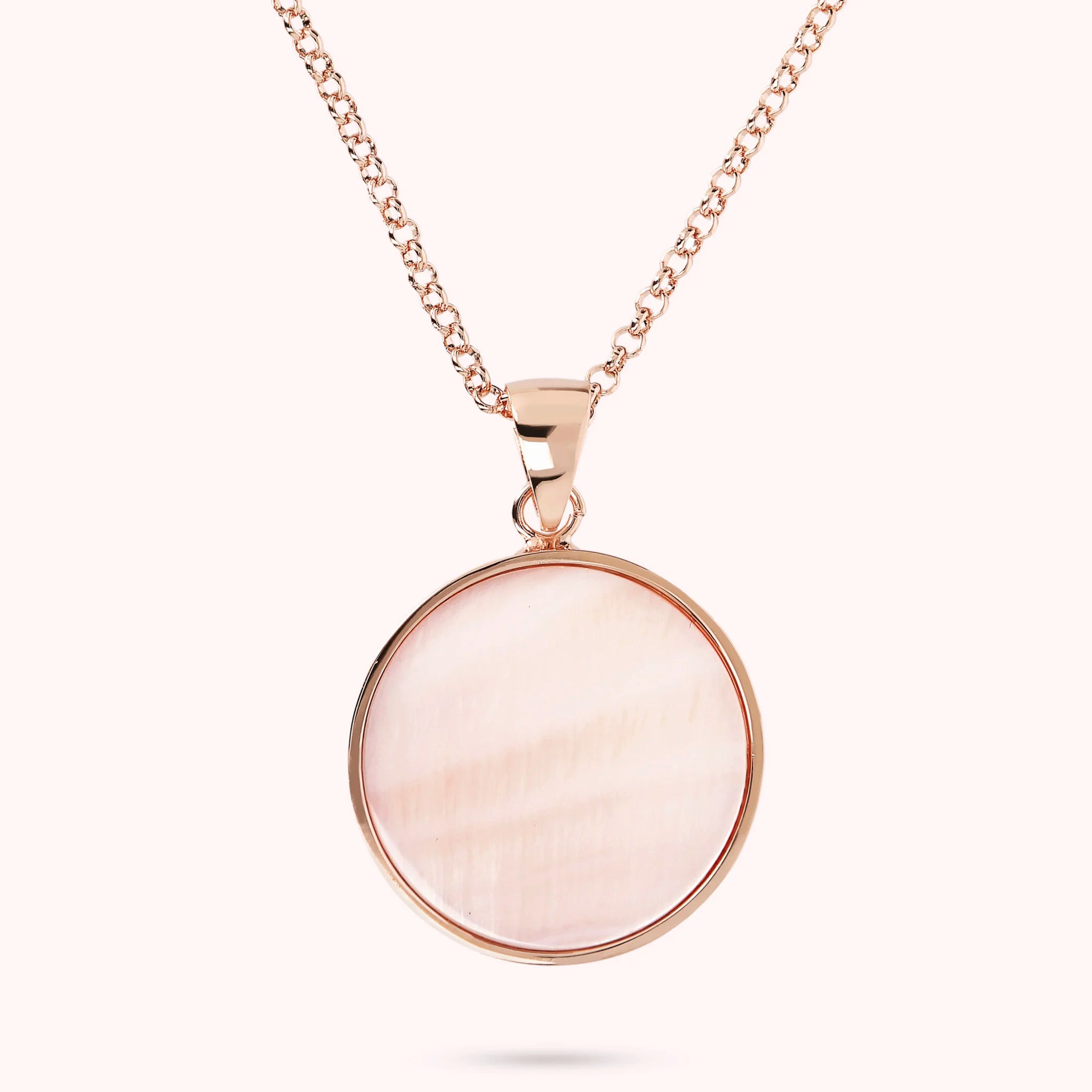 Collier Bronzallure en alliage Golden Rosé, doré à l'or fin 18ct, avec chaîne rolo agrémentée d'un pendentif disque moyen en pierre naturelle (2,4 cm), fermoir mousqueton avec rallonge.