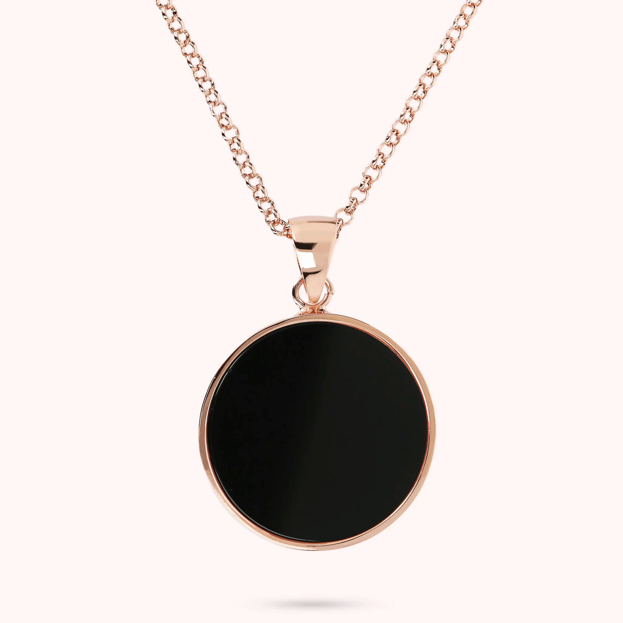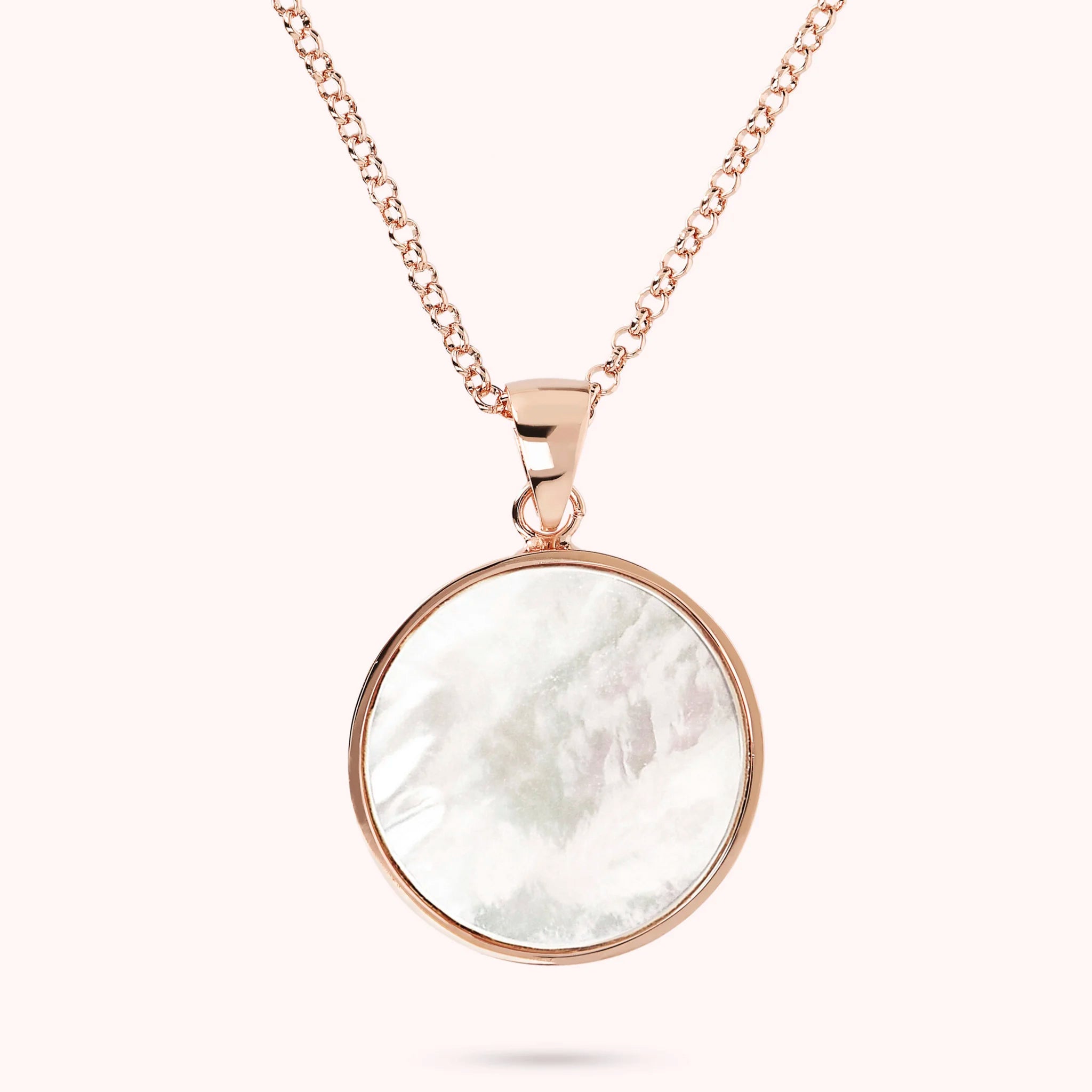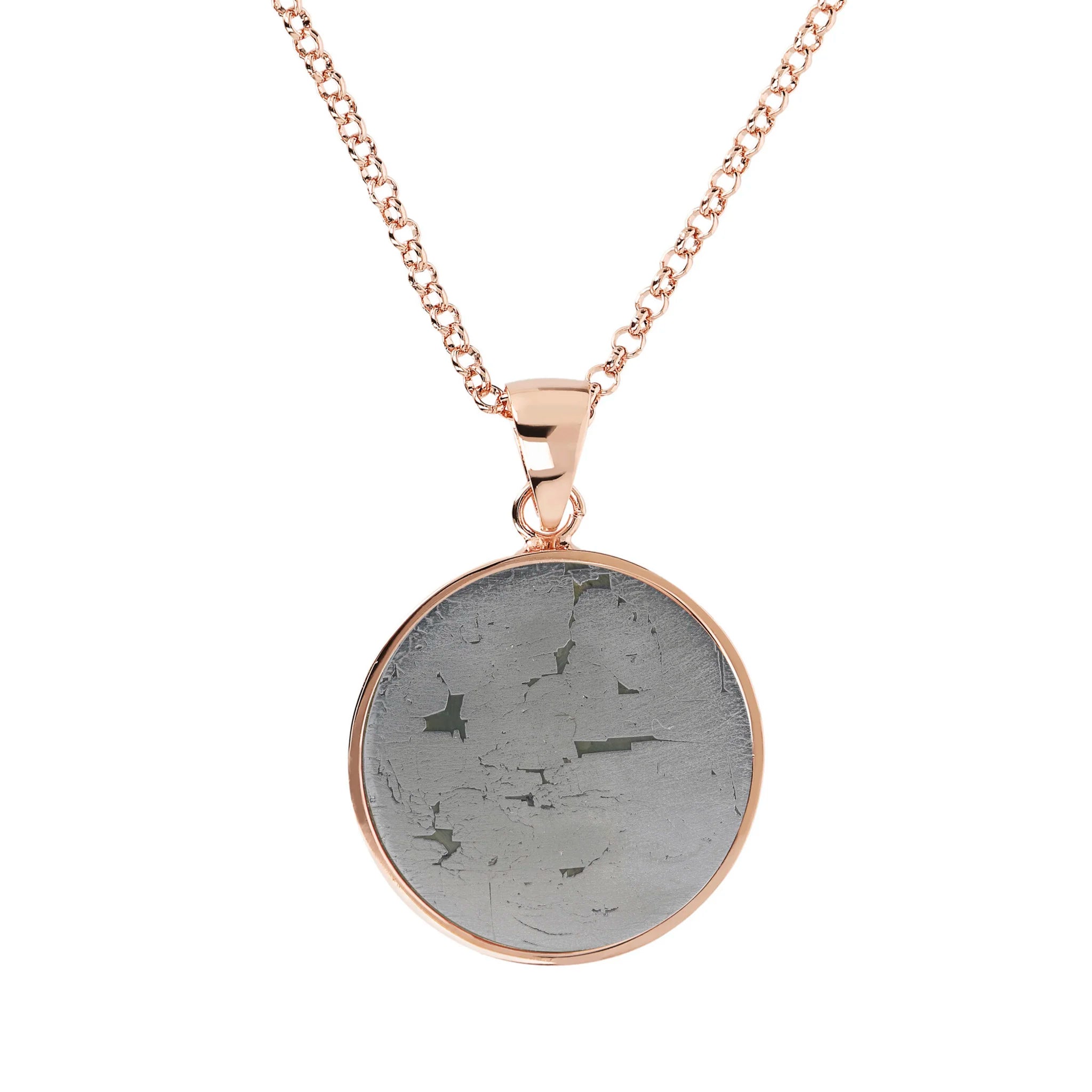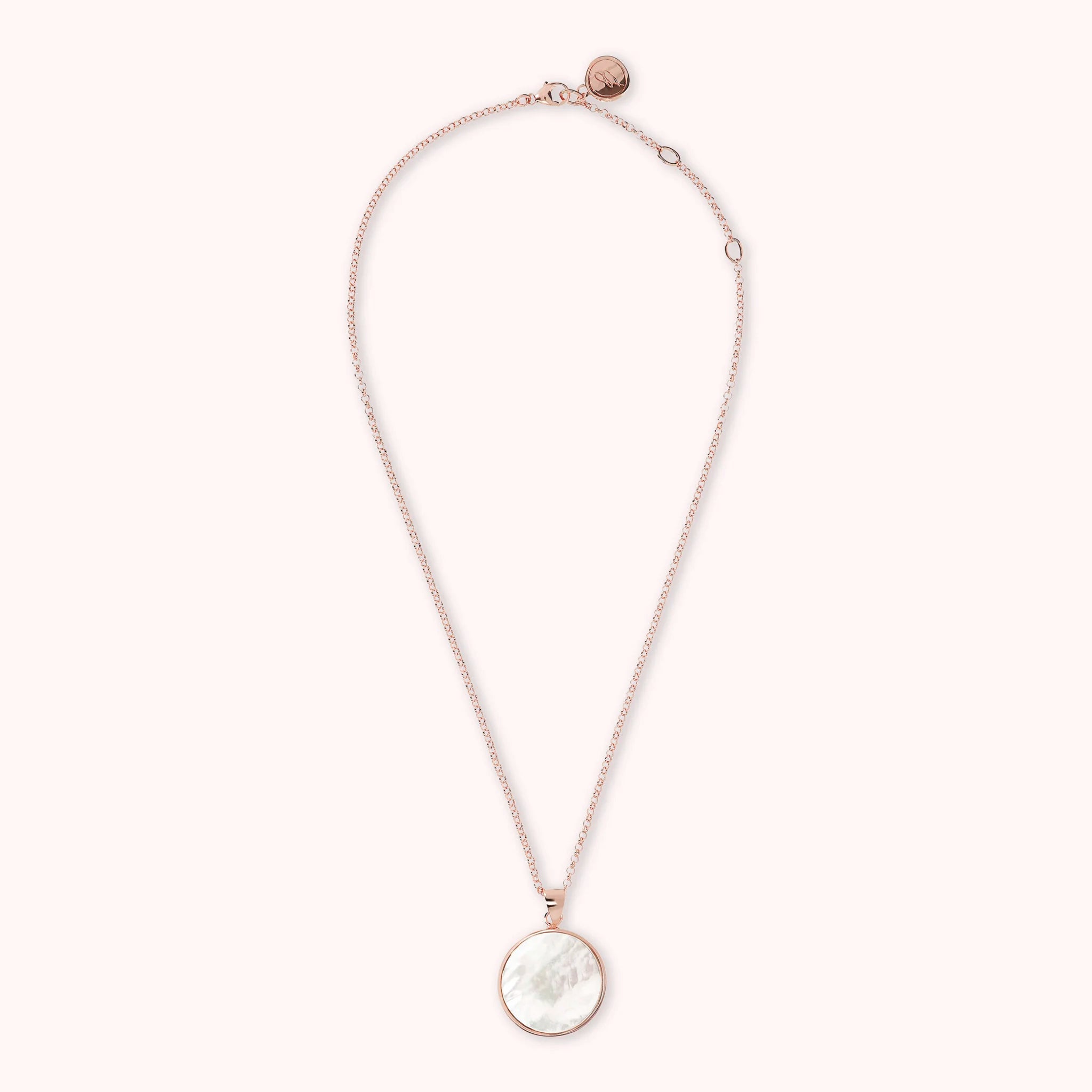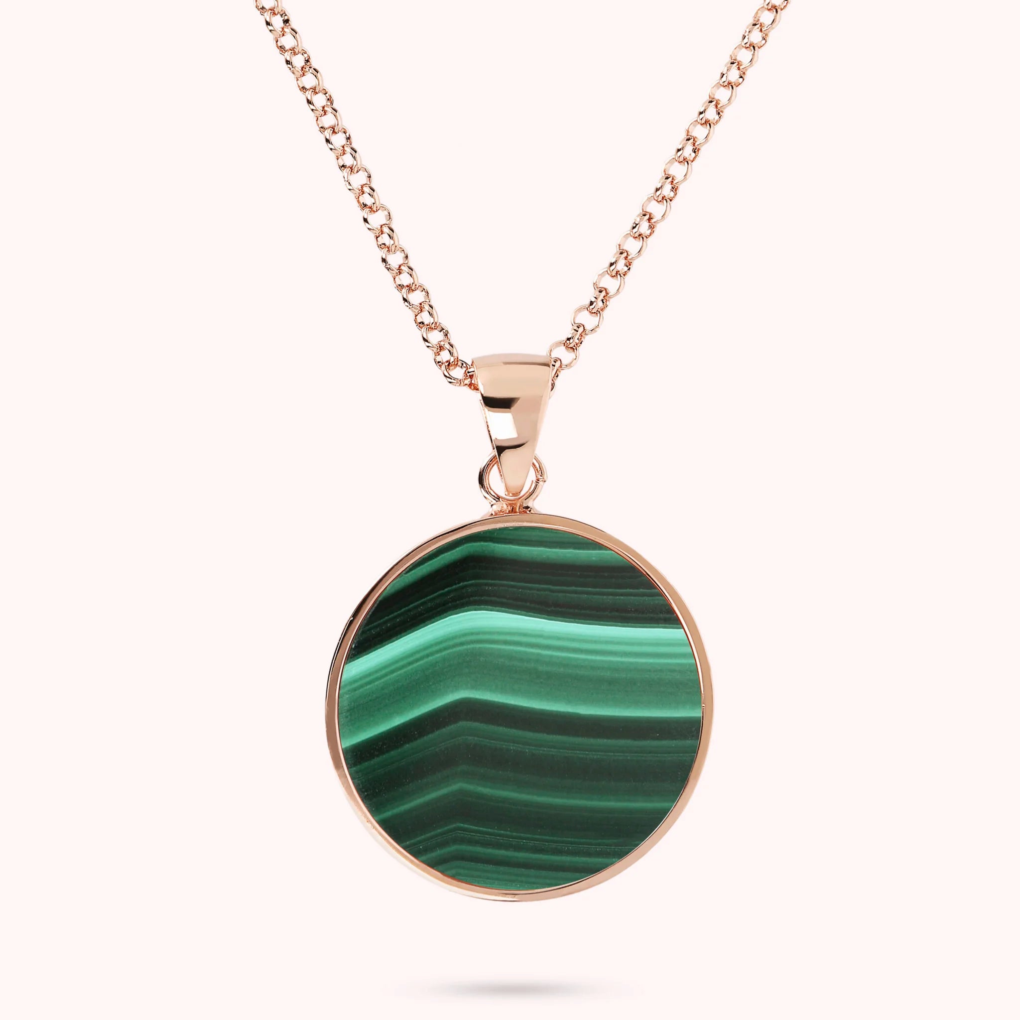 Collier Bronzallure en alliage Golden Rosé, doré à l'or fin 18ct, avec chaîne rolo agrémentée d'un pendentif disque moyen en pierre naturelle (2,4 cm), fermoir mousqueton avec rallonge.