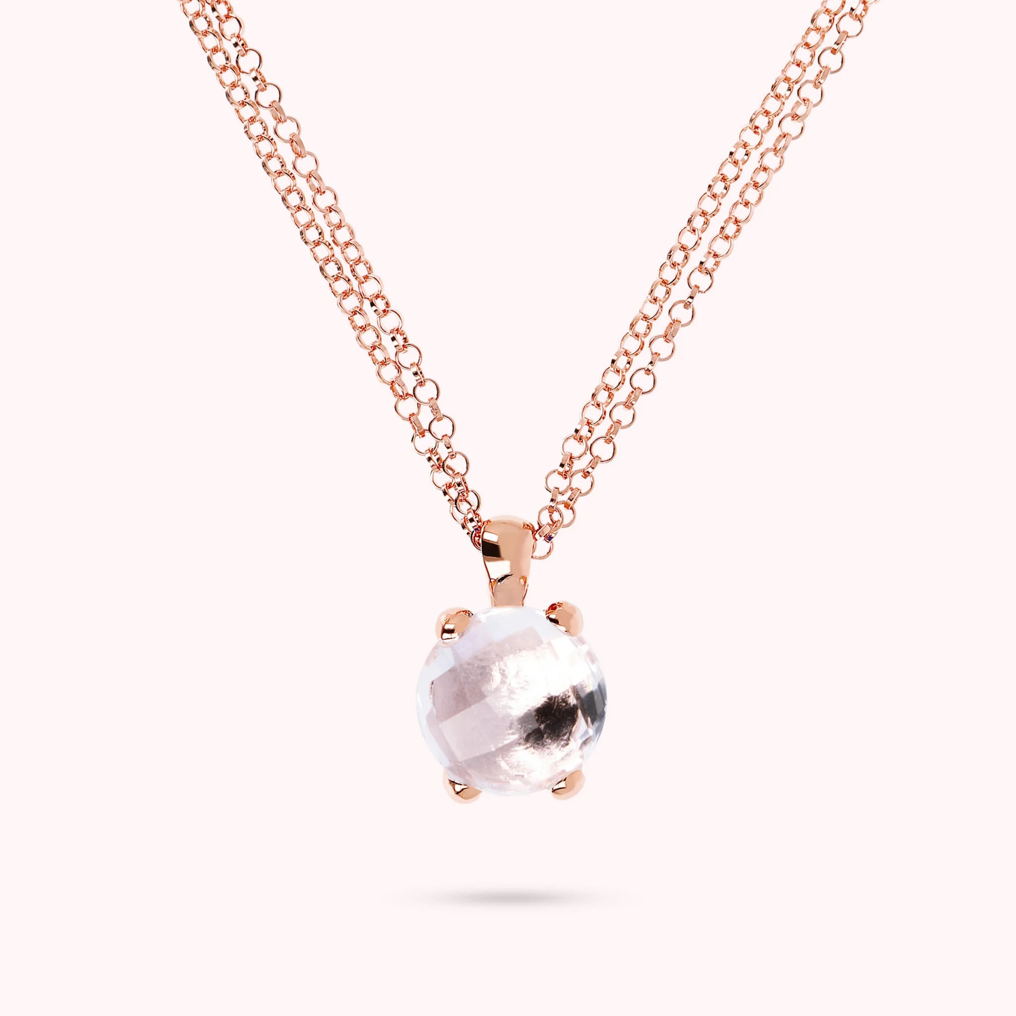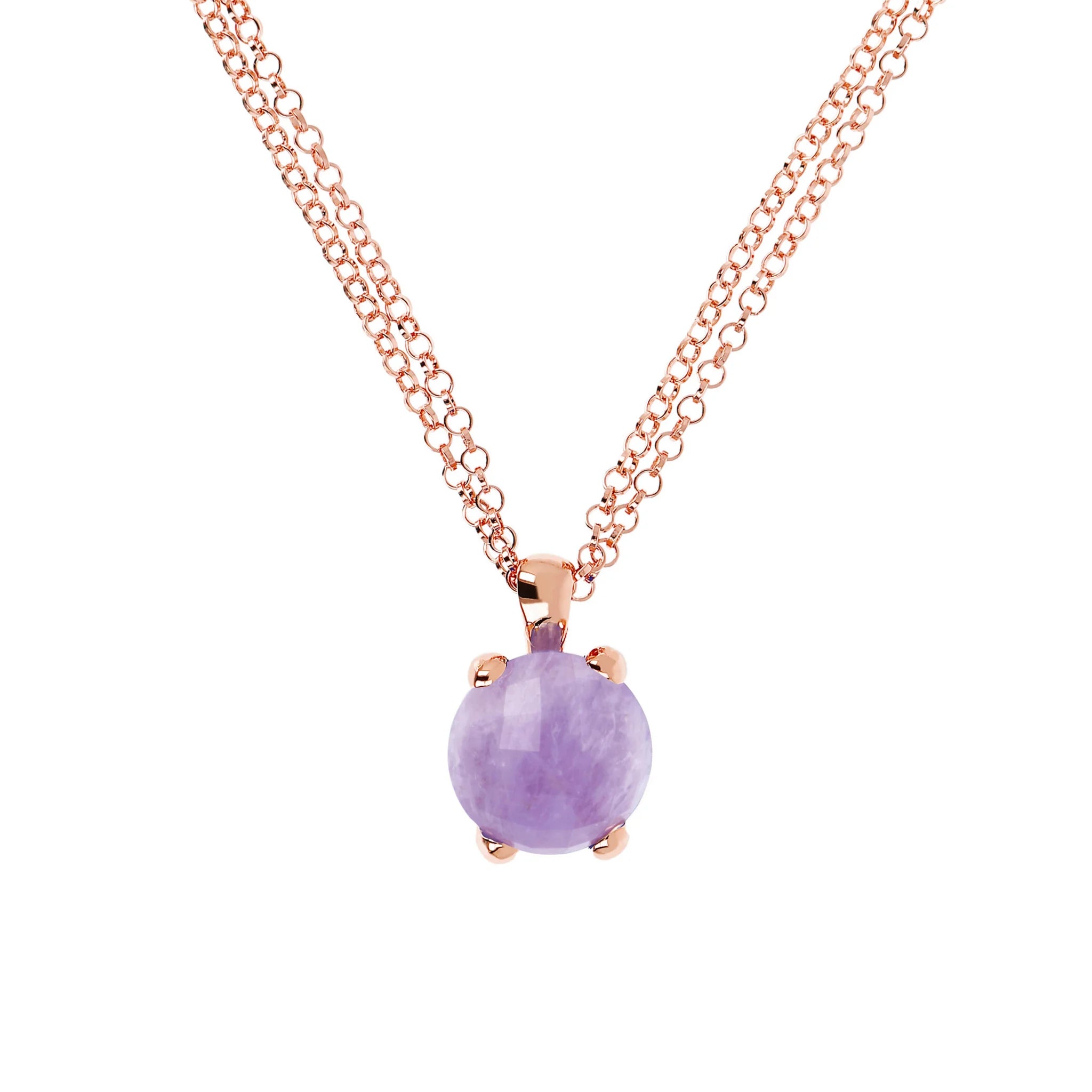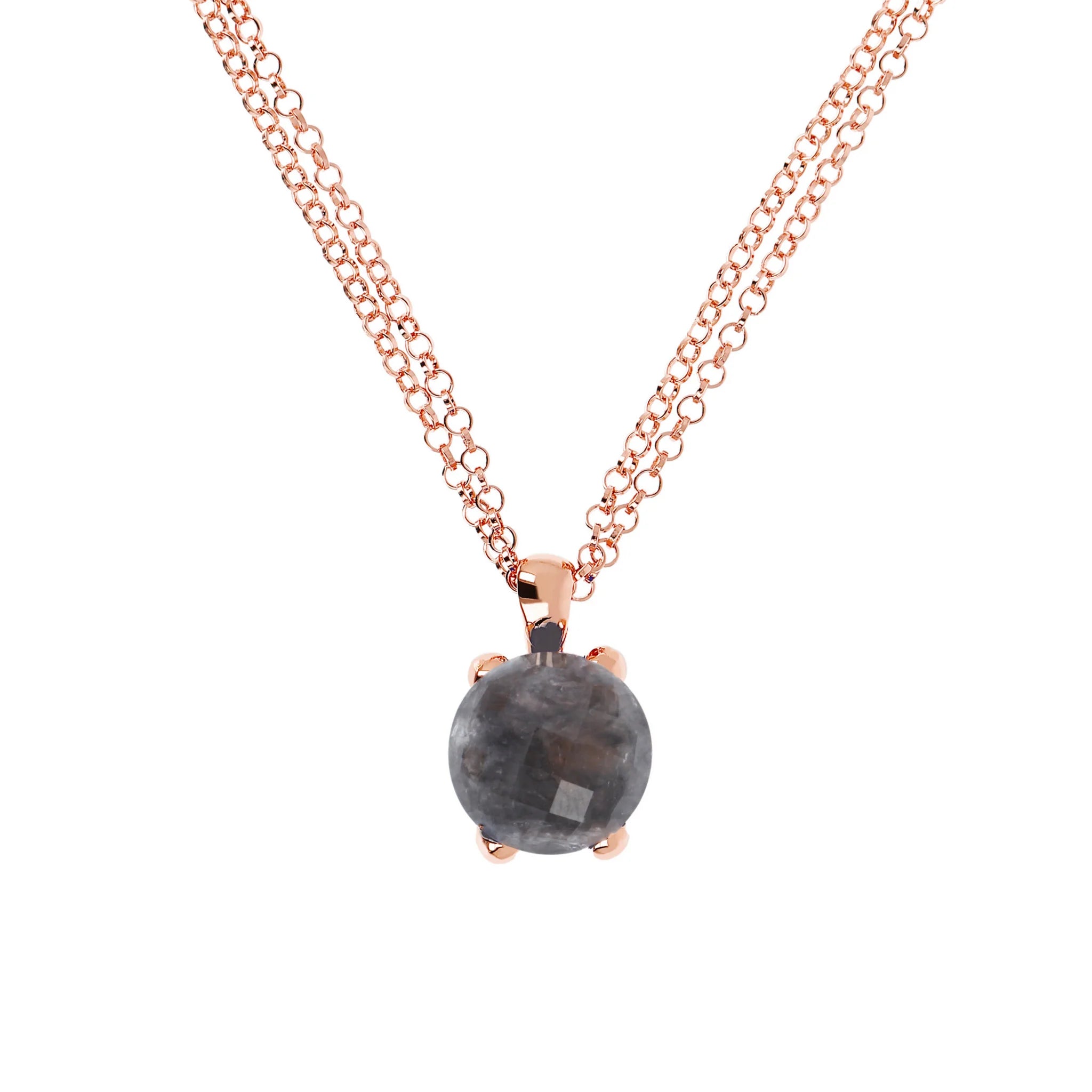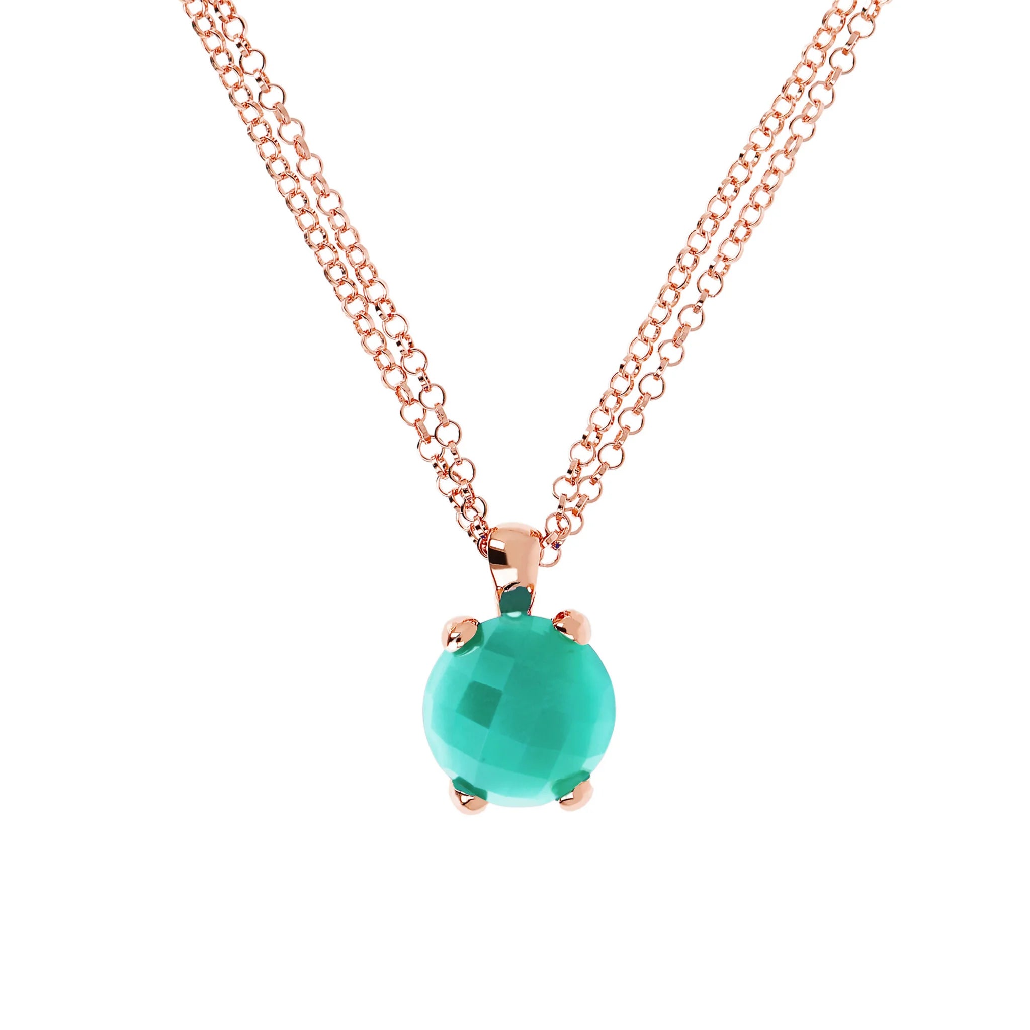 Collier Bronzallure en alliage Golden Rosé, doré à l'or fin 18ct, avec double chaîne jaseron agrémentée d'un pendentif de forme ronde en pierre naturelle (11 mm) ; fermoir mousqueton avec rallonge.