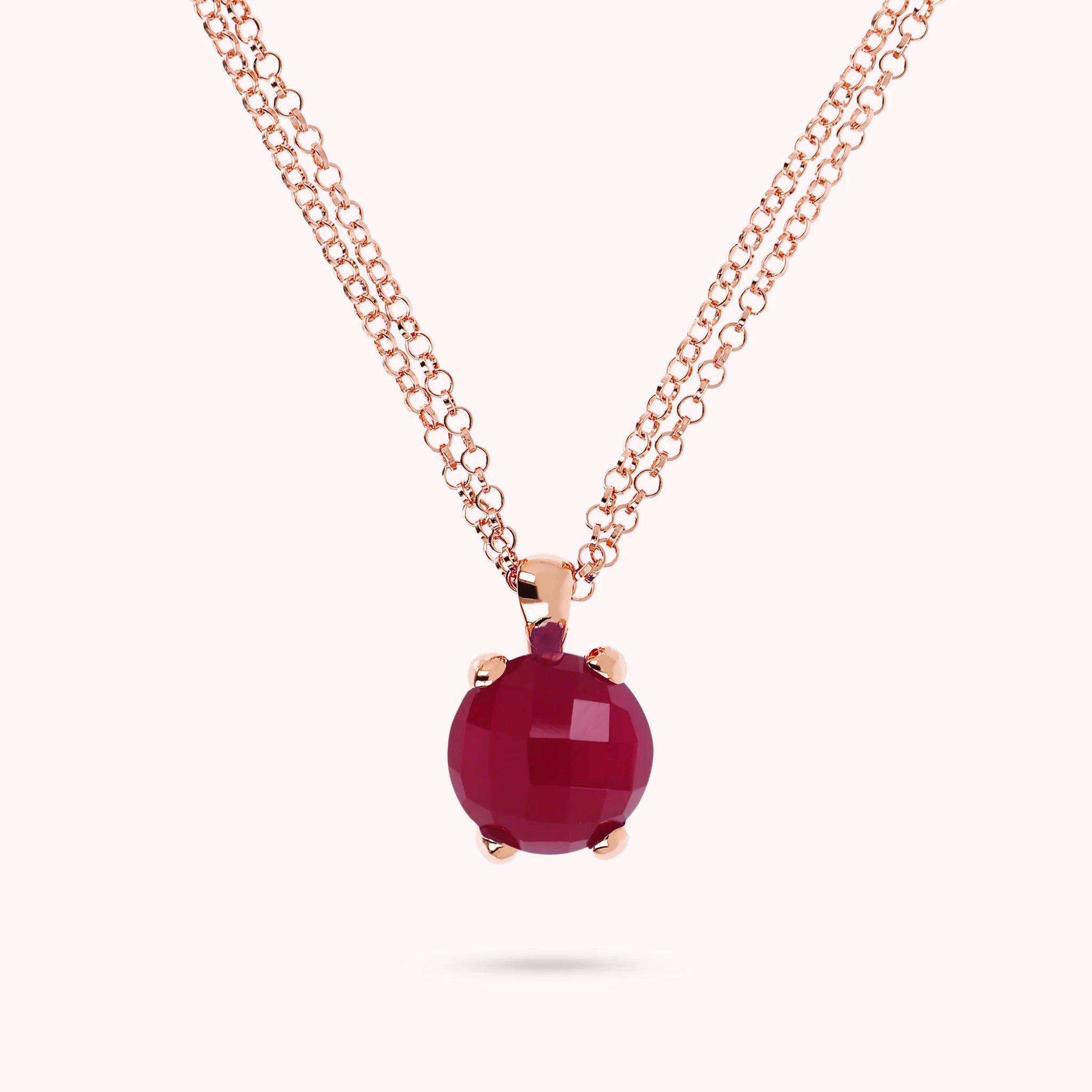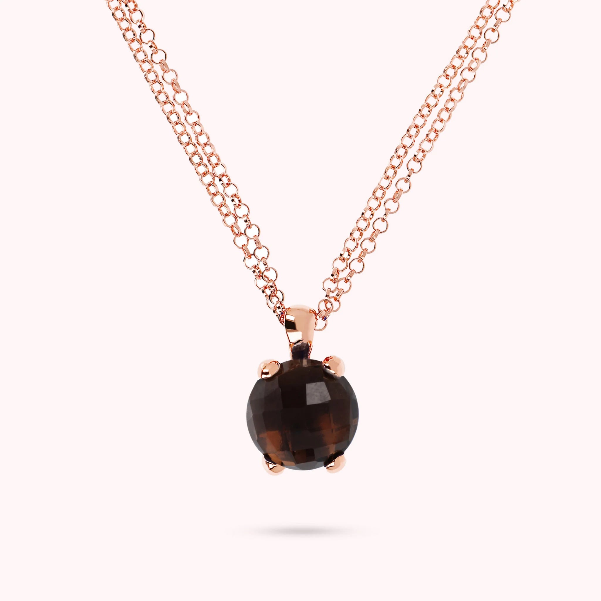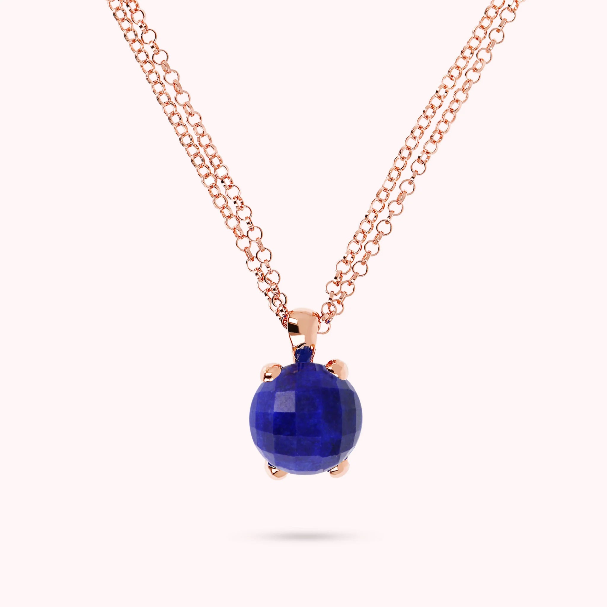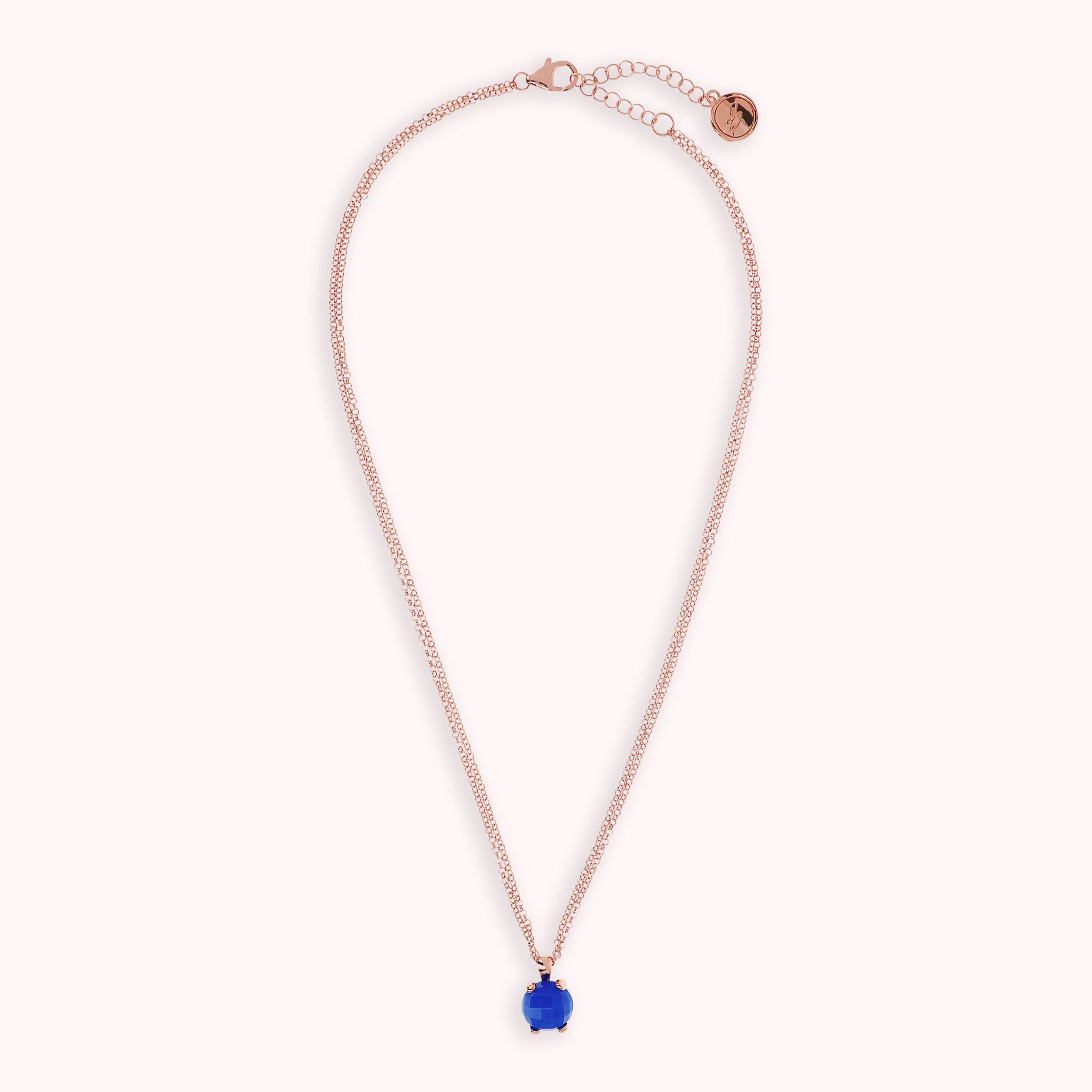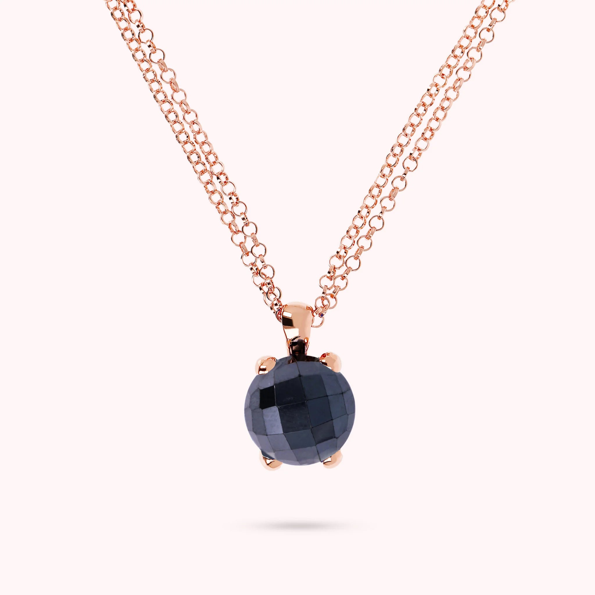 Collier Bronzallure en alliage Golden Rosé, doré à l'or fin 18ct, avec double chaîne jaseron agrémentée d'un pendentif de forme ronde en pierre naturelle (11 mm) ; fermoir mousqueton avec rallonge.