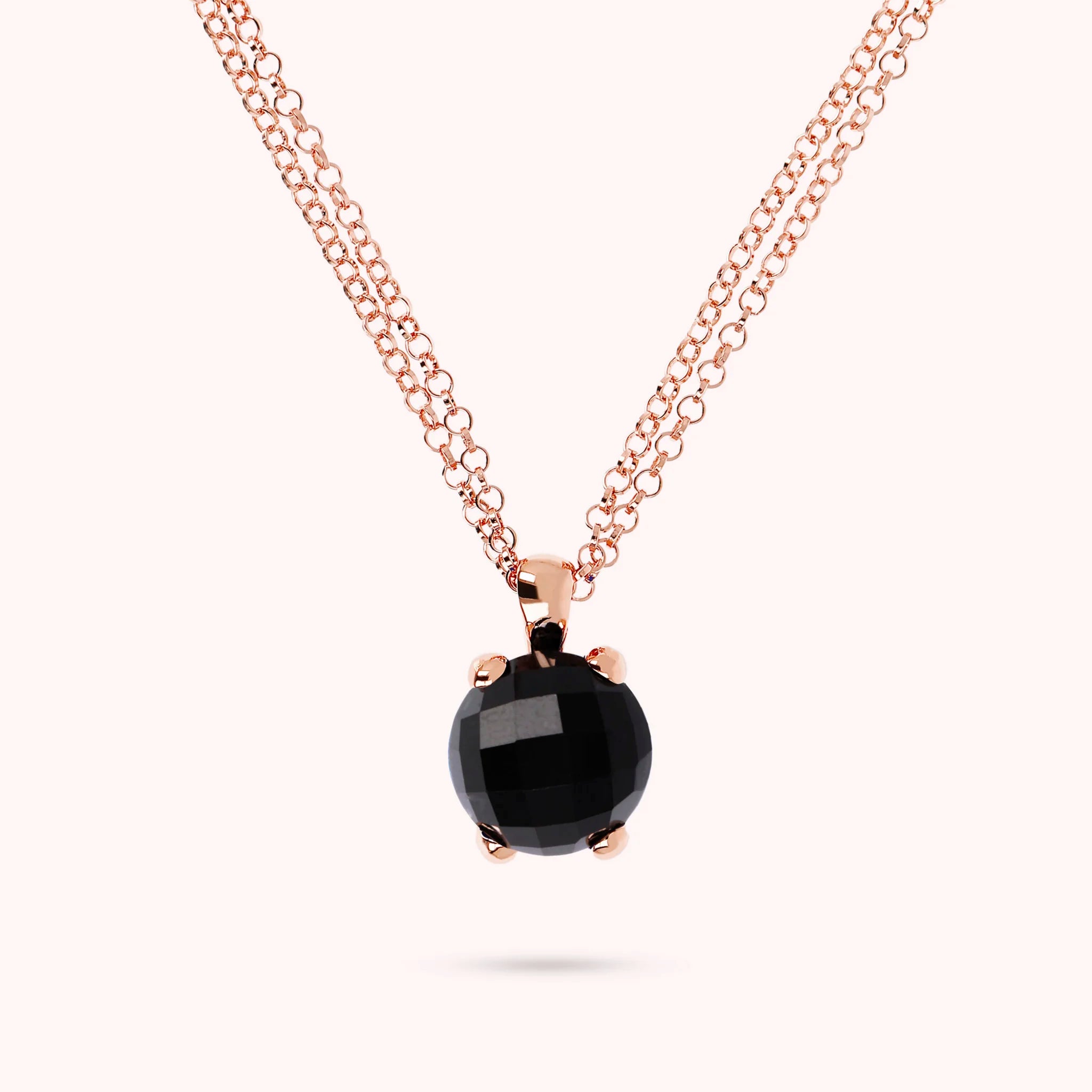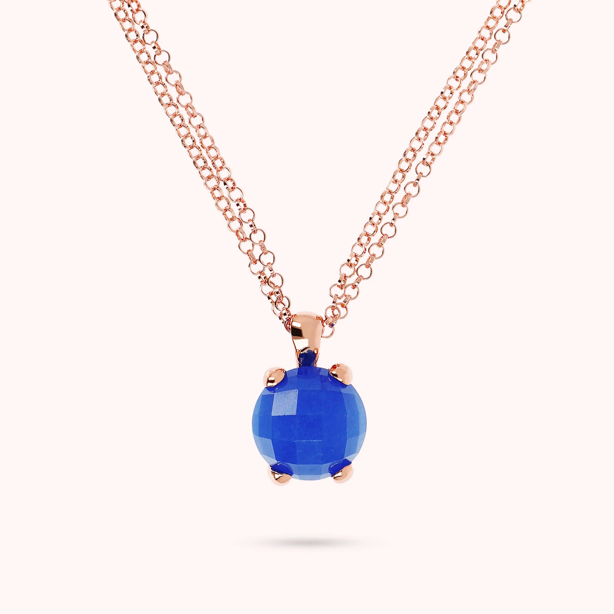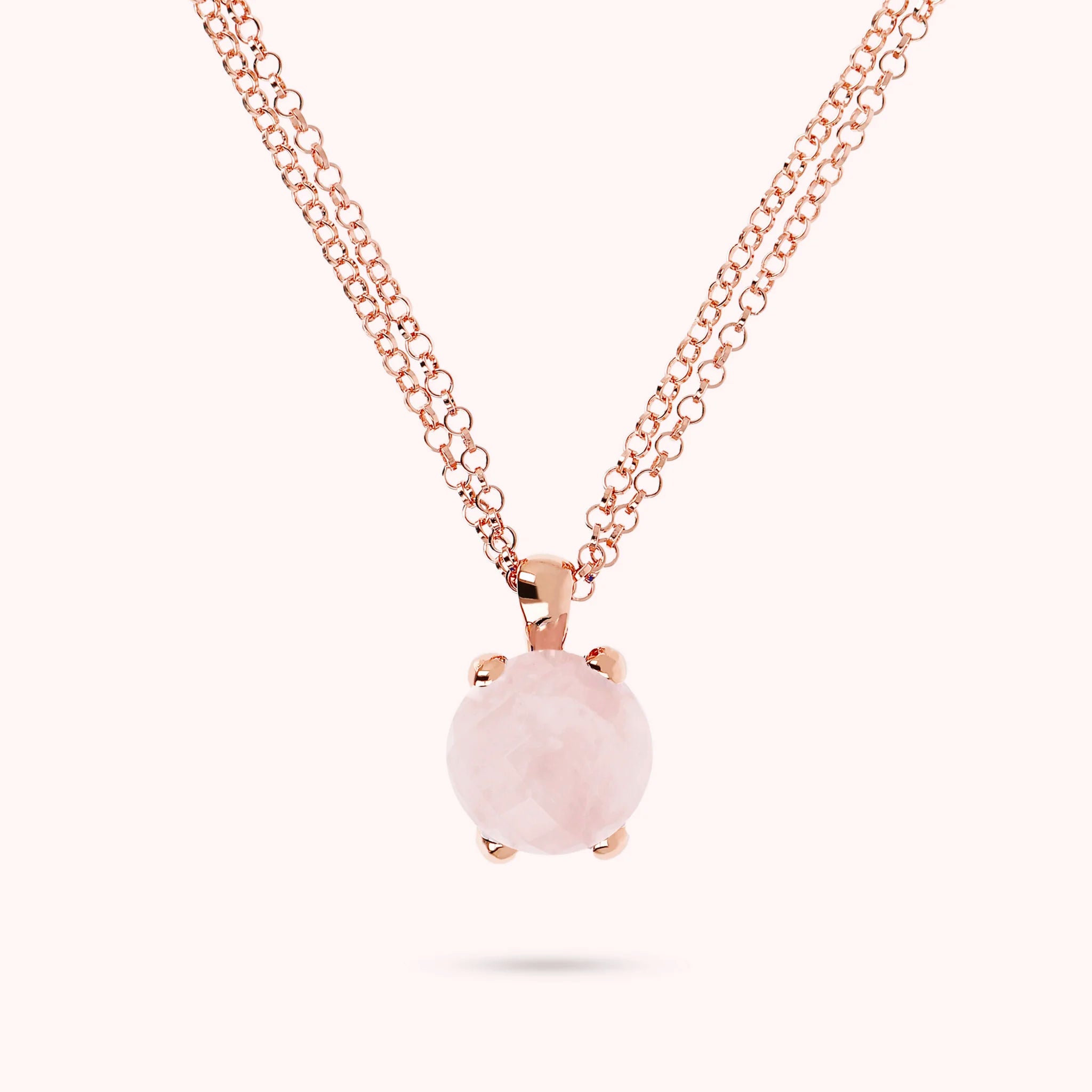 Collier Bronzallure en alliage Golden Rosé, doré à l'or fin 18ct, avec double chaîne jaseron agrémentée d'un pendentif de forme ronde en pierre naturelle (11 mm) ; fermoir mousqueton avec rallonge.