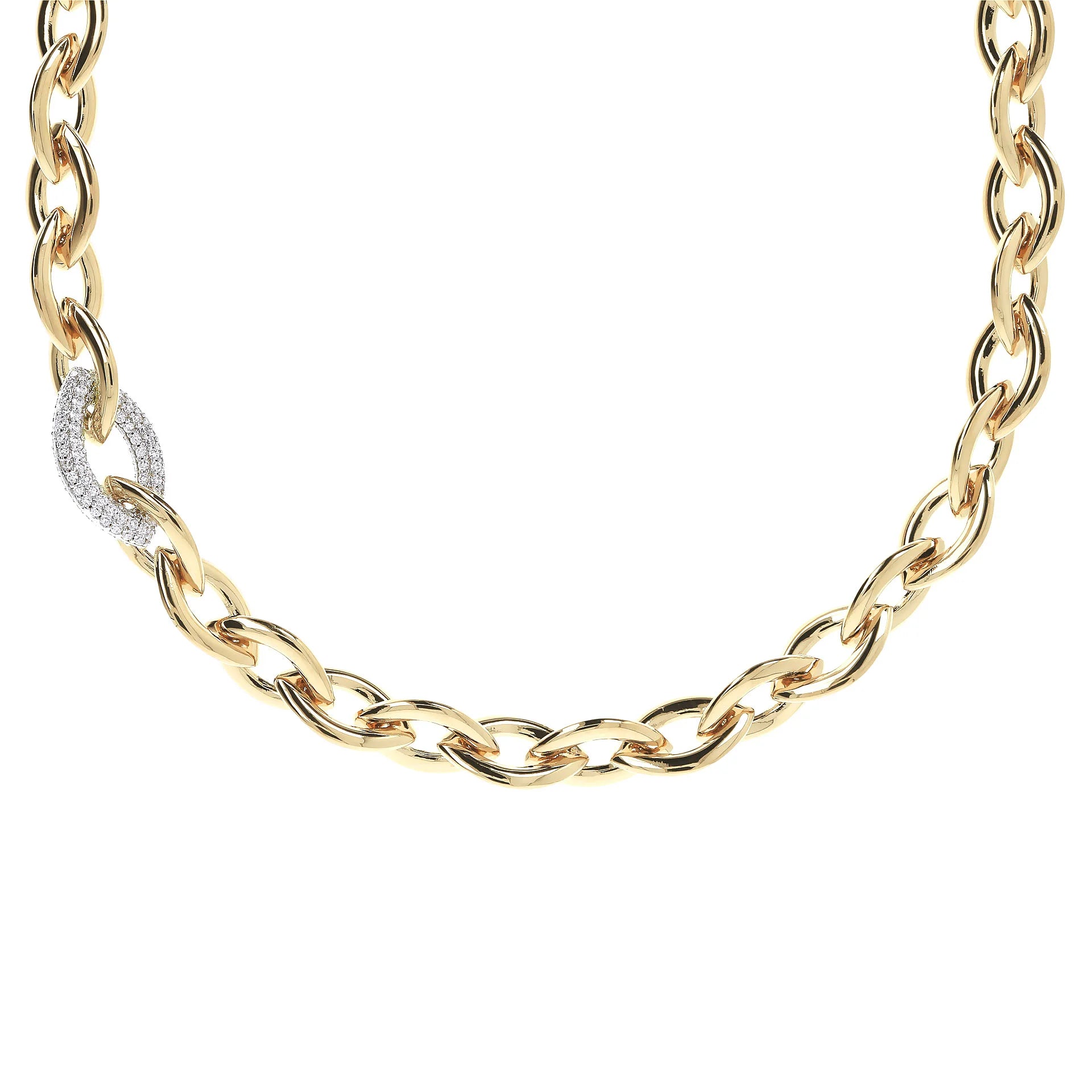 Collier ras du cou chaîne marquise dorée avec élément pavé en zircone cubique