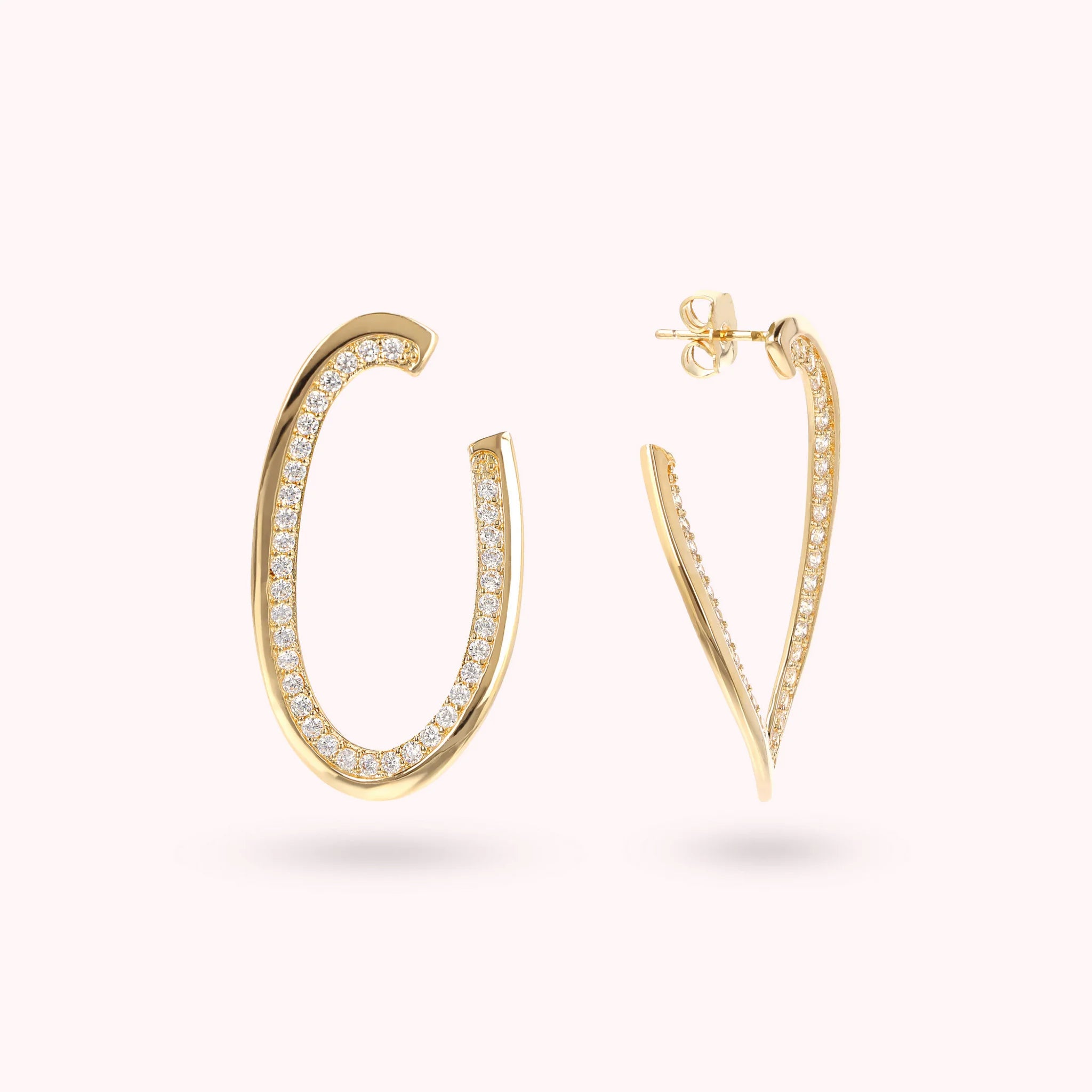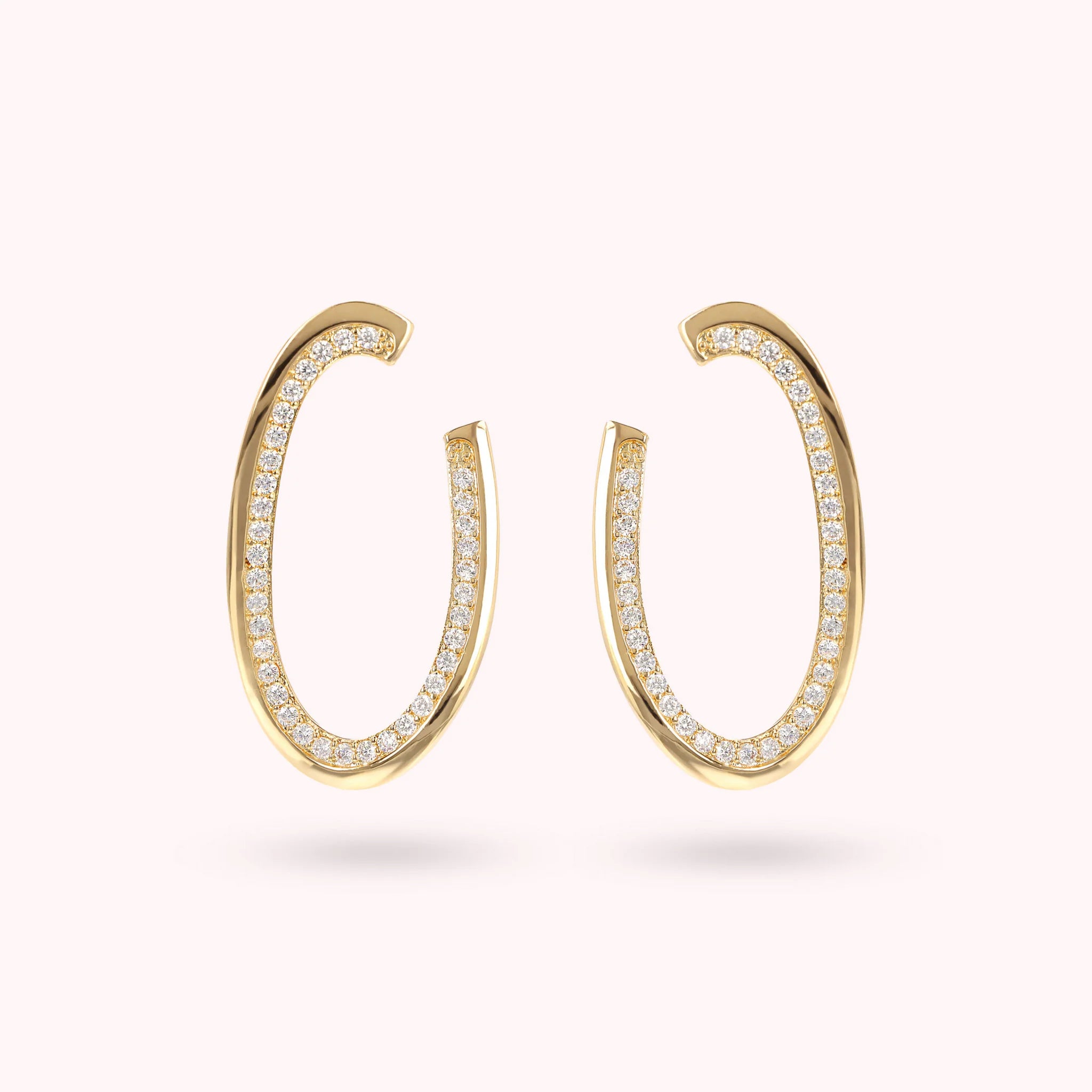 Boucles d'oreilles pendantes ovales dorées avec zircons cubiques