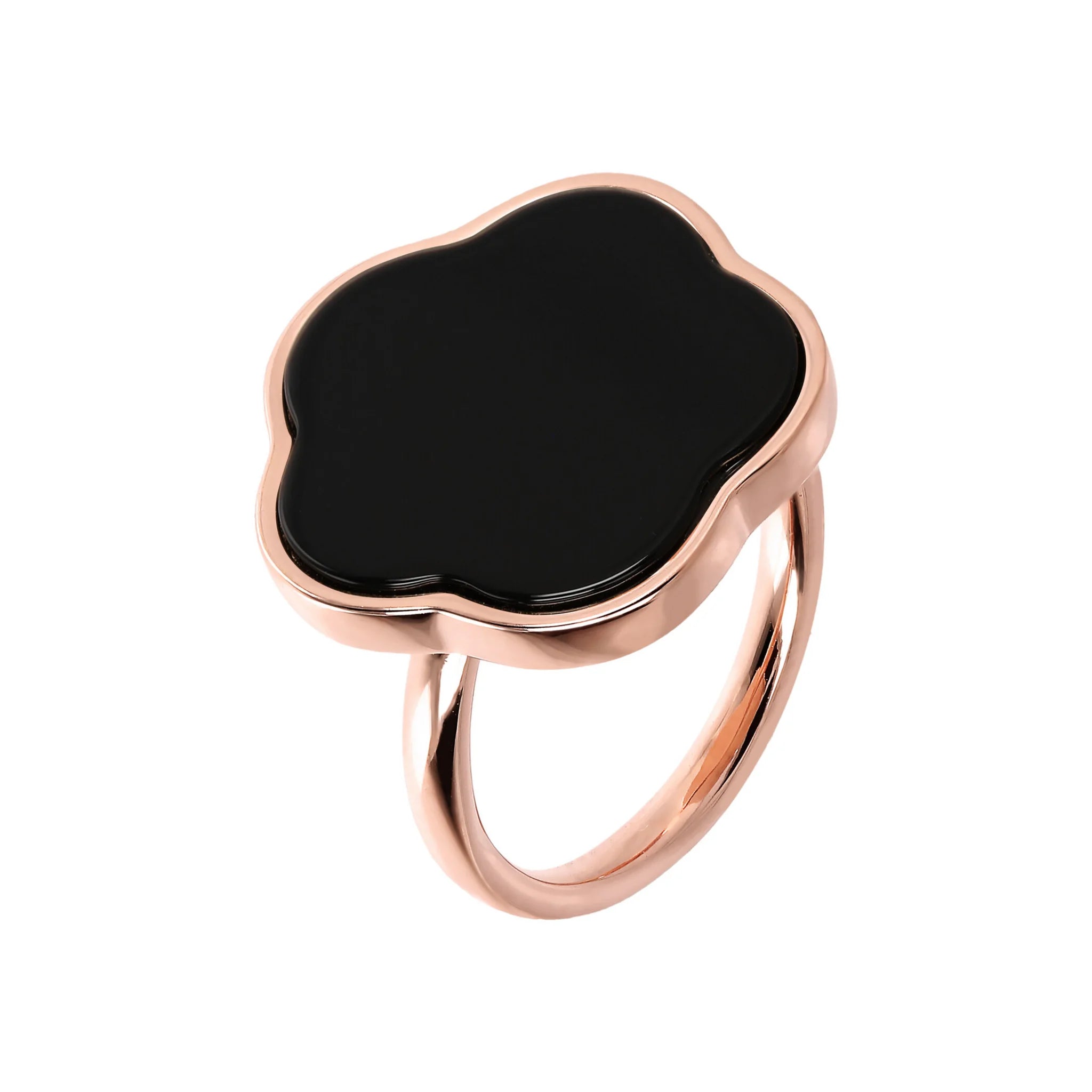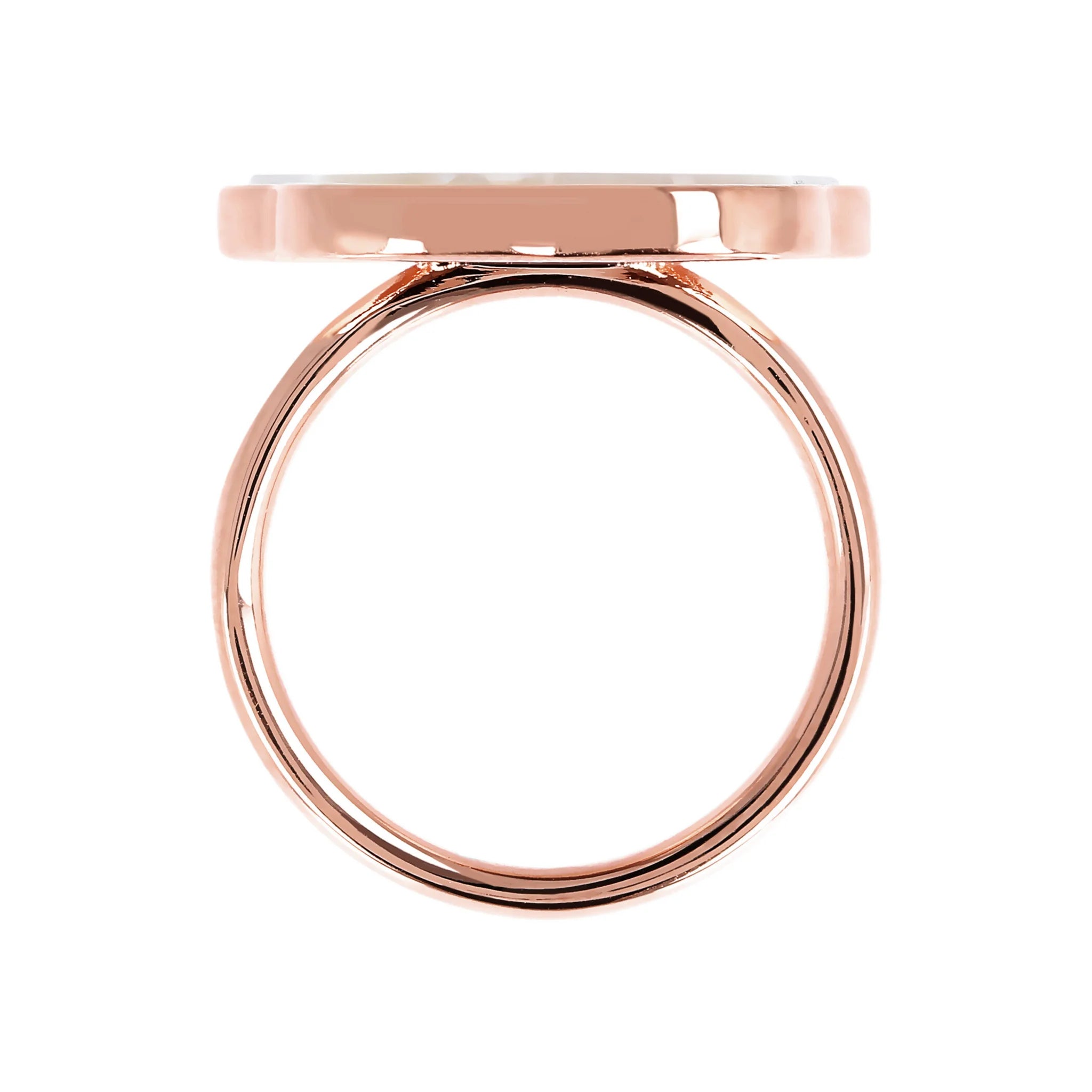 Bague cocktail Bronzallure en alliage Golden Rosé, doré à l'or fin 18ct, agrémentée d'une pierre naturelle plate (19 mm) en forme de fleur.