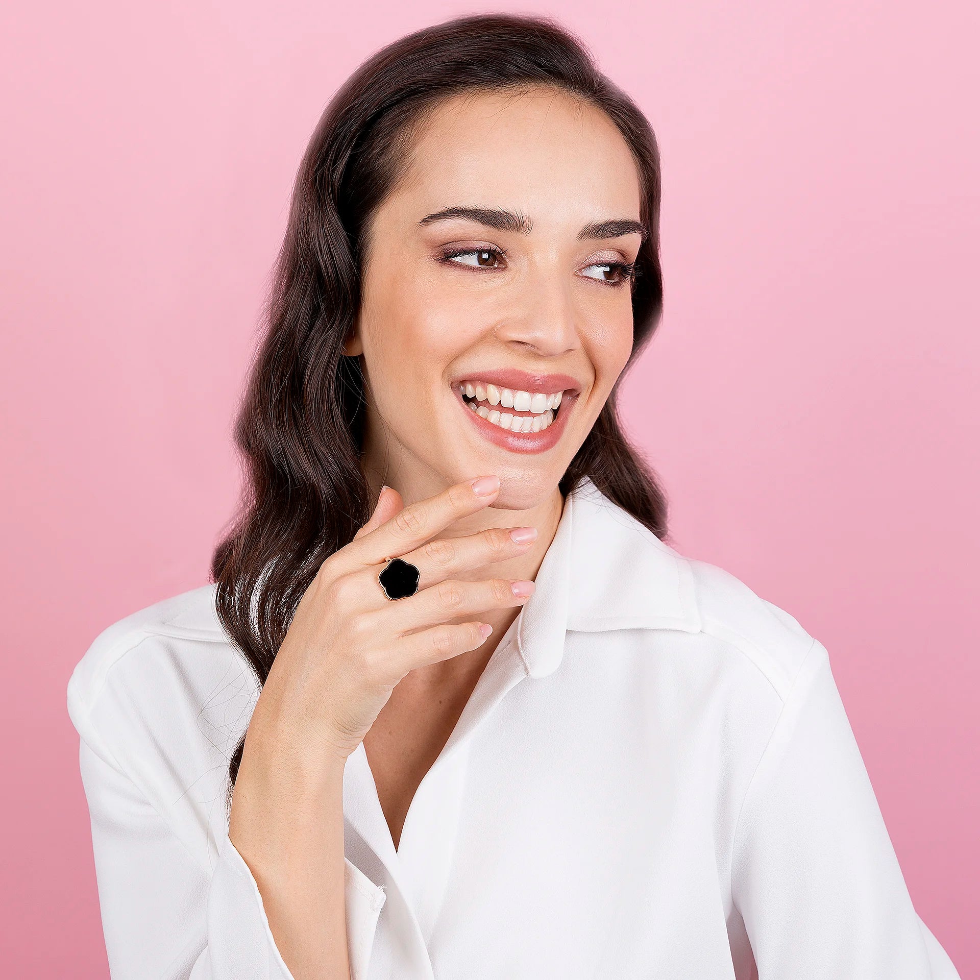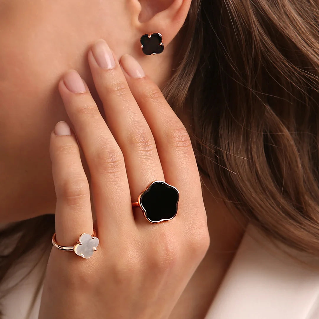 - Évite les produits chimiques, y compris les savons, les produits ménagers et les produits de jardin, et veille à ne pas les exposer excessivement à des environnements hostiles pouvant endommager, au fil du temps, à la fois le plaquage en or rose et les pierres précieuses.