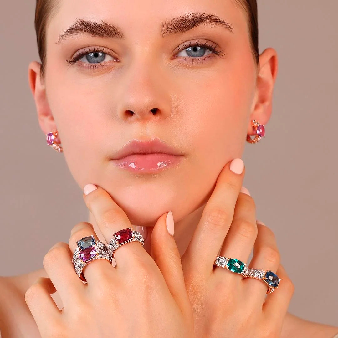 - Évite les produits chimiques, y compris les savons, les produits ménagers et les produits de jardin, et veille à ne pas les exposer excessivement à des environnements hostiles pouvant endommager, au fil du temps, à la fois le plaquage en or rose et les pierres précieuses.