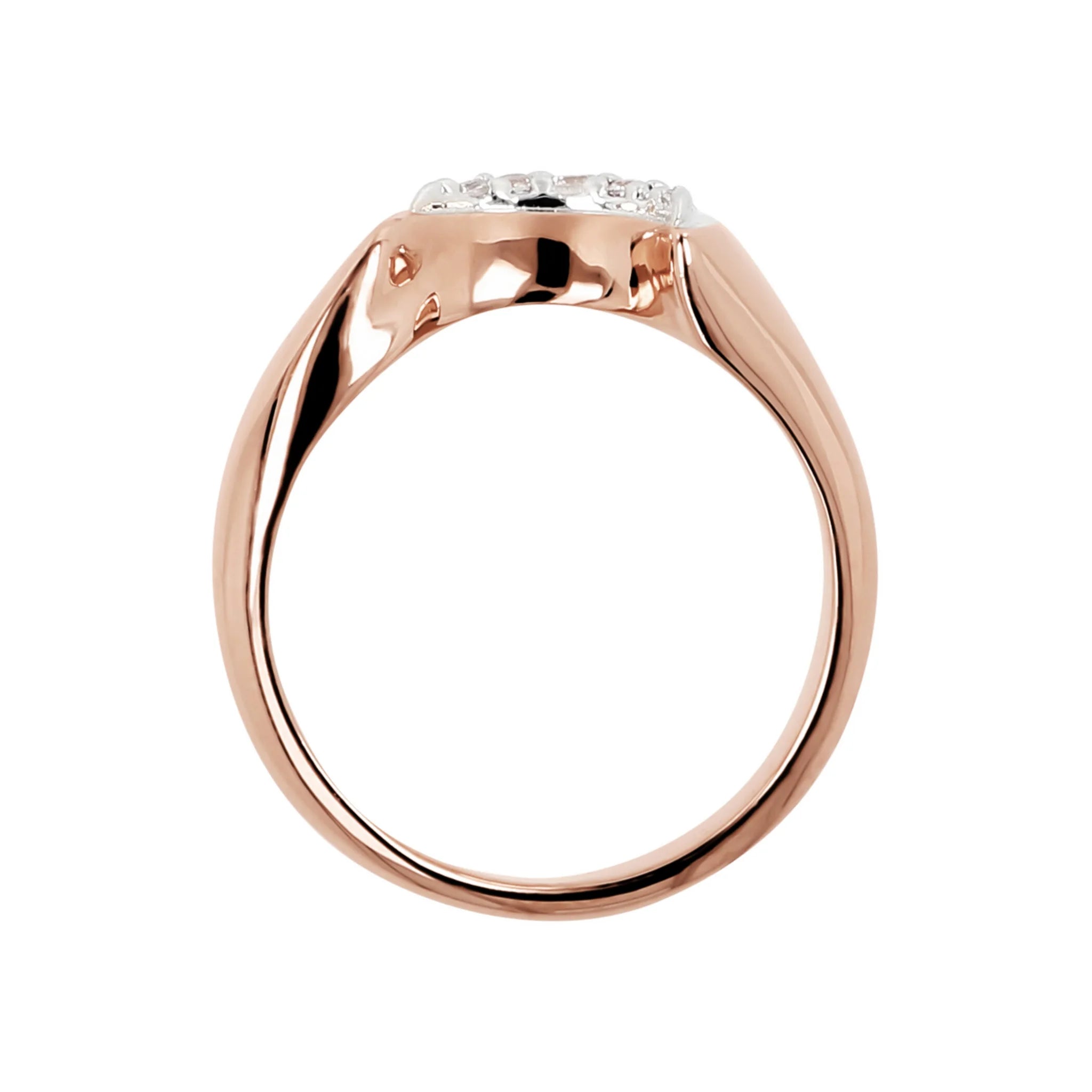 Bague jonc Bronzallure en alliage Golden Rosé, doré à l'or fin 18ct, ornée d'une lune centrale pavée en zircone cubique blanche. Création élégante, avec un design parfait pour faire briller votre look.