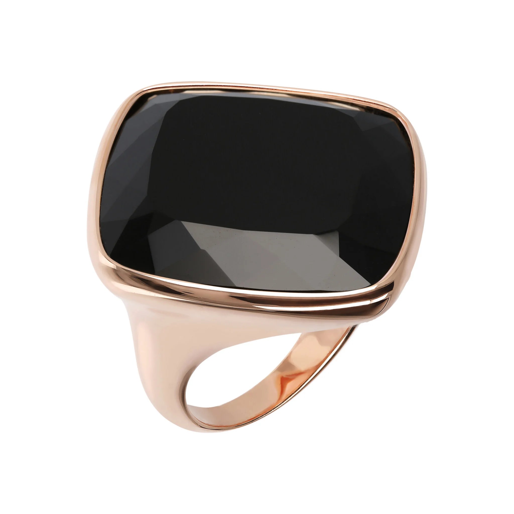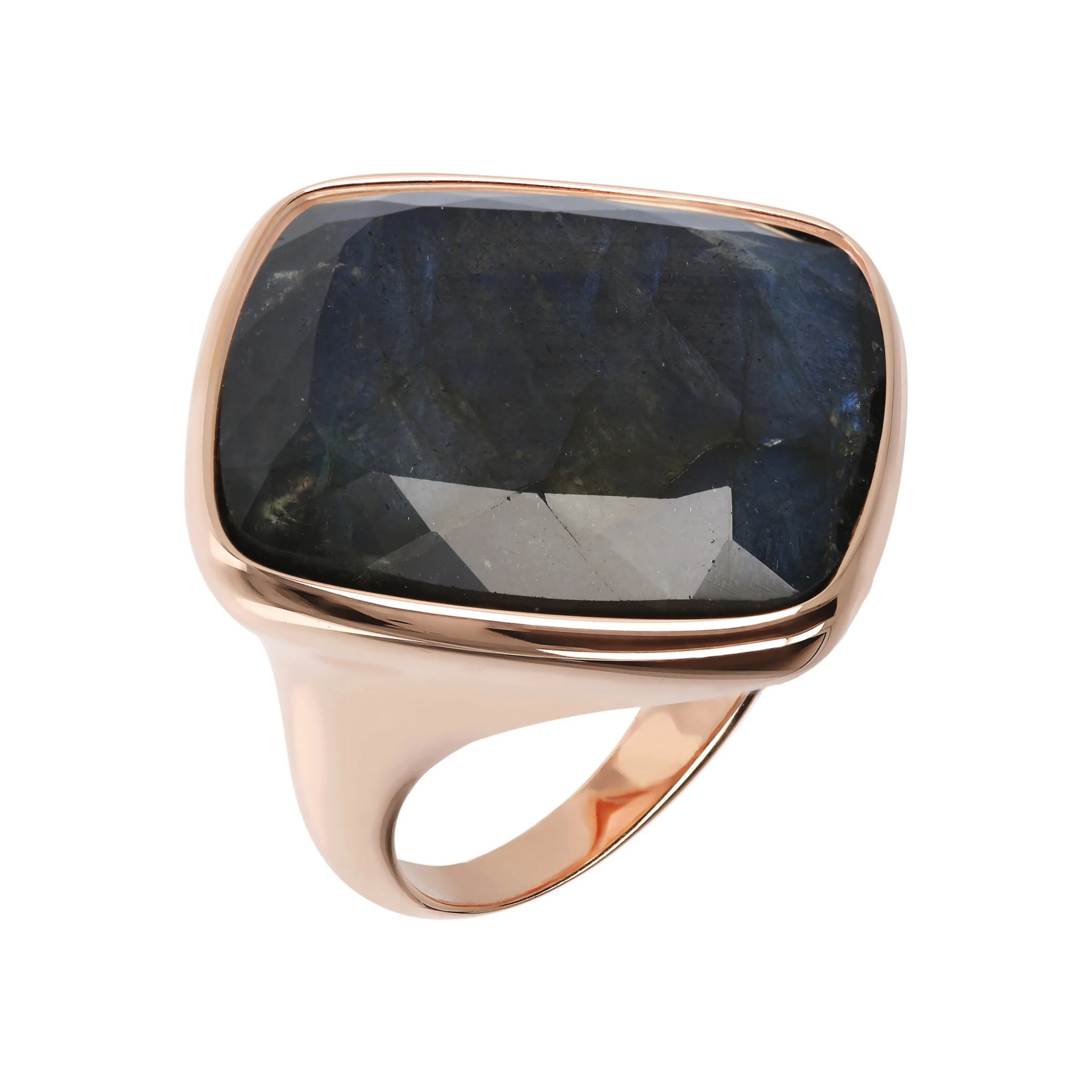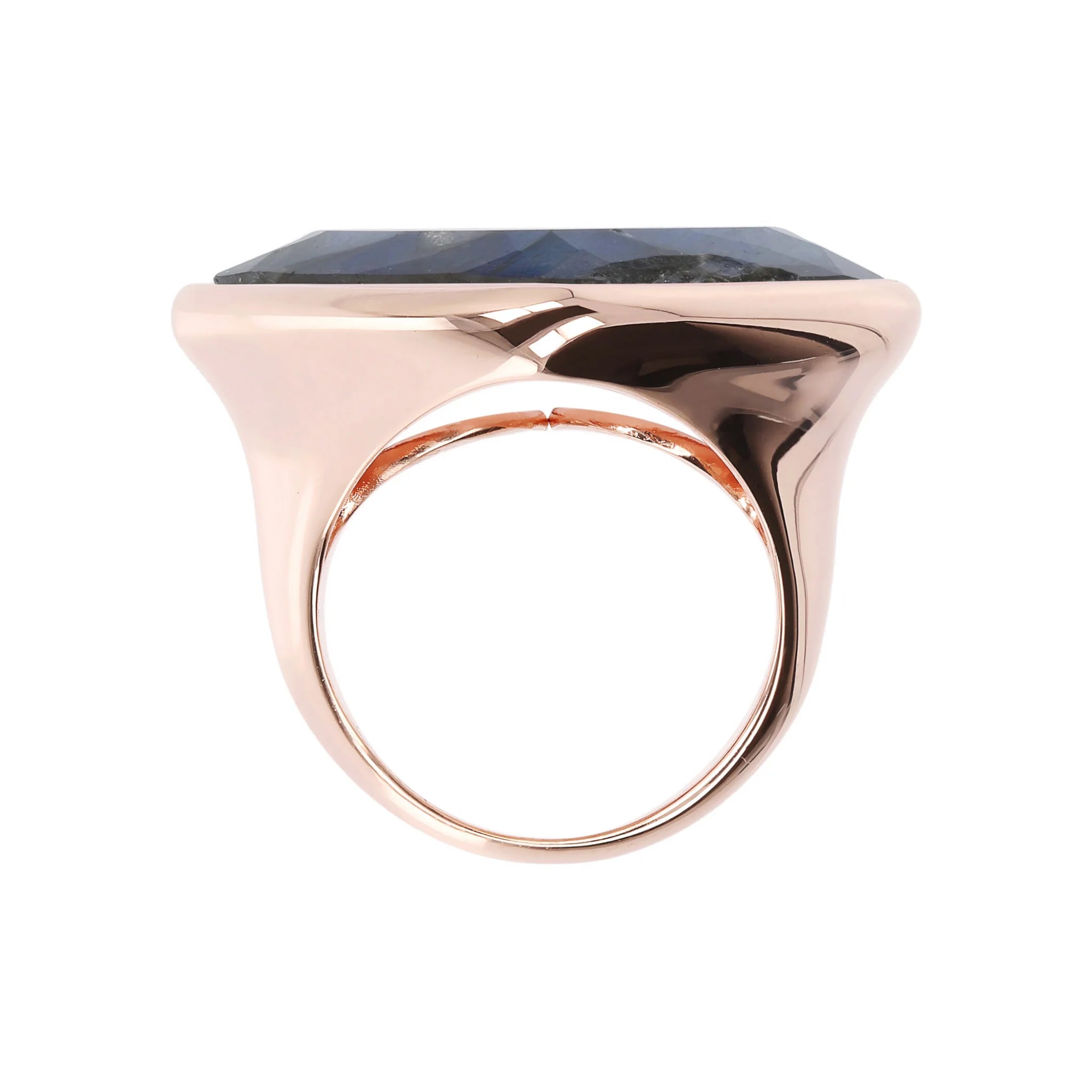 Bague cocktail Bronzallure en alliage Golden Rosé, doré à l'or fin 18ct, agrémentée d'une pierre naturelle rectangulaire facettée (1,9 cm de diamètre). Création élégante, avec un design parfait pour faire briller votre look.