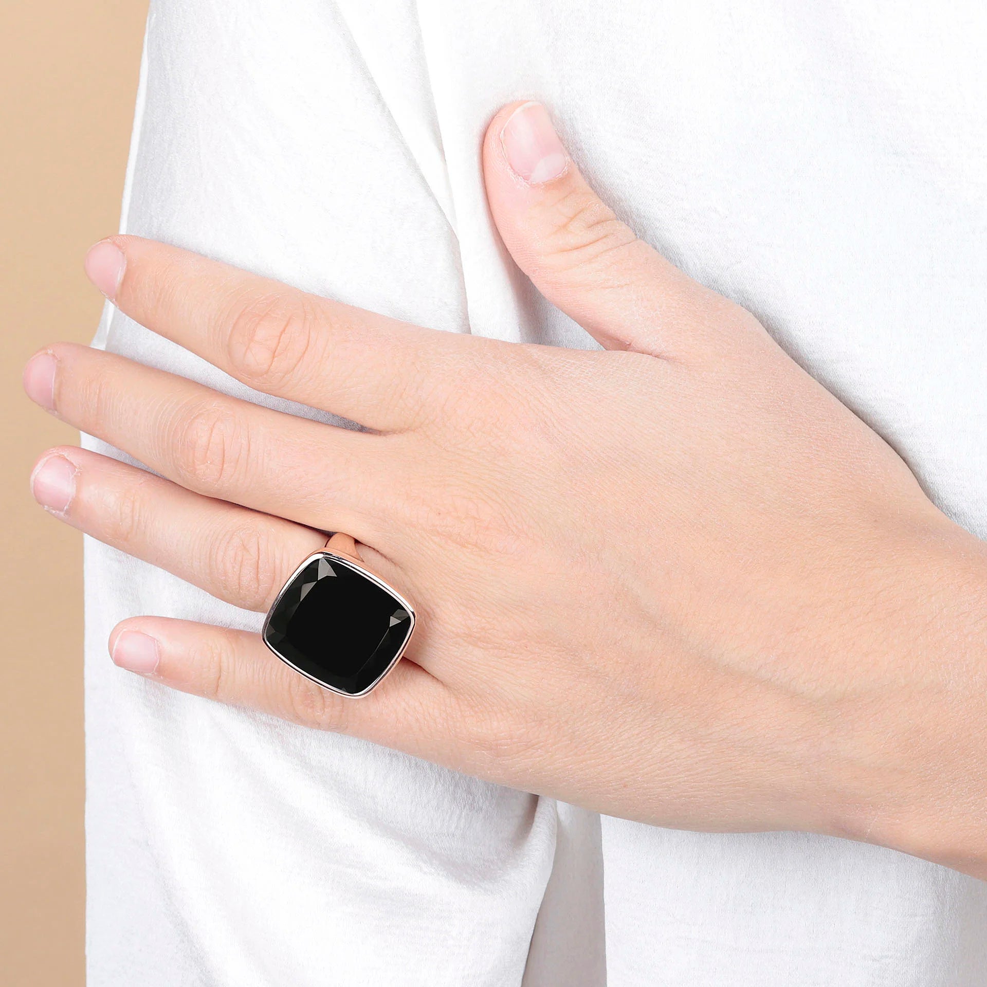 - Évite les produits chimiques, y compris les savons, les produits ménagers et les produits de jardin, et veille à ne pas les exposer excessivement à des environnements hostiles pouvant endommager, au fil du temps, à la fois le plaquage en or rose et les pierres précieuses.