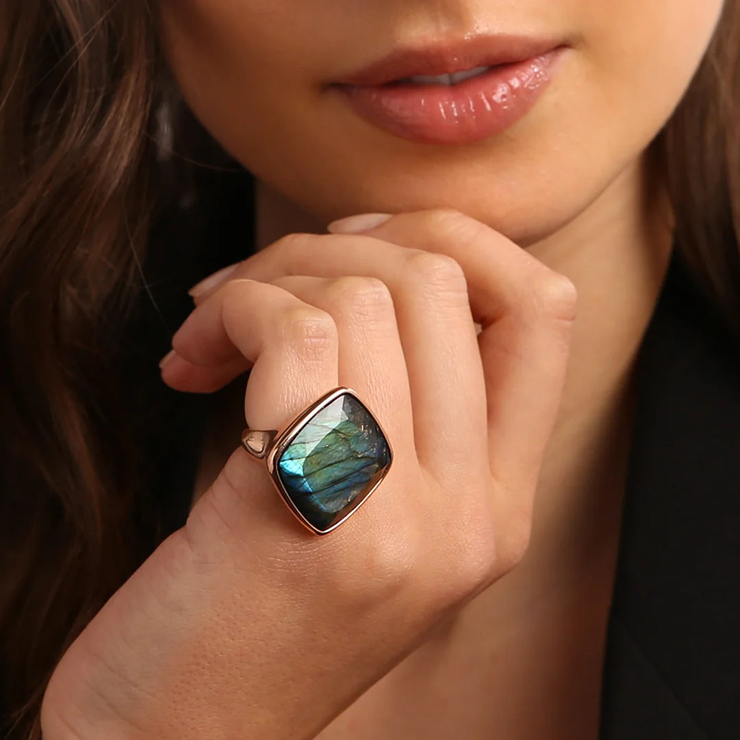 Bague Cocktail avec Pierre Naturelle Rectangulaire