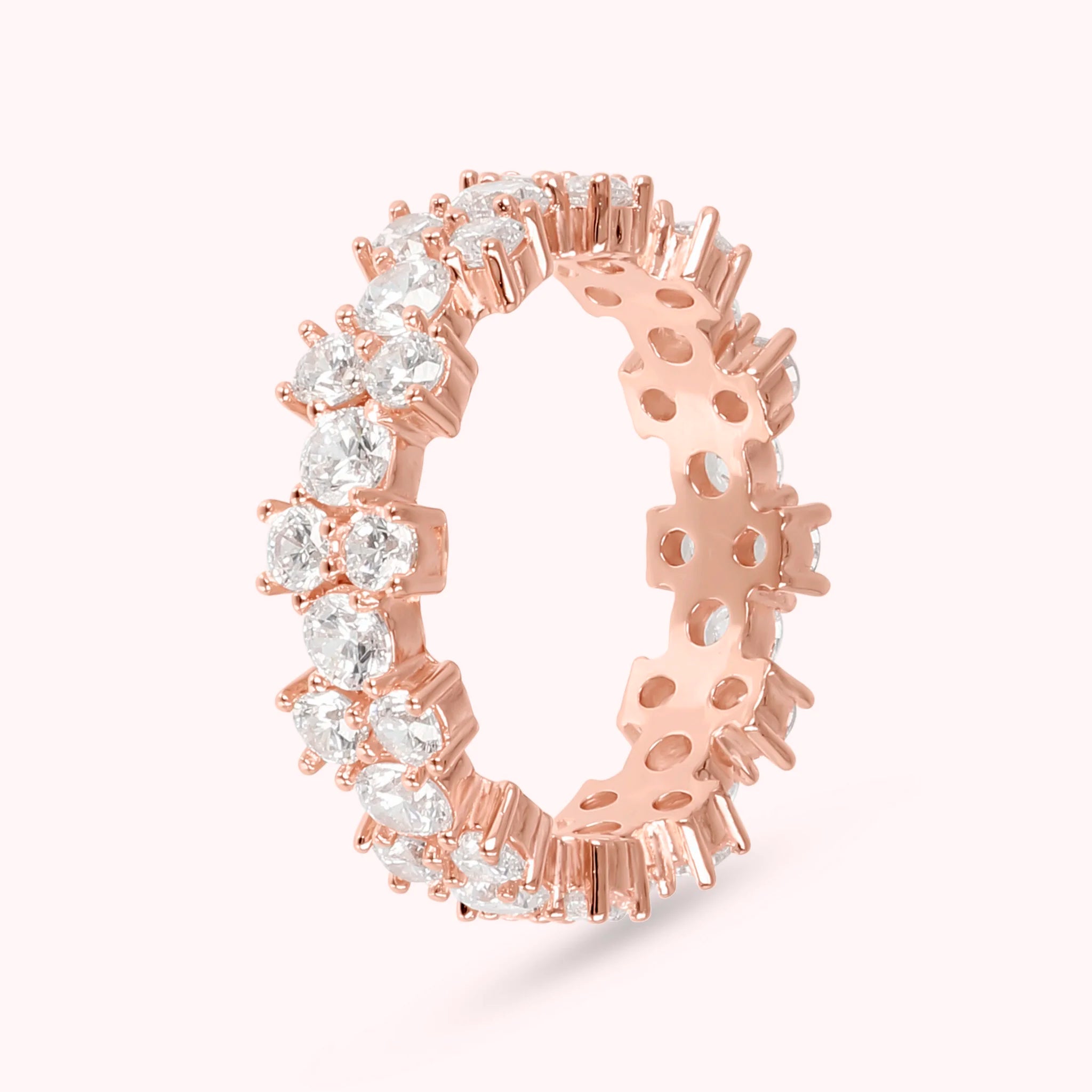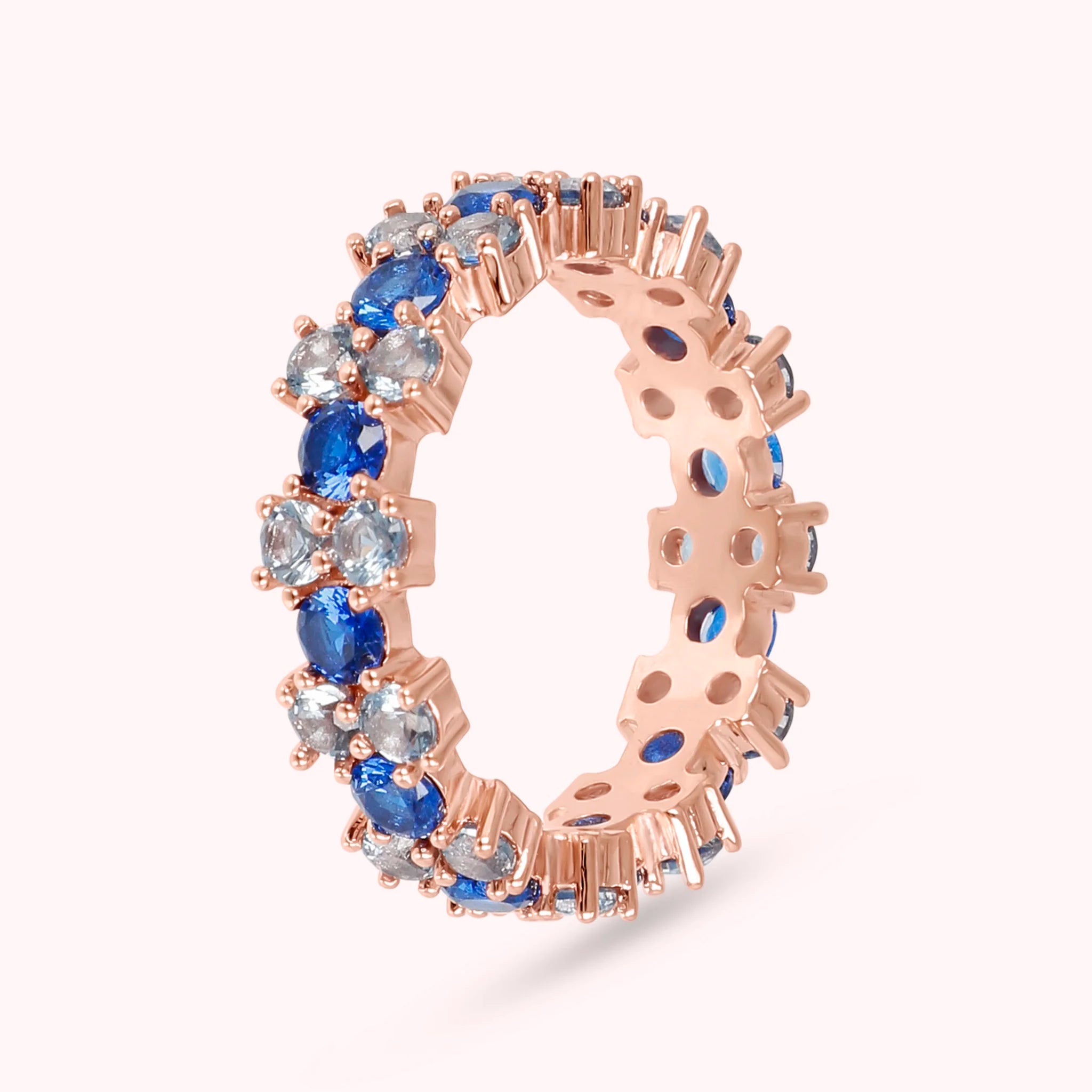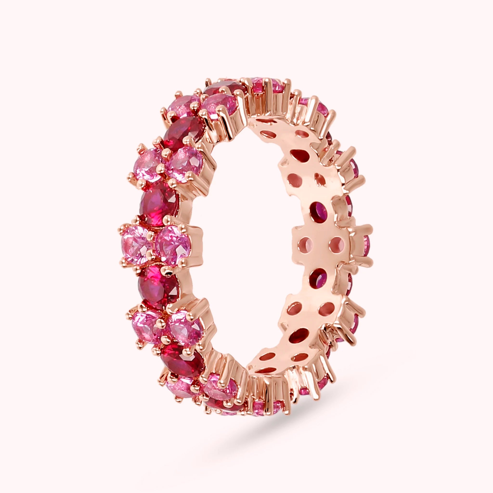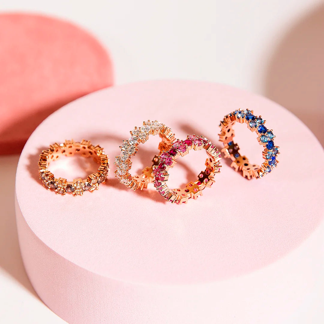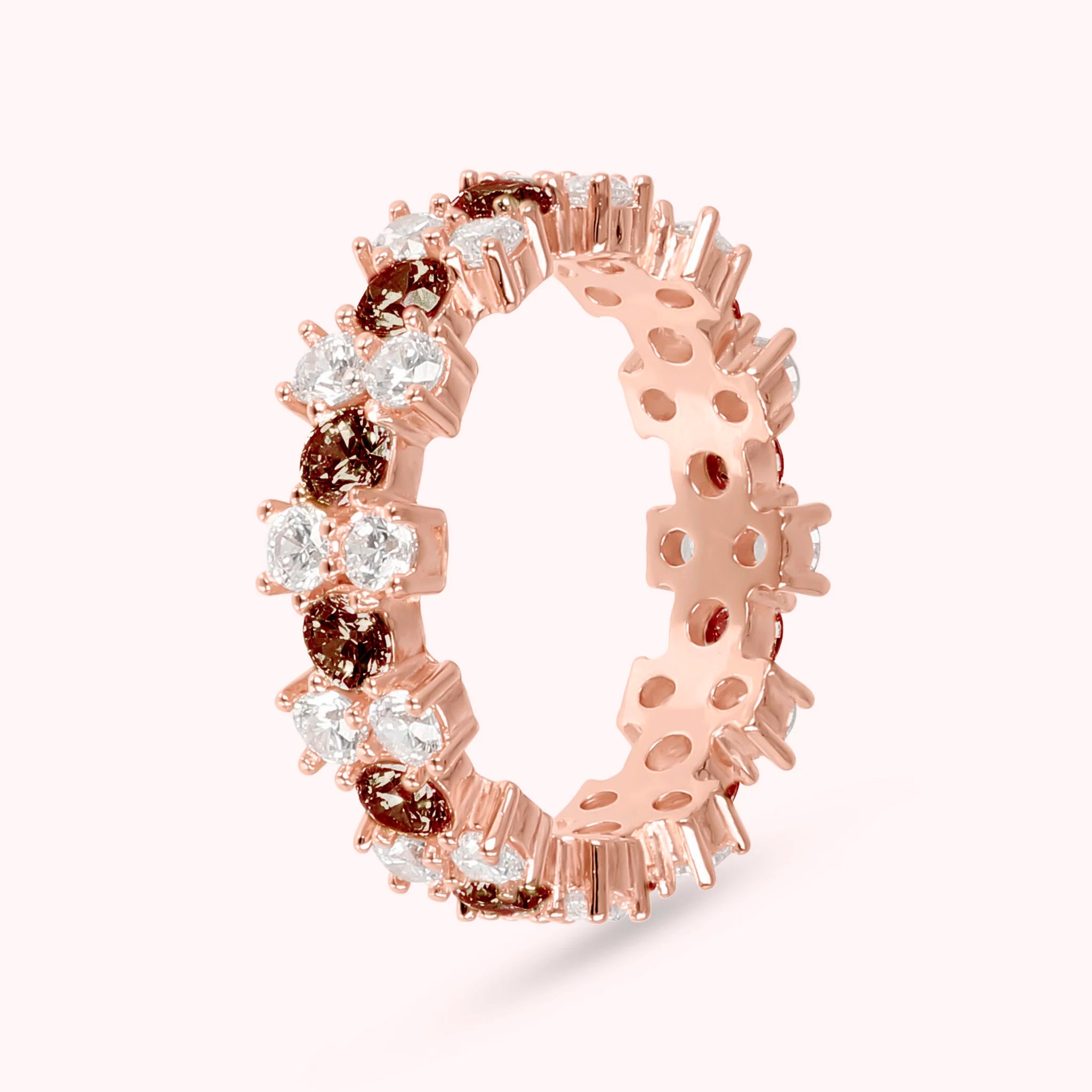 Bague d'éternité bicolore Bronzallure en alliage Golden Rosé doré à l'or fin 18ct entièrement ornée de zircons cubiques, qualité lumineuse, aux couleurs joyeuses et éclatantes, avec une nuance créée à travers deux couleurs de pierres différentes pour créer un effet dégradé. Création de style, parfaite pour être portée en toute occasion.