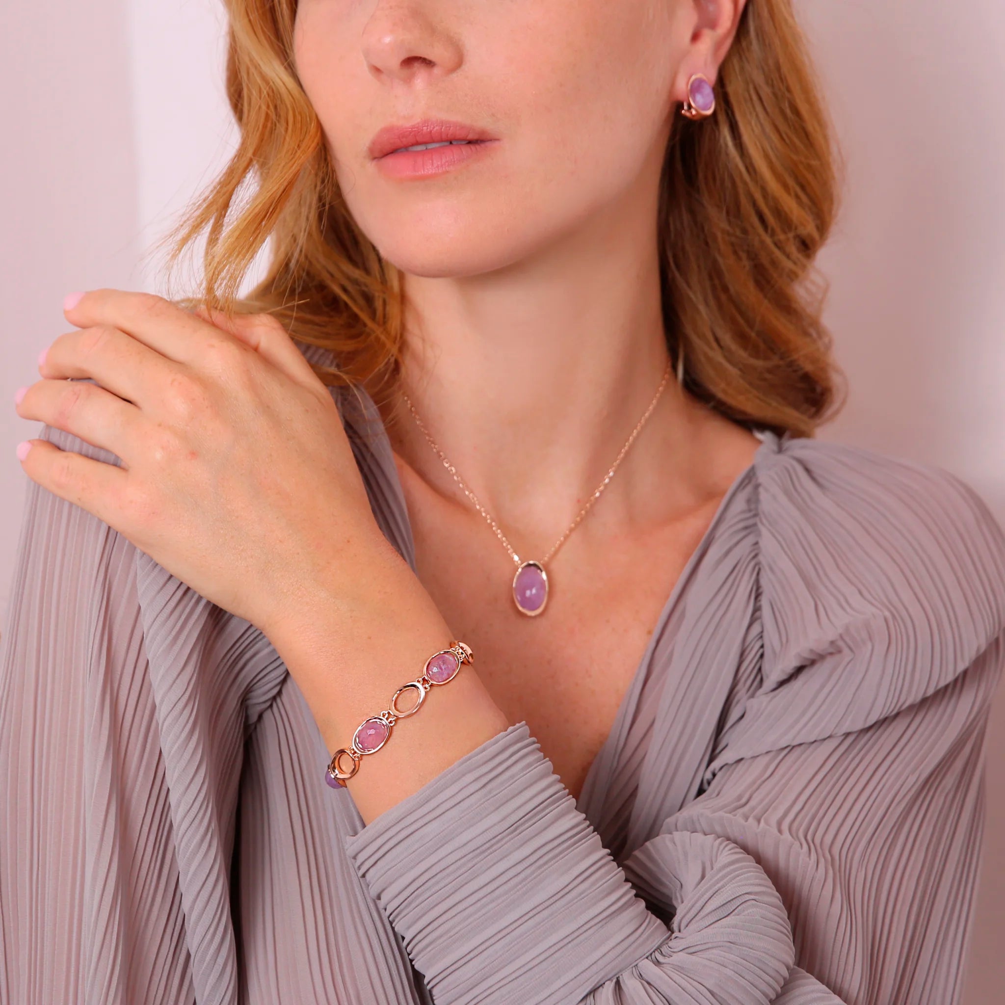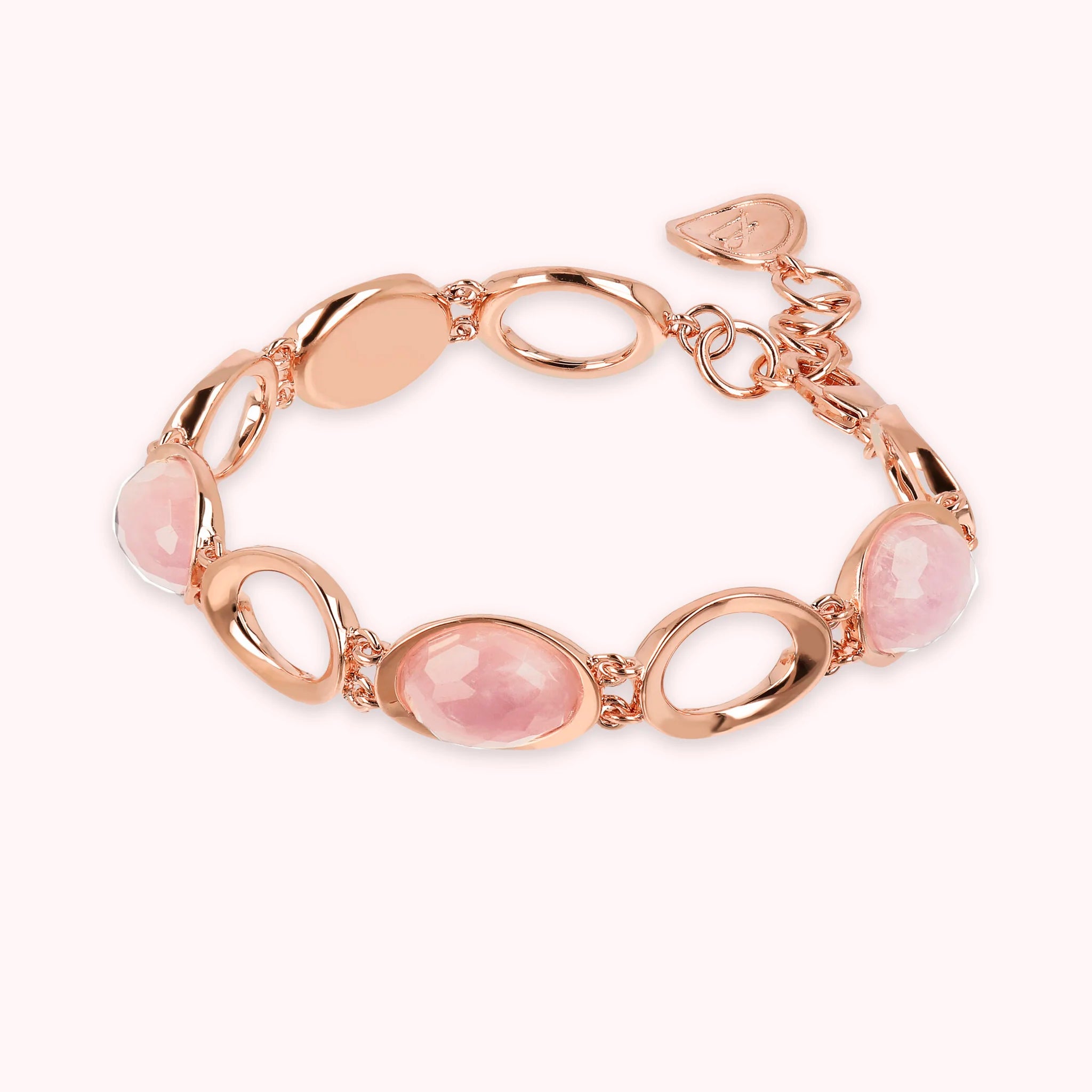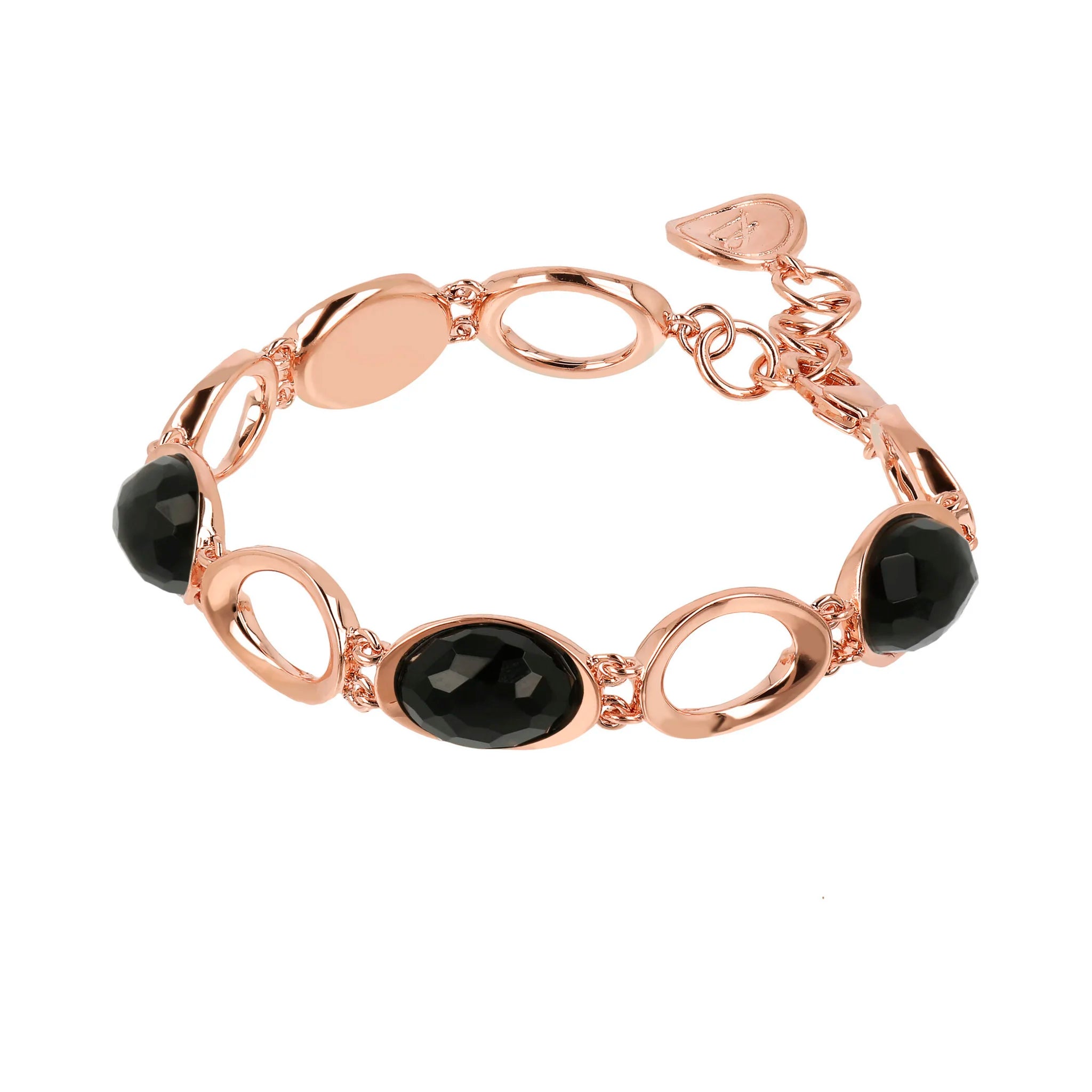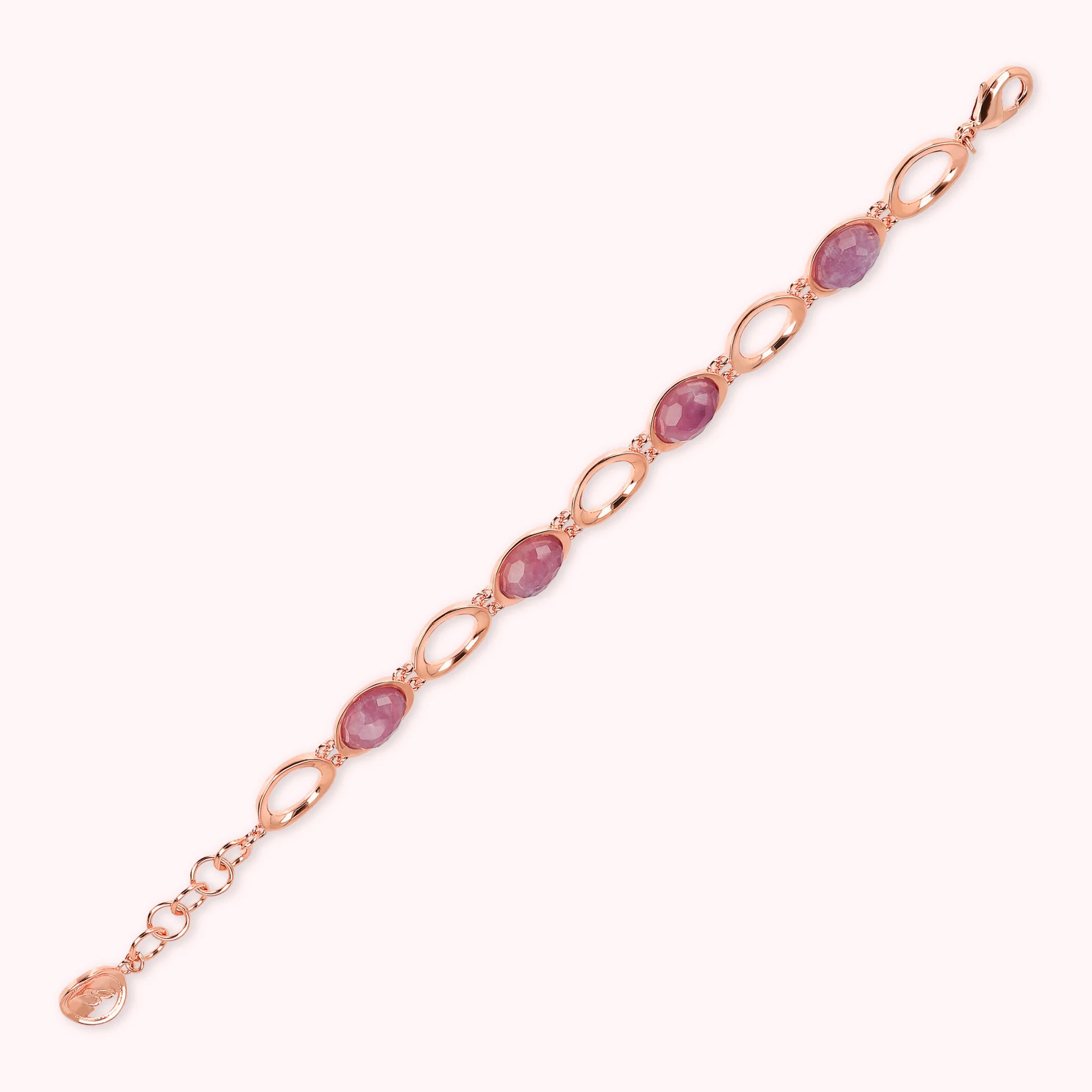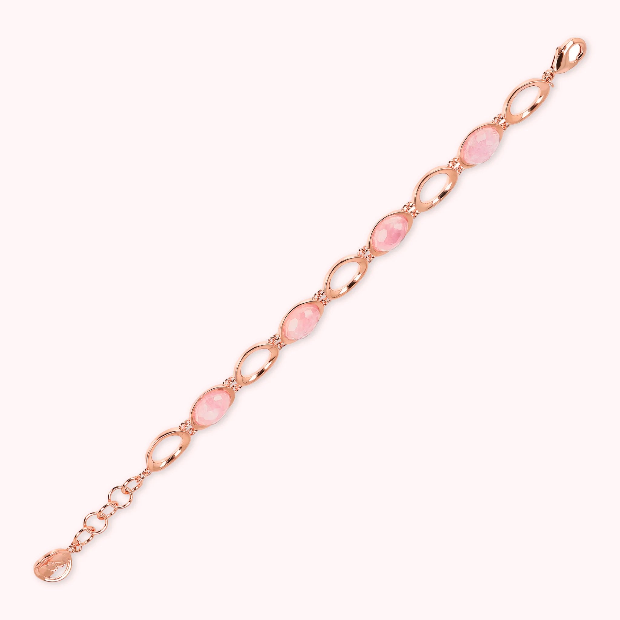 Bracelet Bronzallure en alliage Golden Rosé, doré à l'or fin 18ct, avec maillons ovales perforés, alternant avec des maillons avec pierre naturelle de forme ovale (12,5x9 mm) et surface facettée ; fermoir mousqueton avec rallonge.