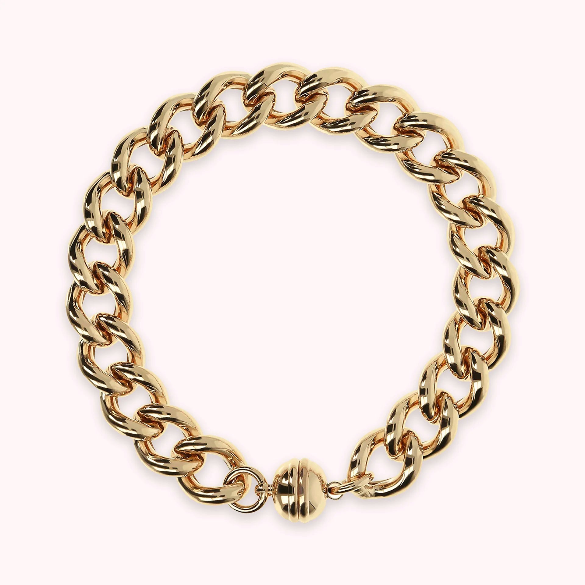 Bracelet Bronzallure réalisé sur une base Golden Rosé, doré à l'or fin 18ct, agrémenté d'une épaisse chaîne pavée taille diamant ; fermeture magnétique.