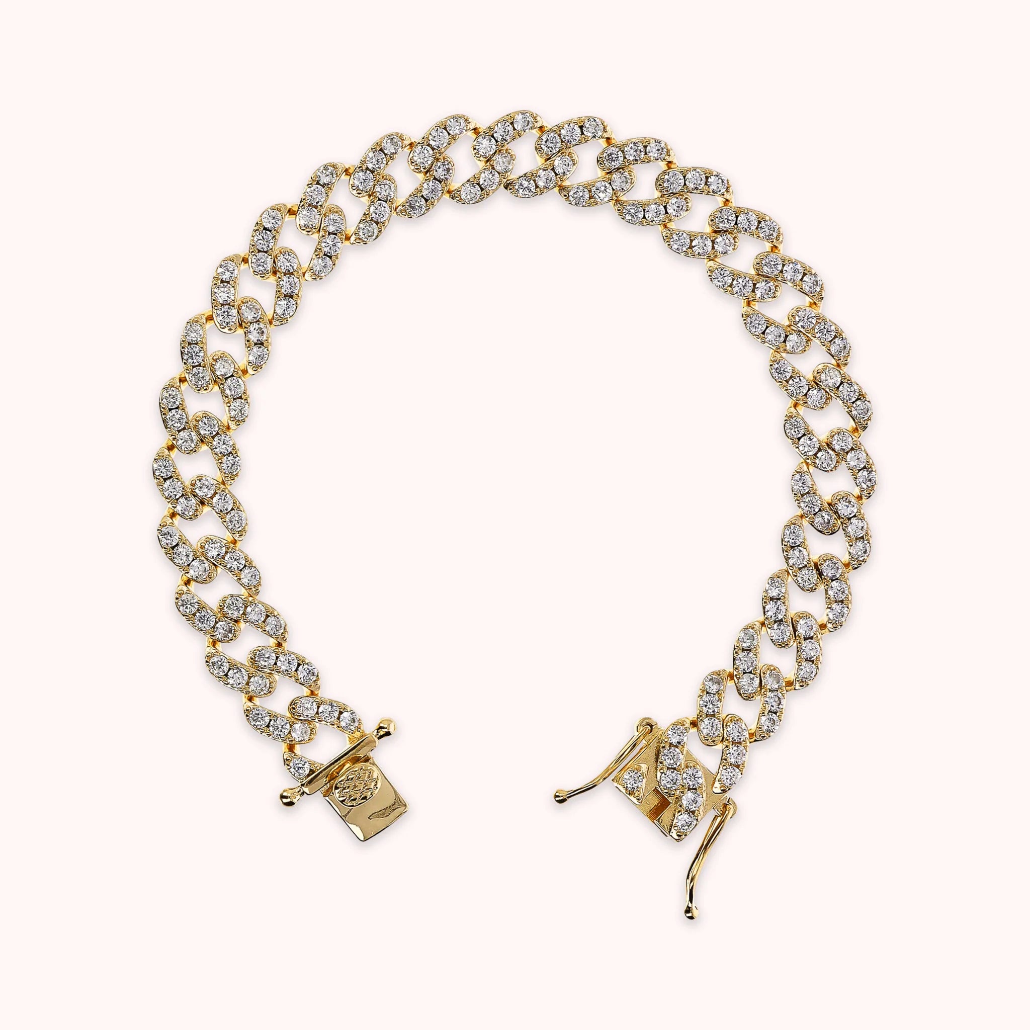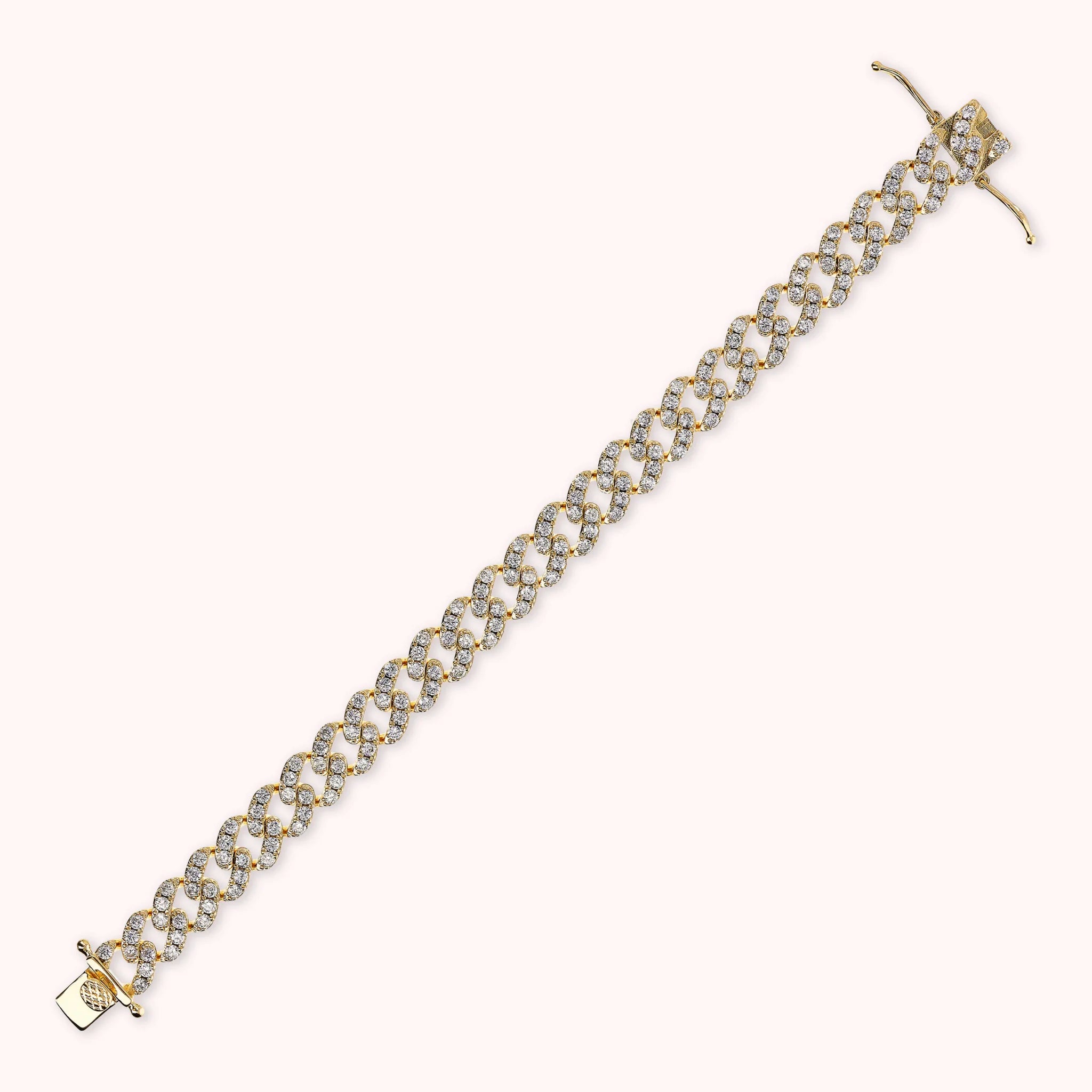 Bracelet chaîne gourmette carrée dorée avec pavé de zircones cubiques