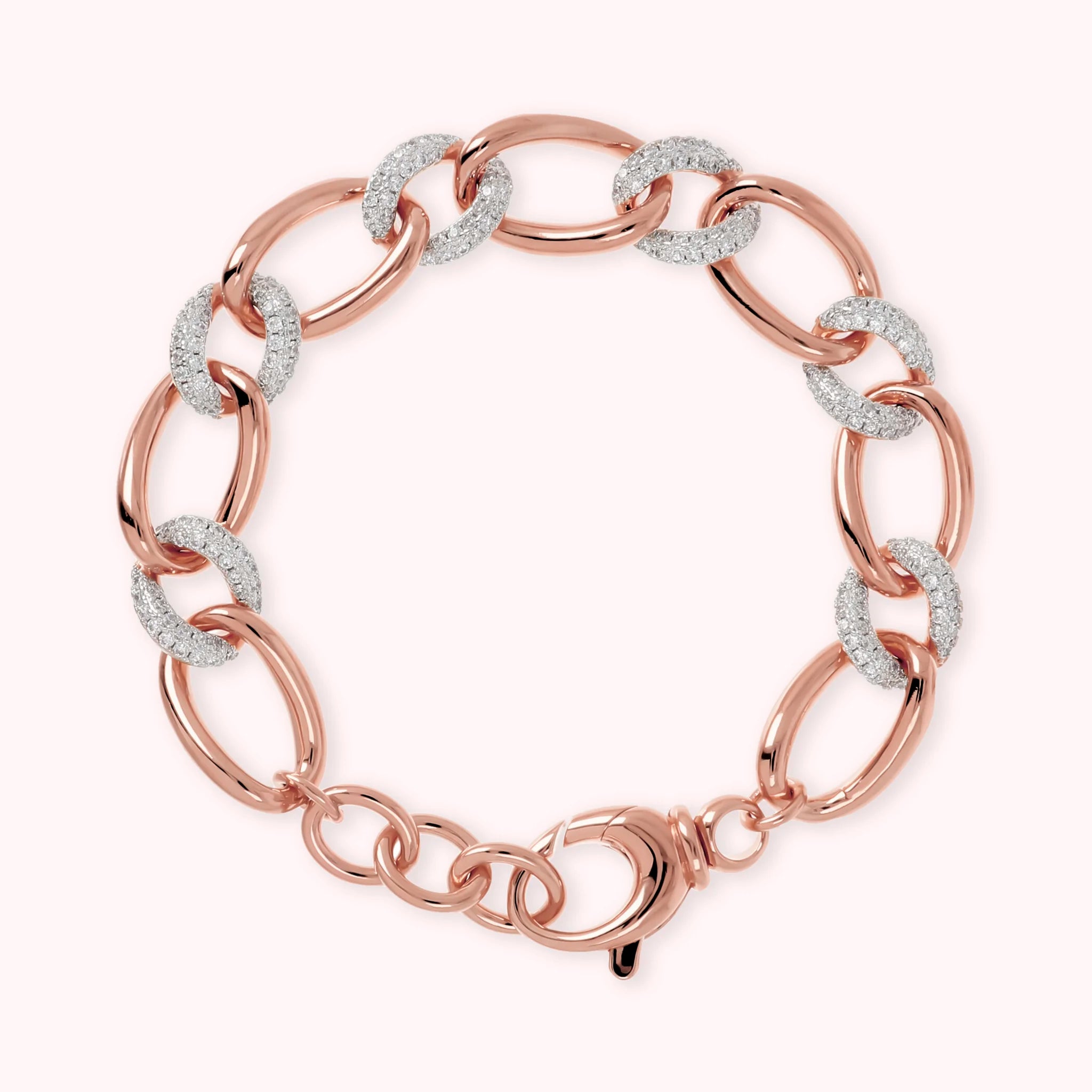 Bracelet à maillons ovales et éléments pavés en oxyde de zirconium