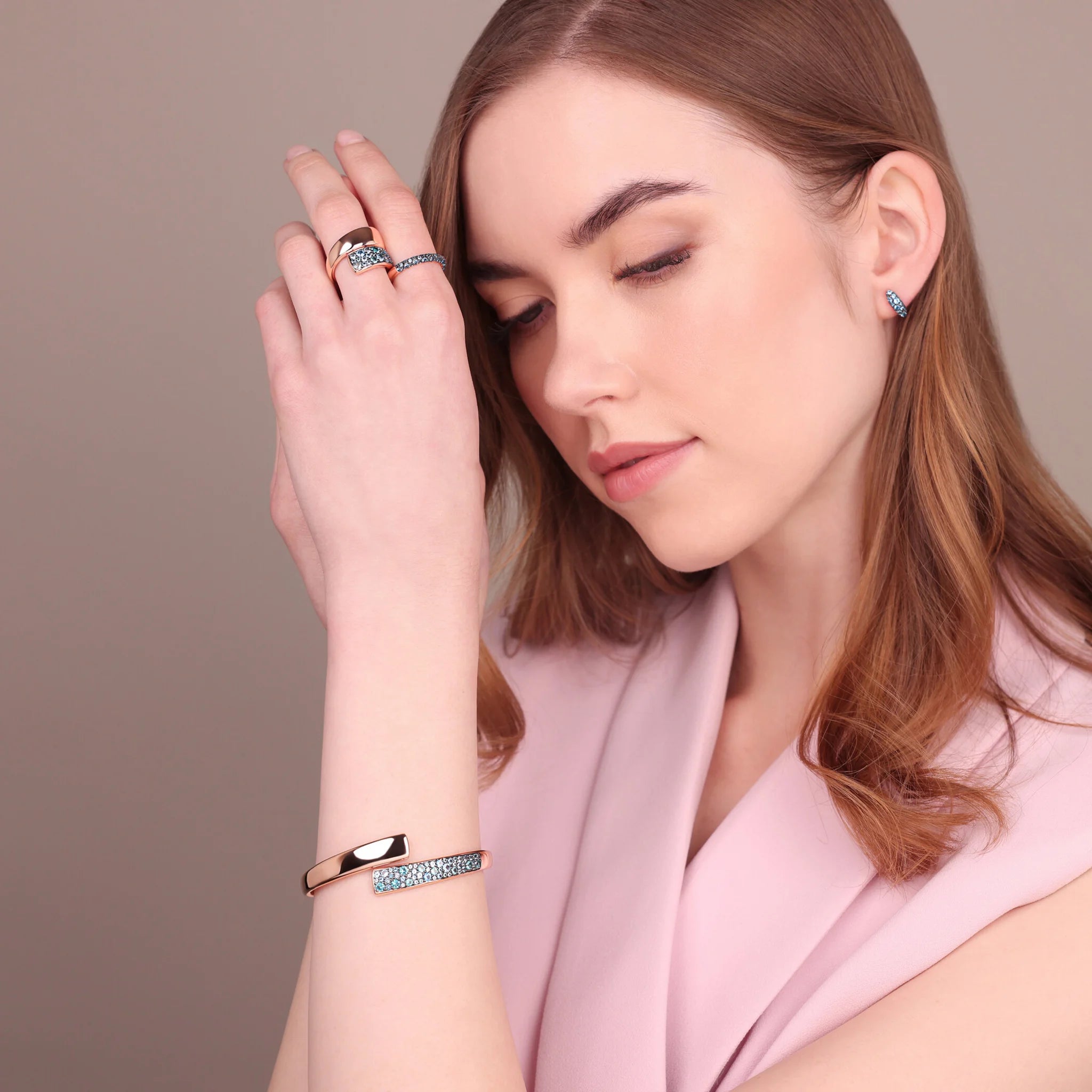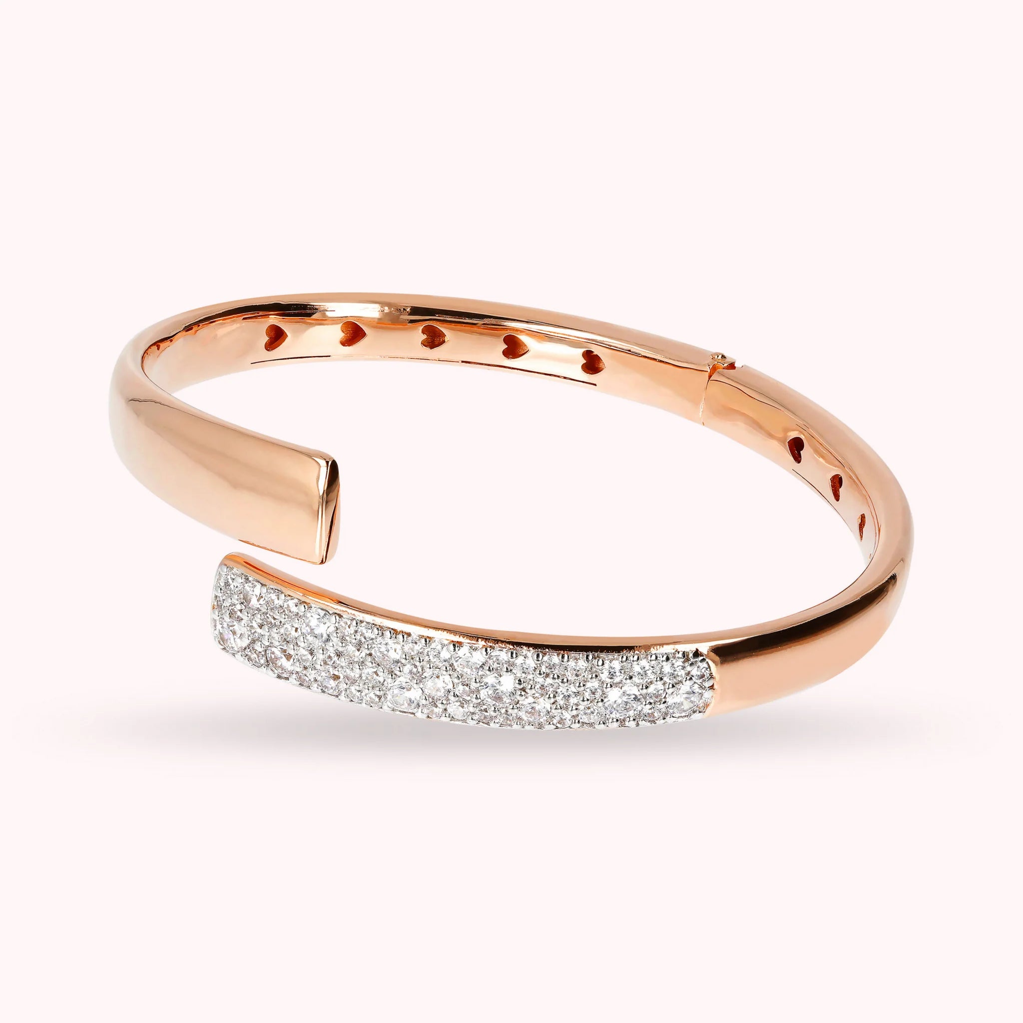 Bracelet rigide Bronzallure contrarié réalisé sur une base Golden Rosé, doré à l'or fin 18ct, agrémenté d'oxydes de zirconium cubiques, qualité lumineuse, couleur blanche. Création élégante, avec un design parfait pour faire briller votre look.