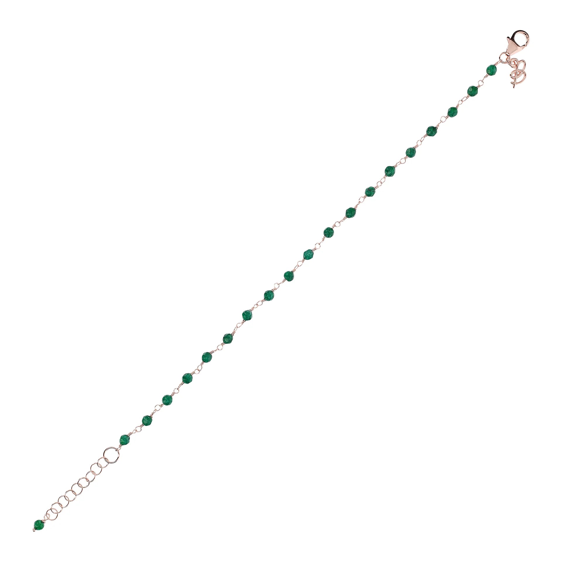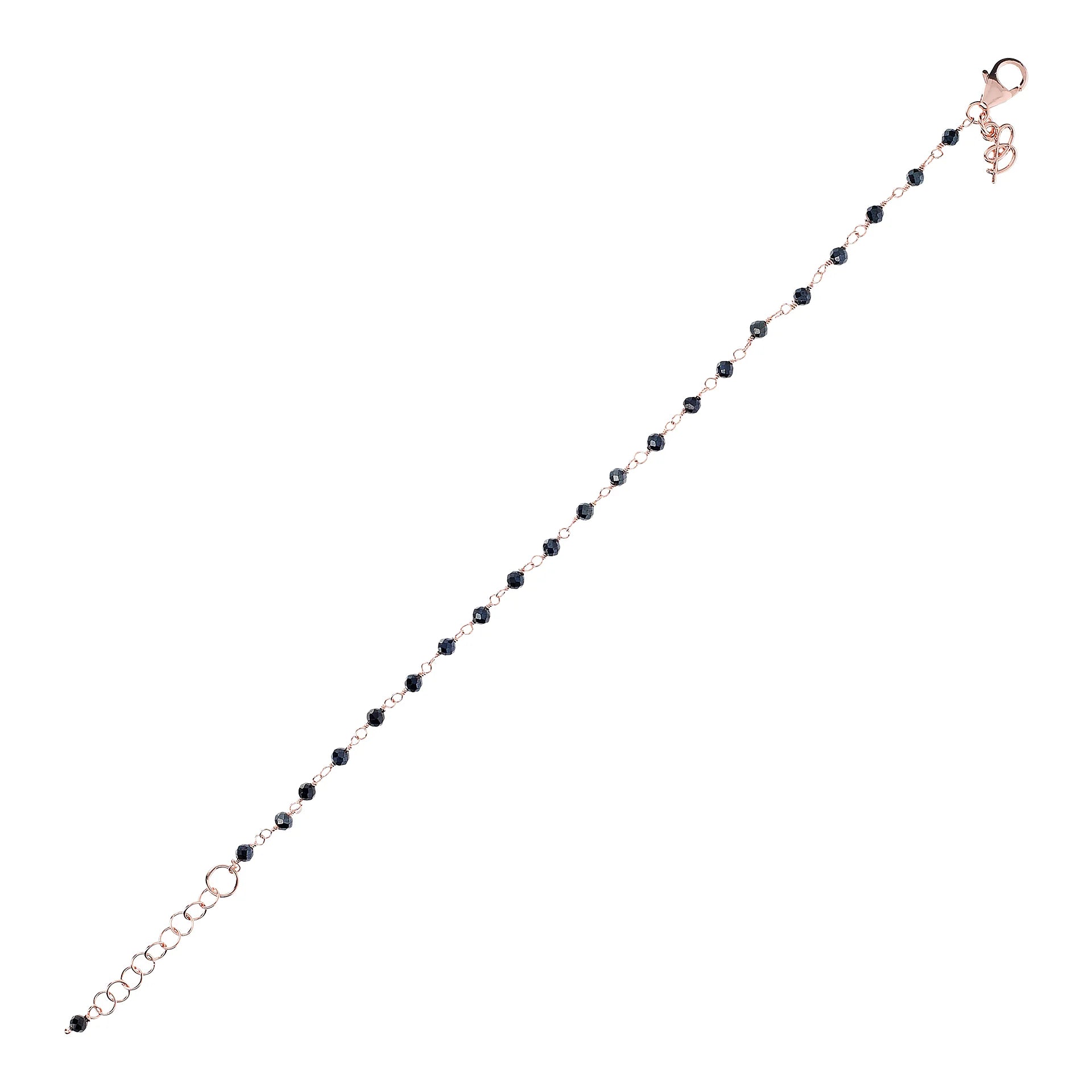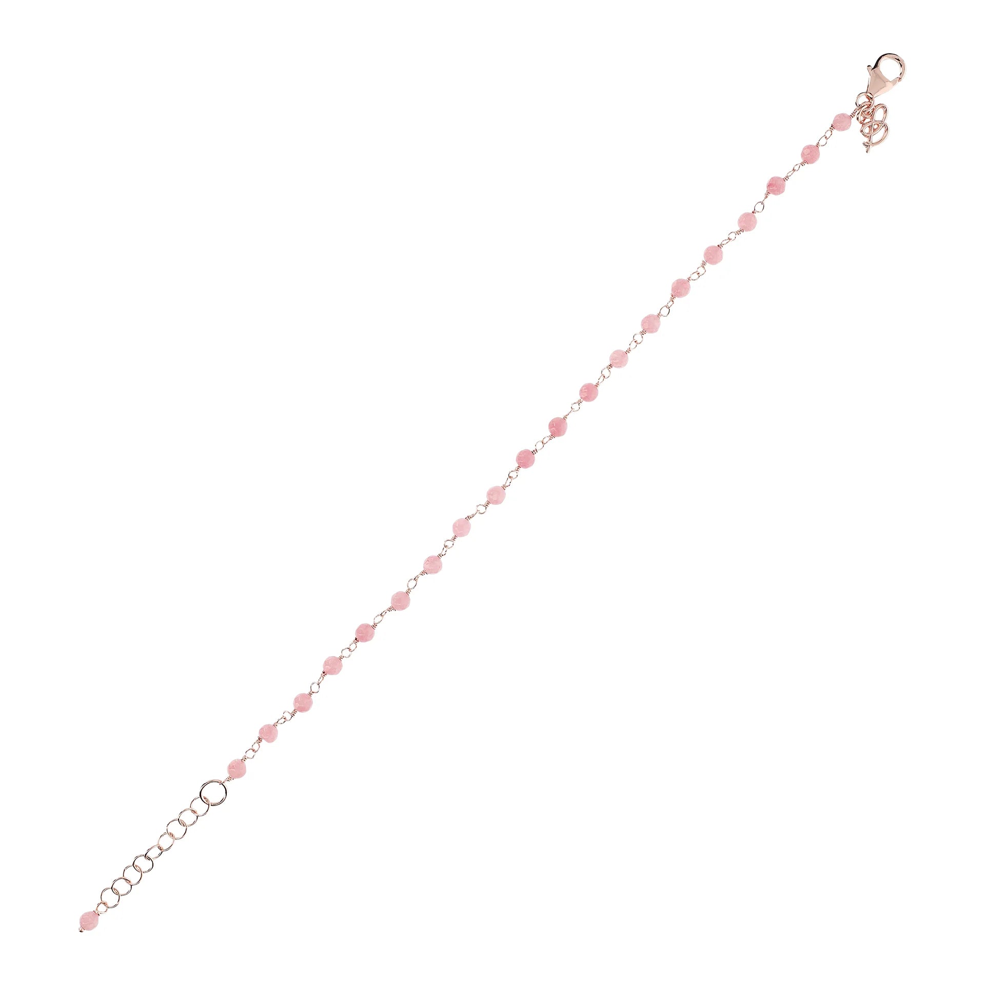 Bracelet chapelet Bronzallure en alliage Golden Rosé, doré à l'or fin 18ct, agrémenté de petites pierres naturelles facettées (3,5x2,6 mm) ; fermoir mousqueton avec rallonge.