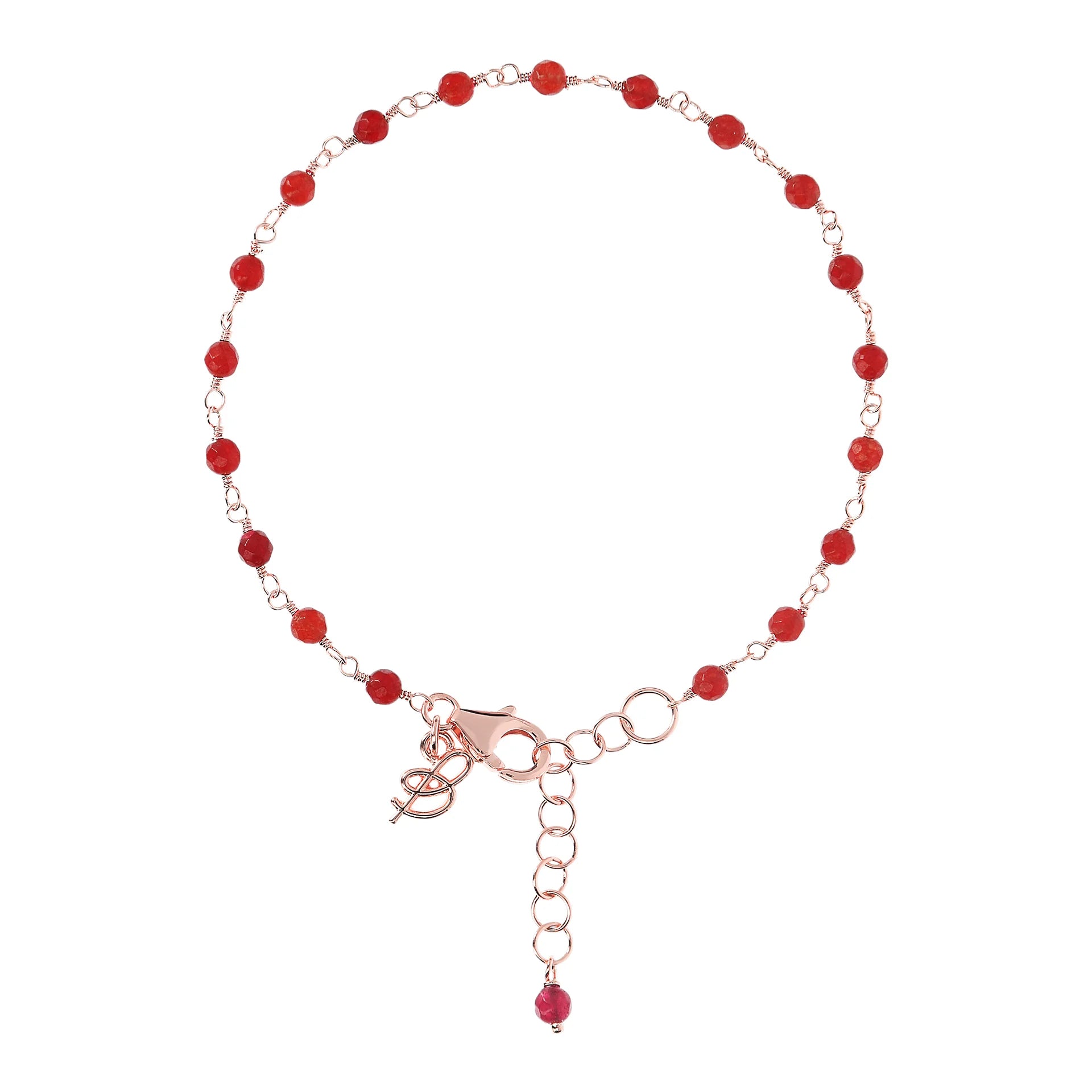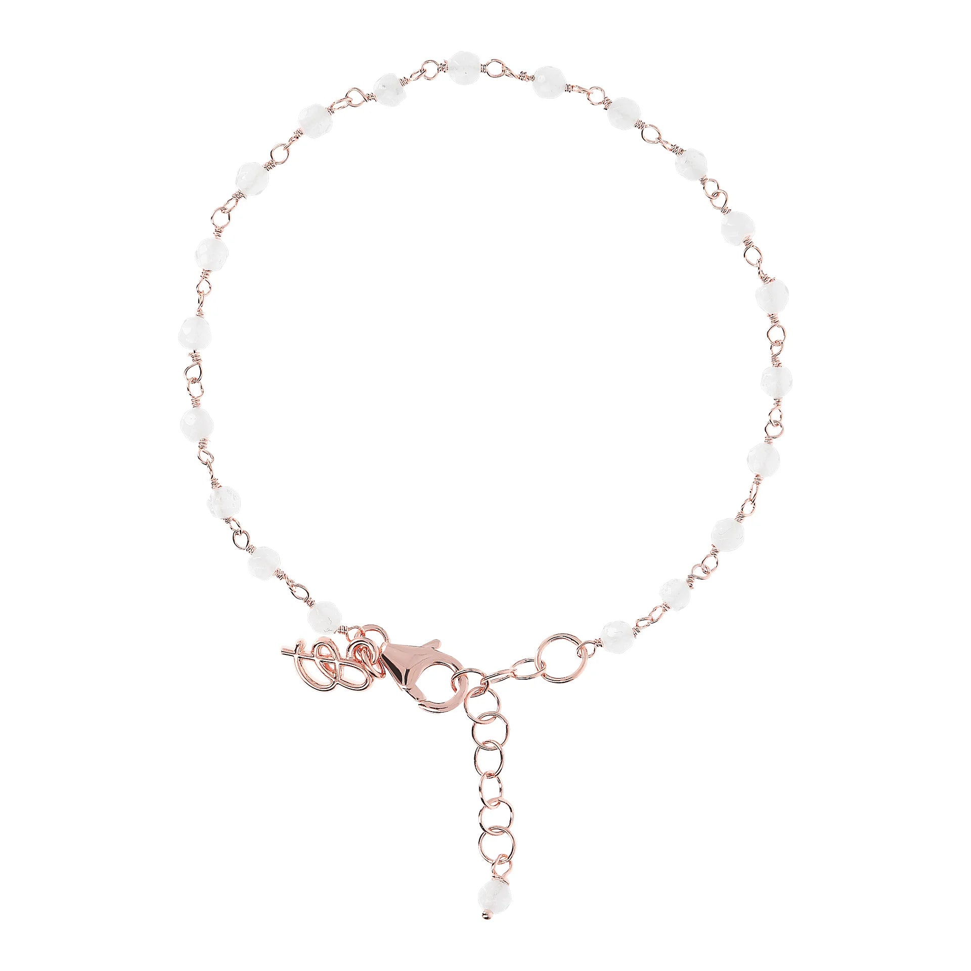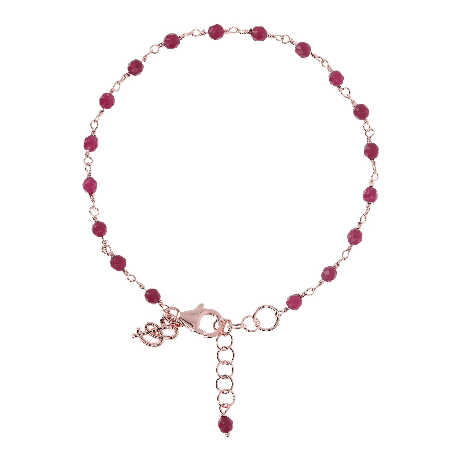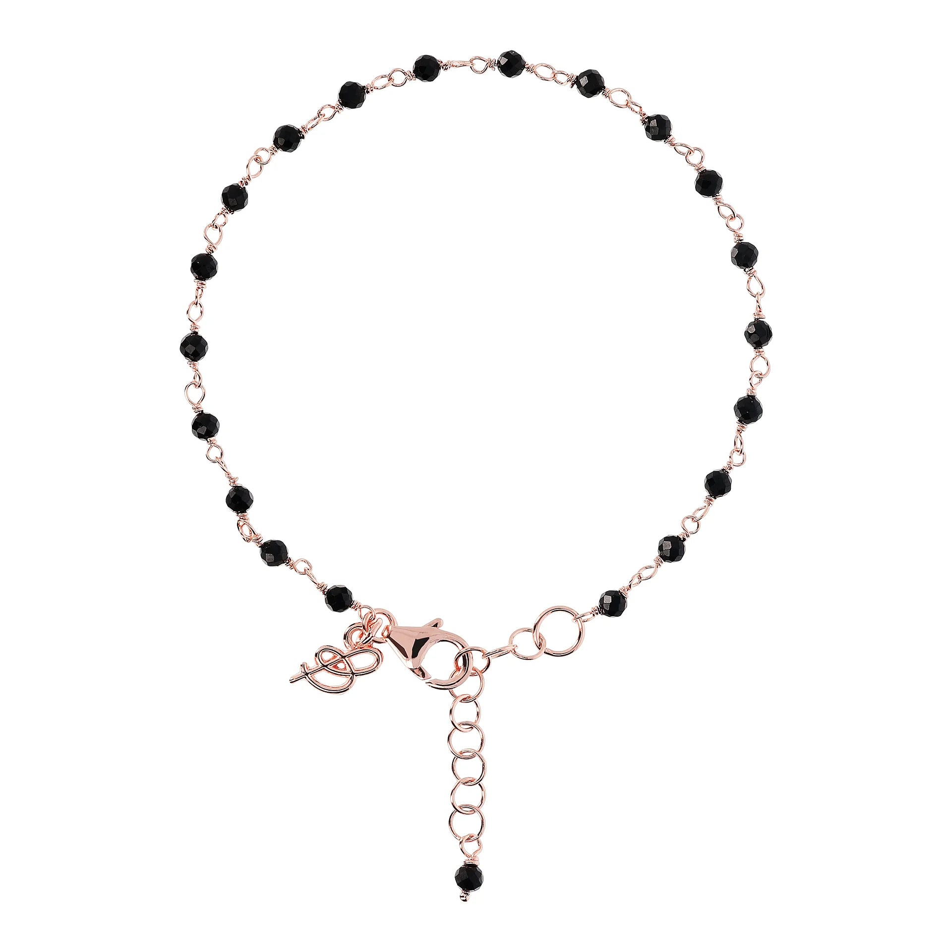 Bracelet chapelet Bronzallure en alliage Golden Rosé, doré à l'or fin 18ct, agrémenté de petites pierres naturelles facettées (3,5x2,6 mm) ; fermoir mousqueton avec rallonge.