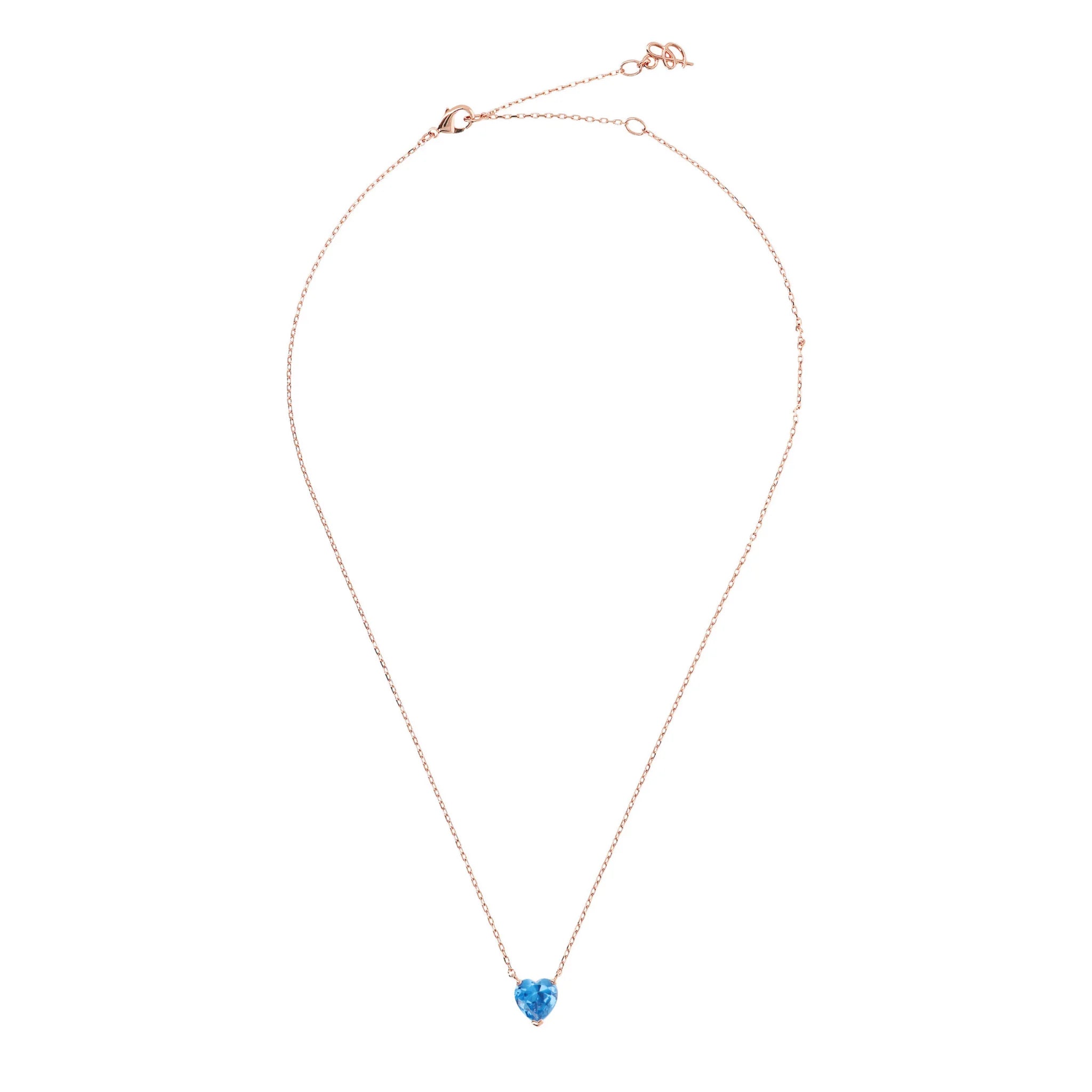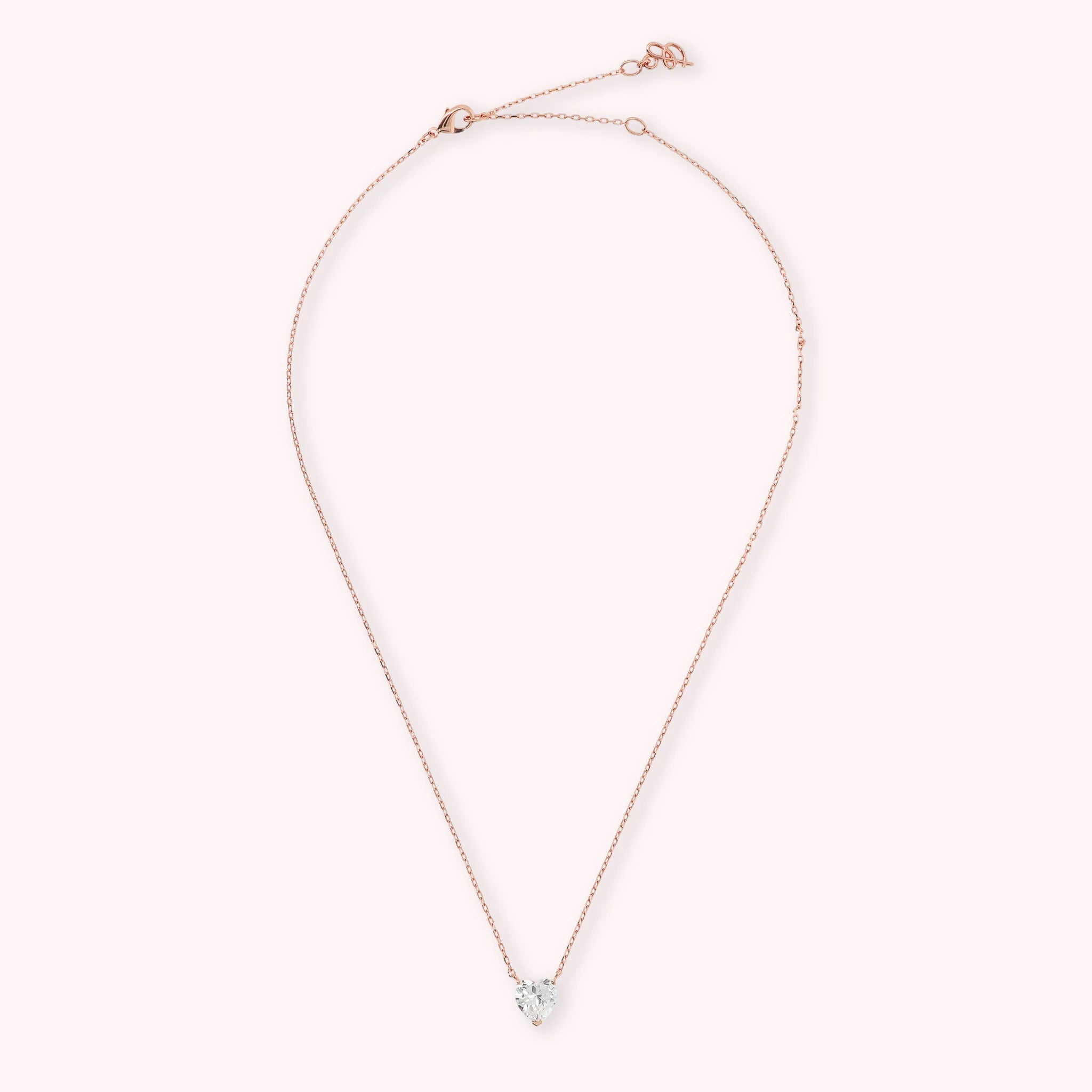 Collier Bronzallure en alliage Golden Rosé, doré à l'or fin 18ct avec chaîne jaseron et pendentif point lumineux coeur en zircon cubique. Fermoir mousqueton et longueur réglable par trois anneaux (41cm / 44cm / 47cm).