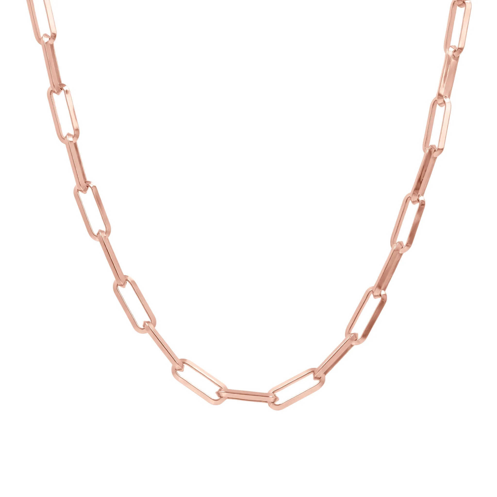 Collier Bronzallure en alliage Golden Rosé, doré à l'or fin 18ct avec chaîne forçat avec maillon allongé en trombone; Fermoir à homard.