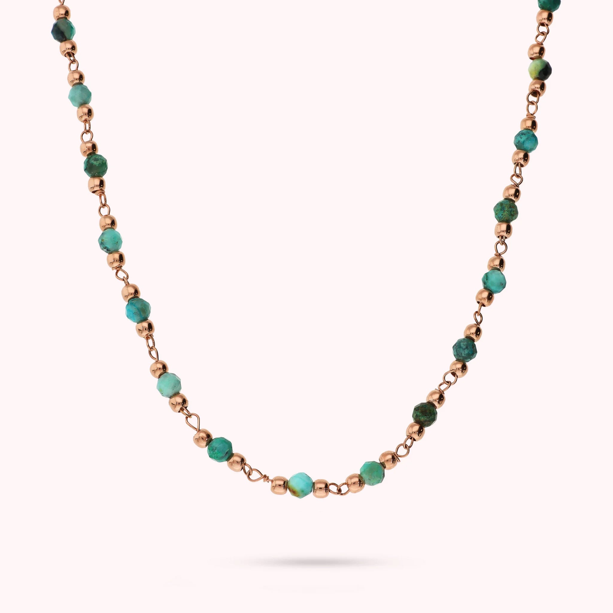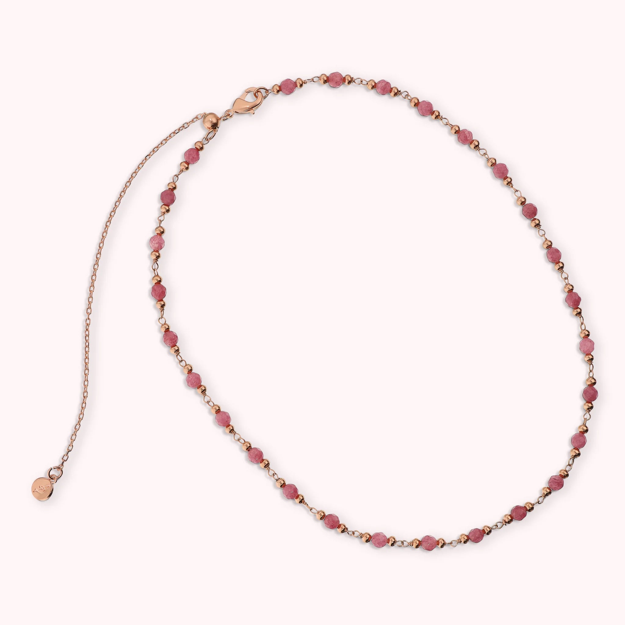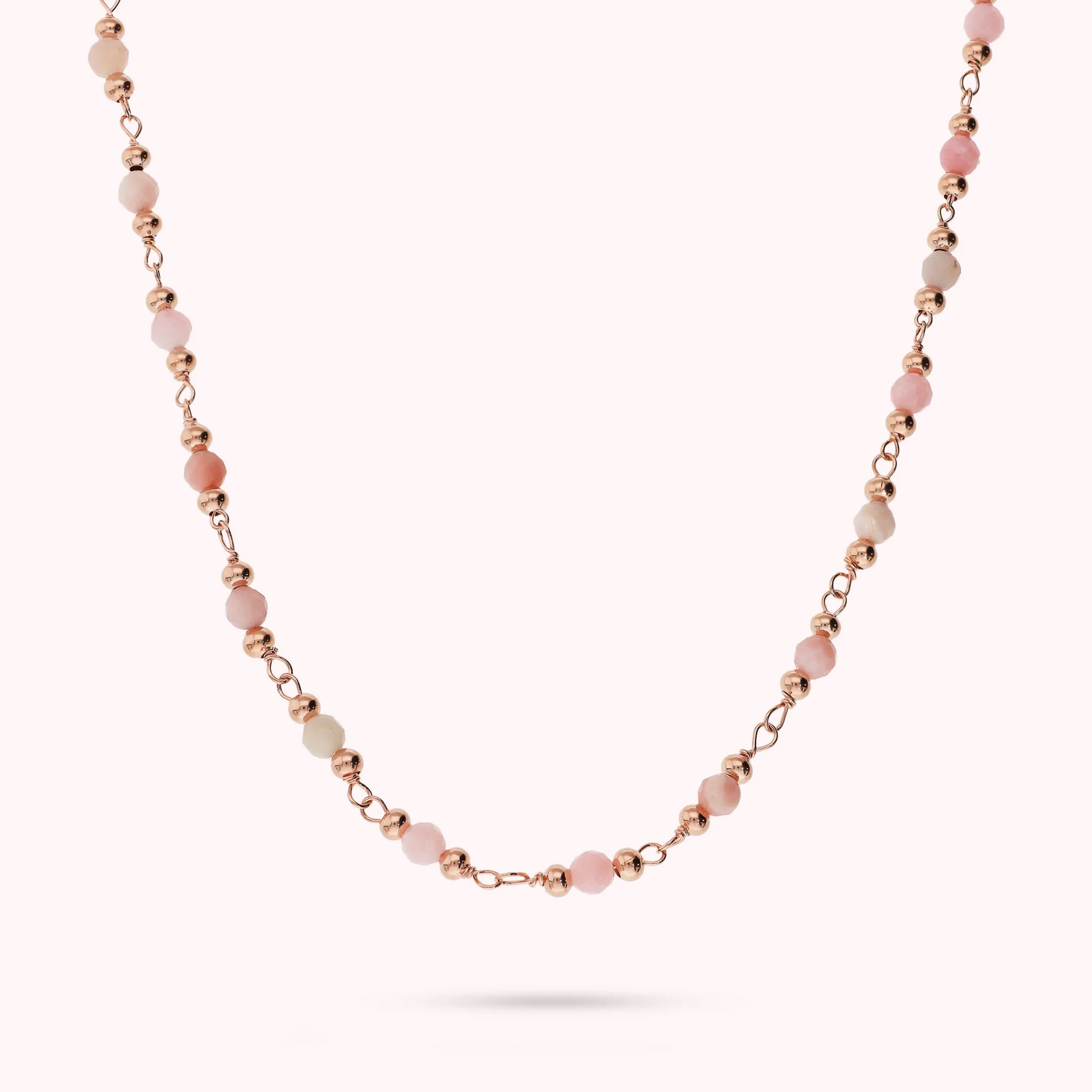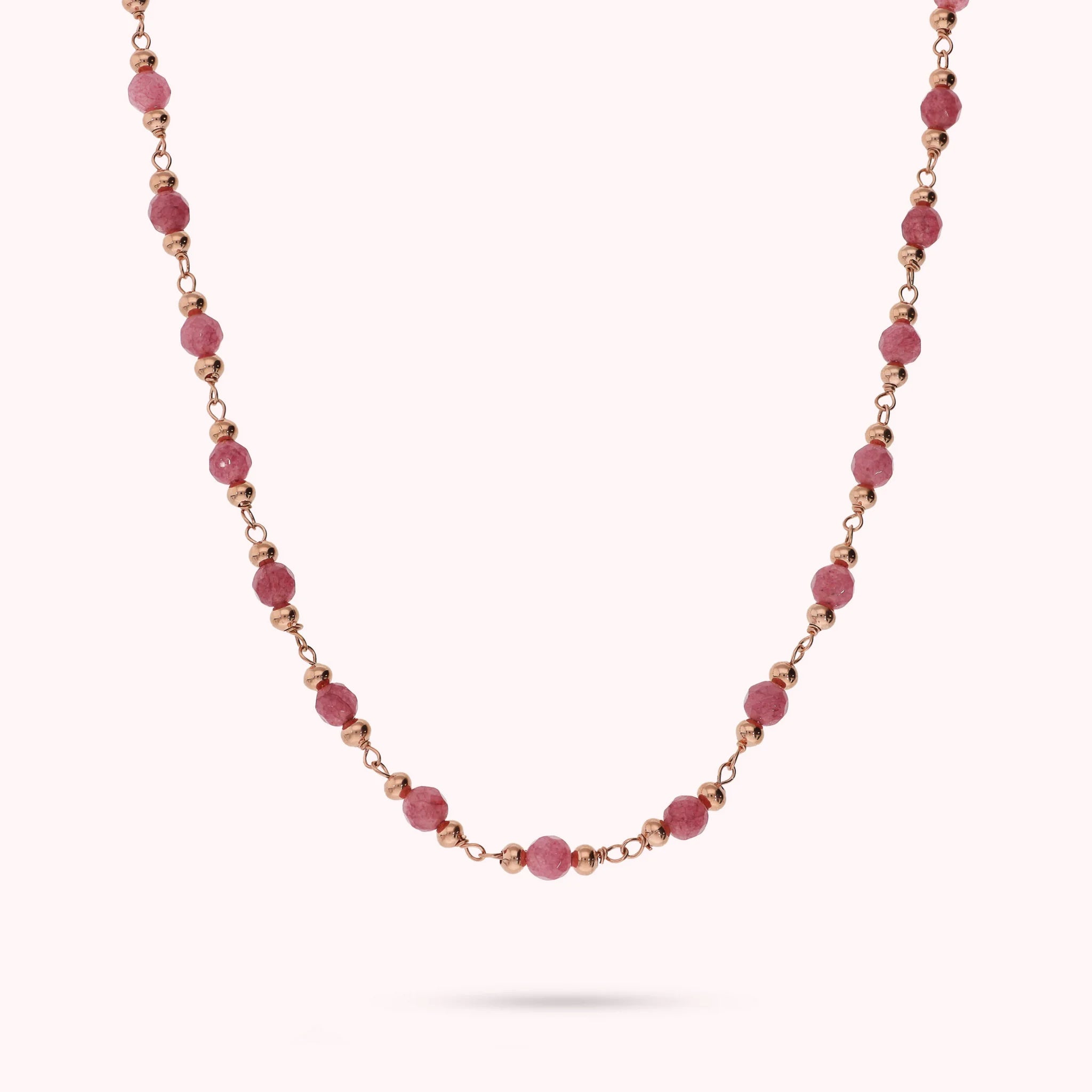 Collier ras du cou rosario Bronzallure réalisé en alliage Golden Rosé, doré à l'or rose fin 18ct, avec des pierres naturelles facettées (4 mm) alternées avec de petites perles brillantes (3 mm). Longueur 16,5 + 4 cm d'extension. Fermeture à mousqueton.