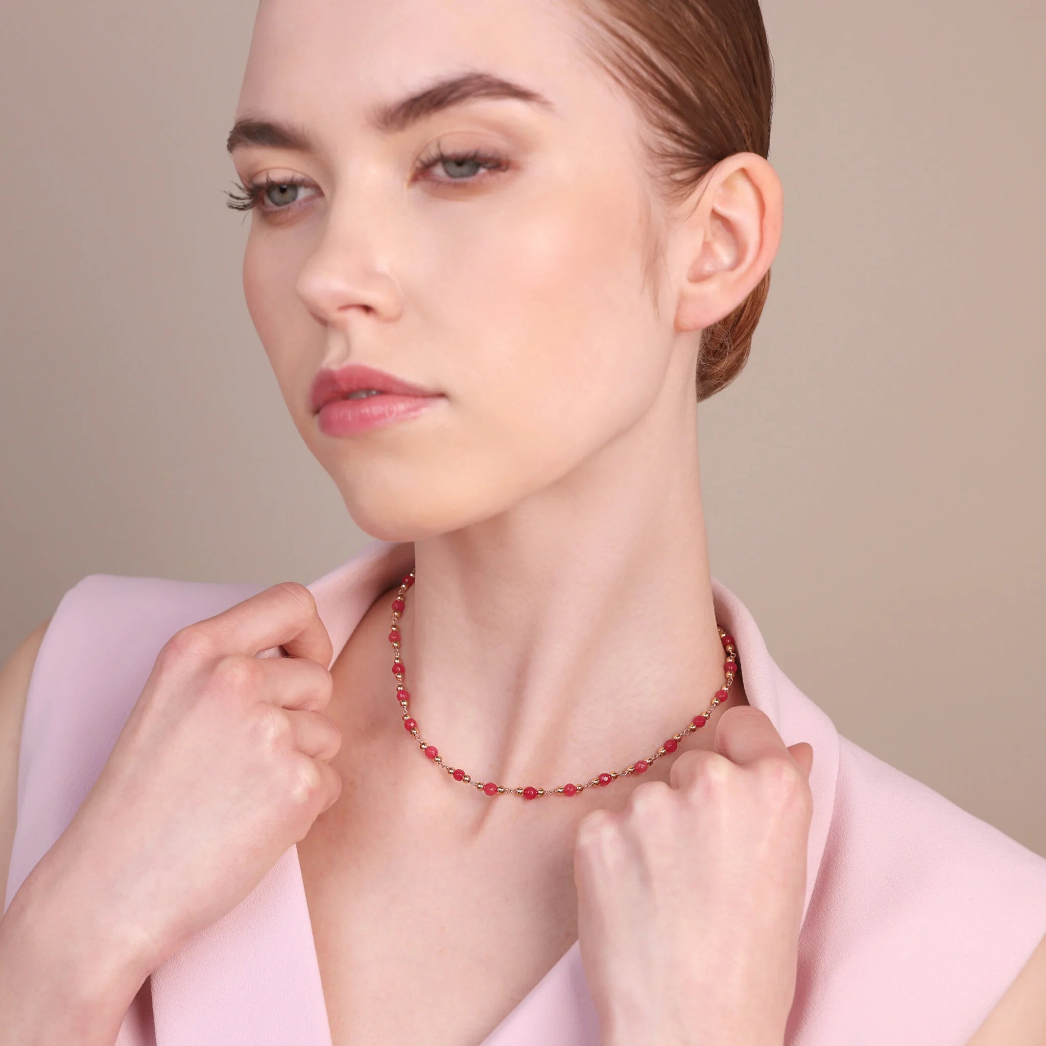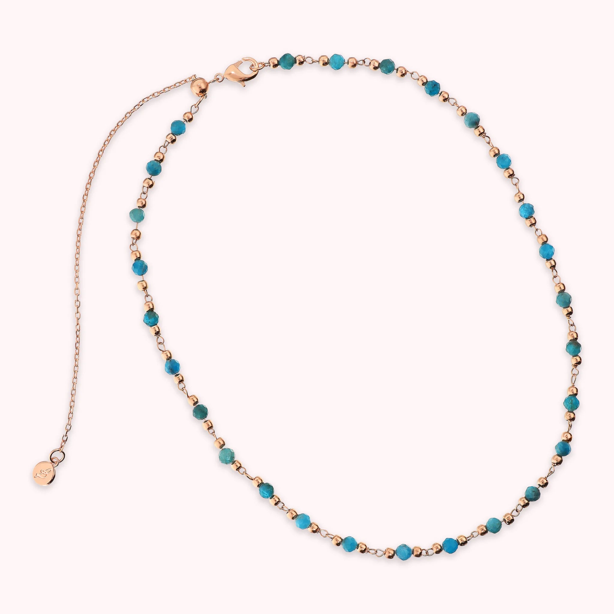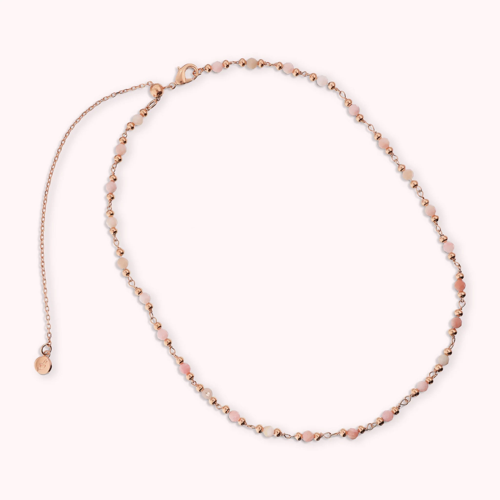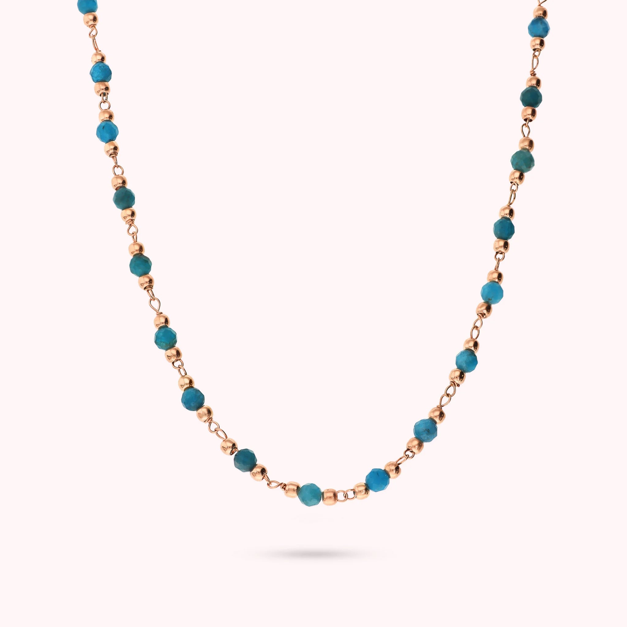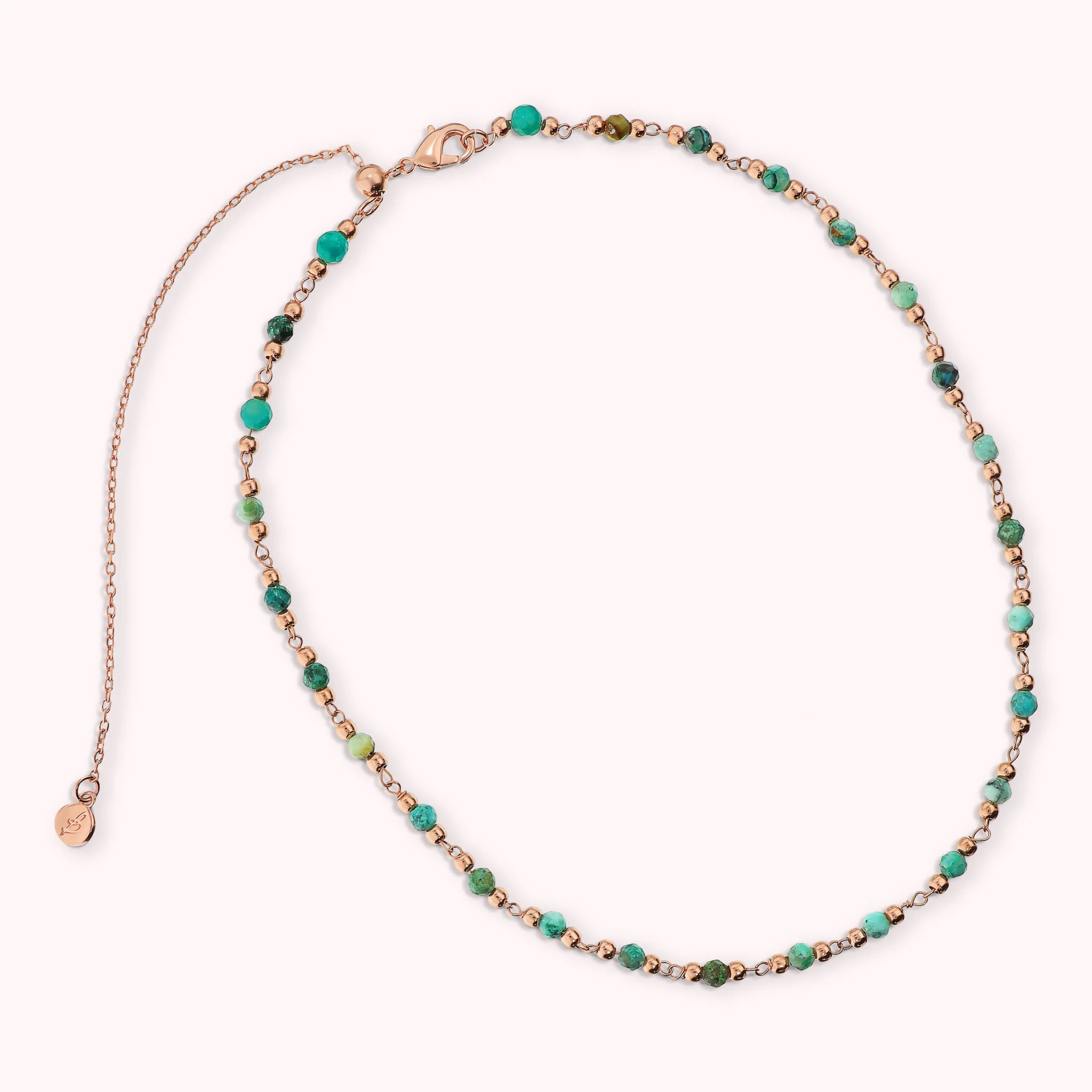 Collier ras du cou rosario Bronzallure réalisé en alliage Golden Rosé, doré à l'or rose fin 18ct, avec des pierres naturelles facettées (4 mm) alternées avec de petites perles brillantes (3 mm). Longueur 16,5 + 4 cm d'extension. Fermeture à mousqueton.