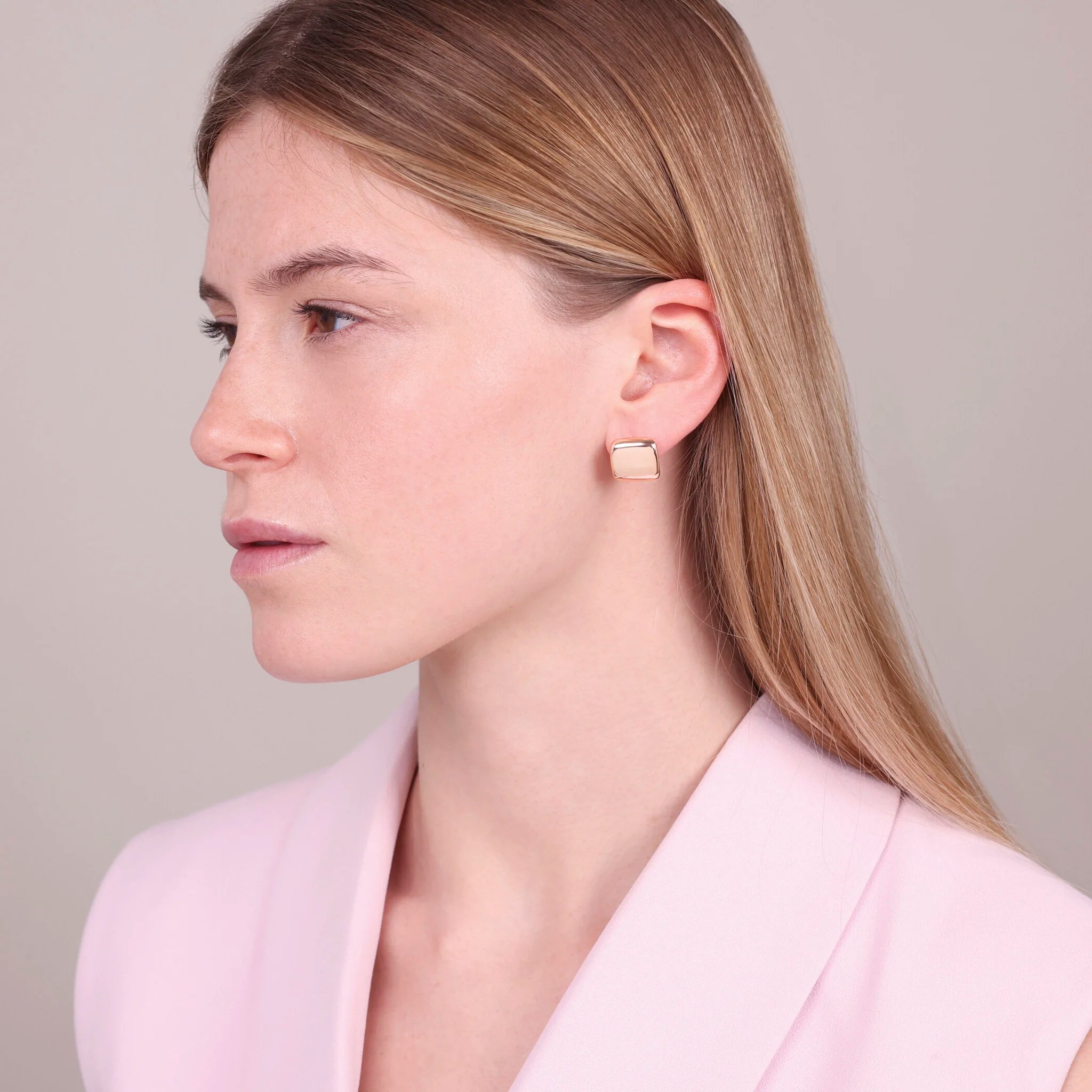Boucles d'oreilles Bronzallure en alliage Golden Rosé, doré à l'or rose fin 18ct, au design carré avec une surface brillante. Fermeture avec un clou à emboîtement.