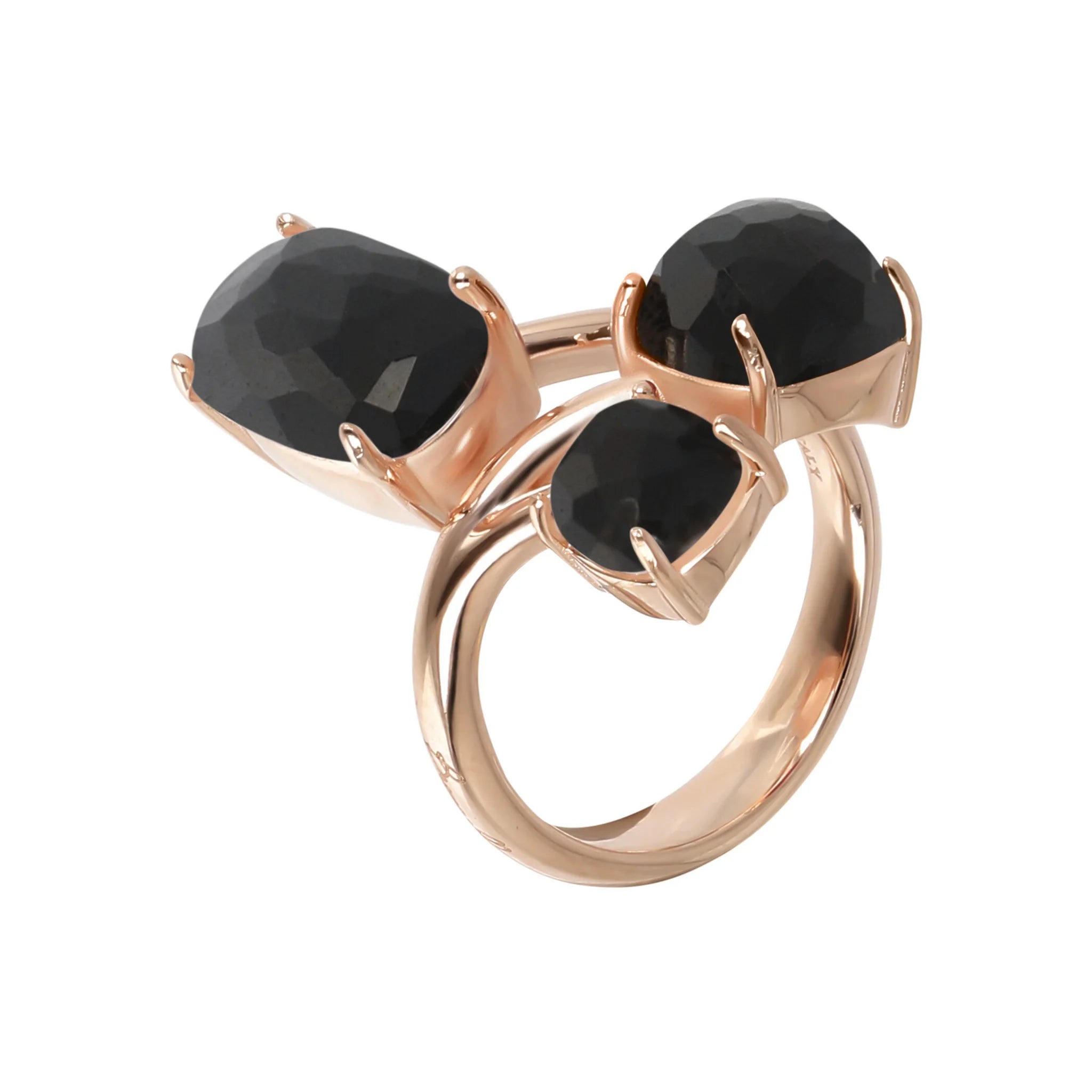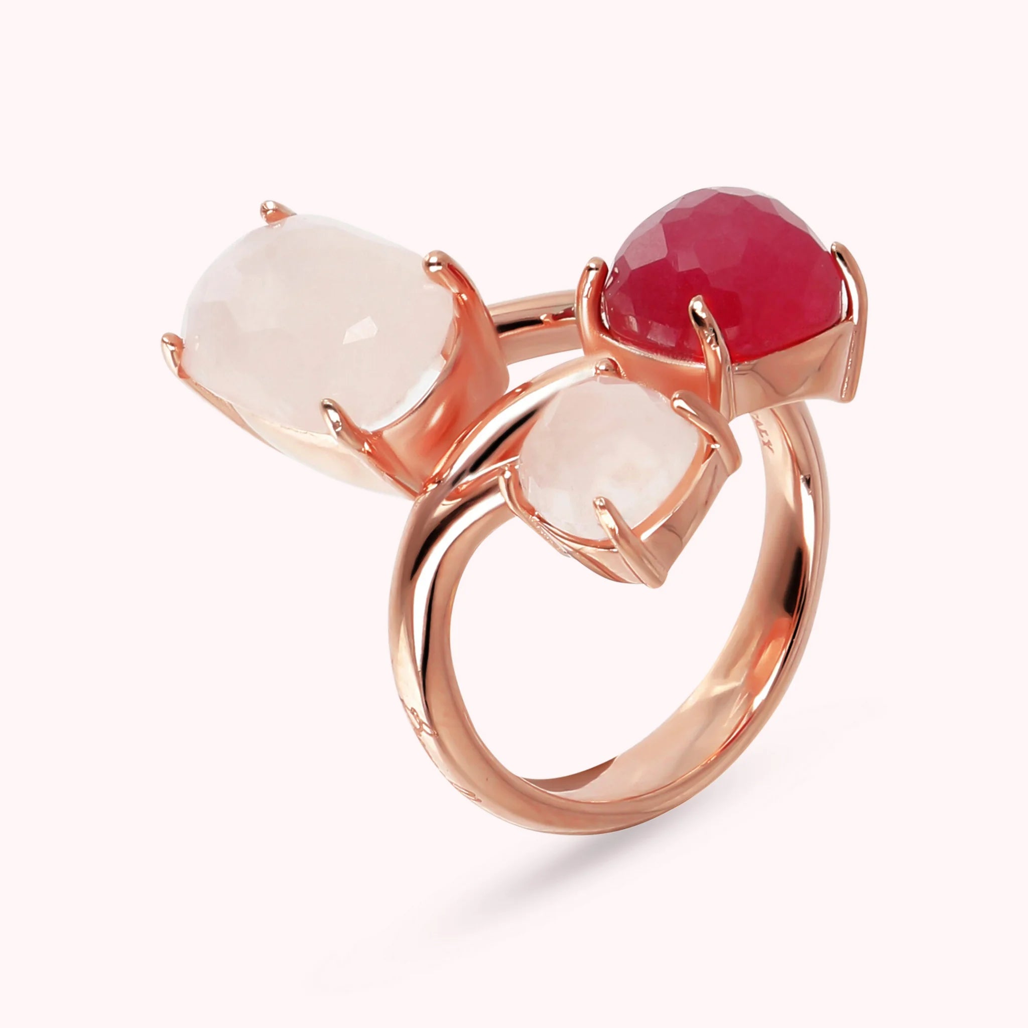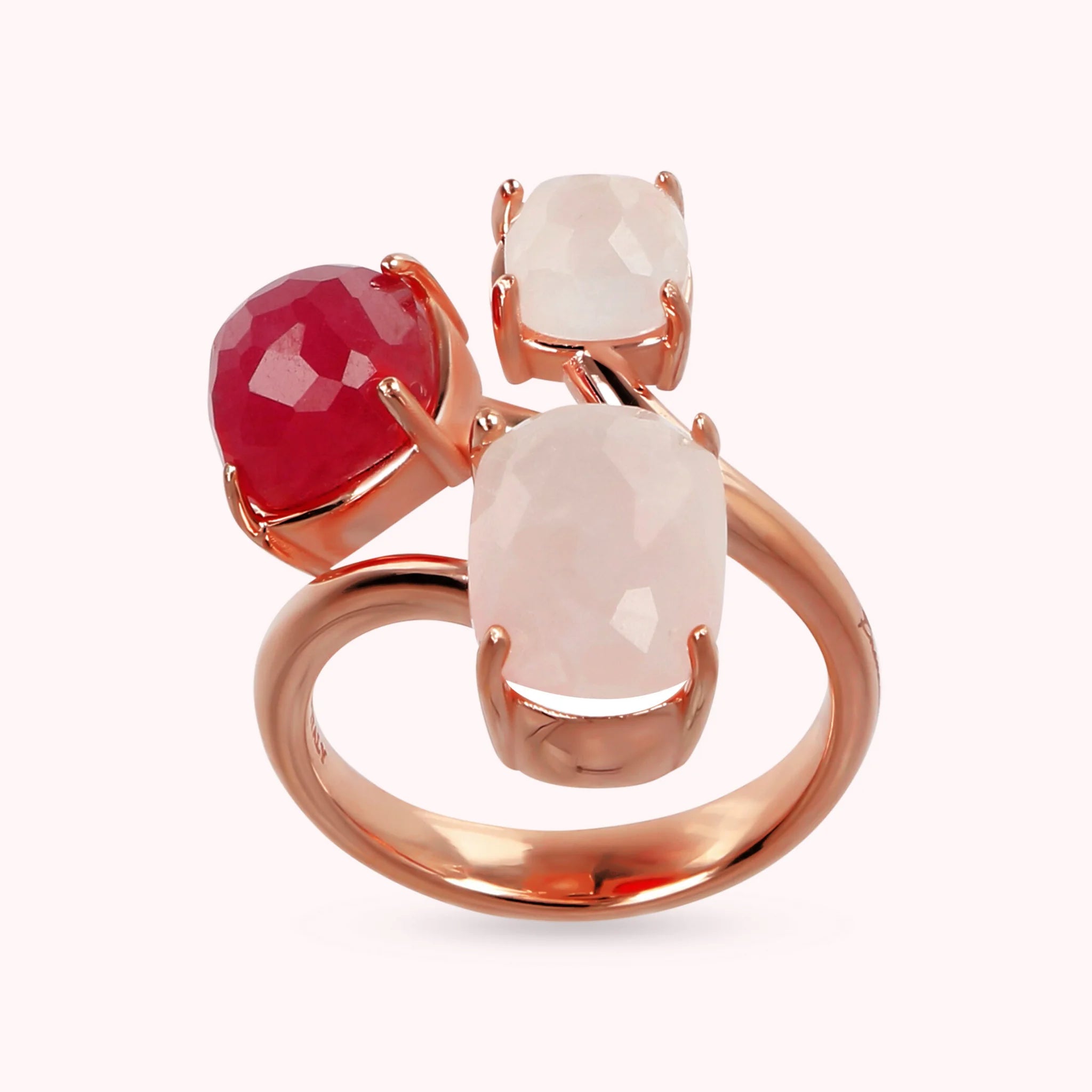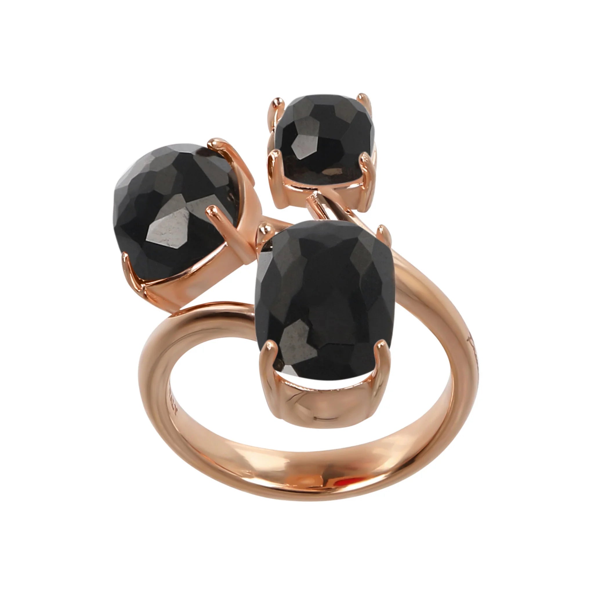 Bague trilogie Bronzallure en alliage Golden Rosé doré à l'or fin 18ct agrémentée de trois pierres naturelles à surface facettée.
