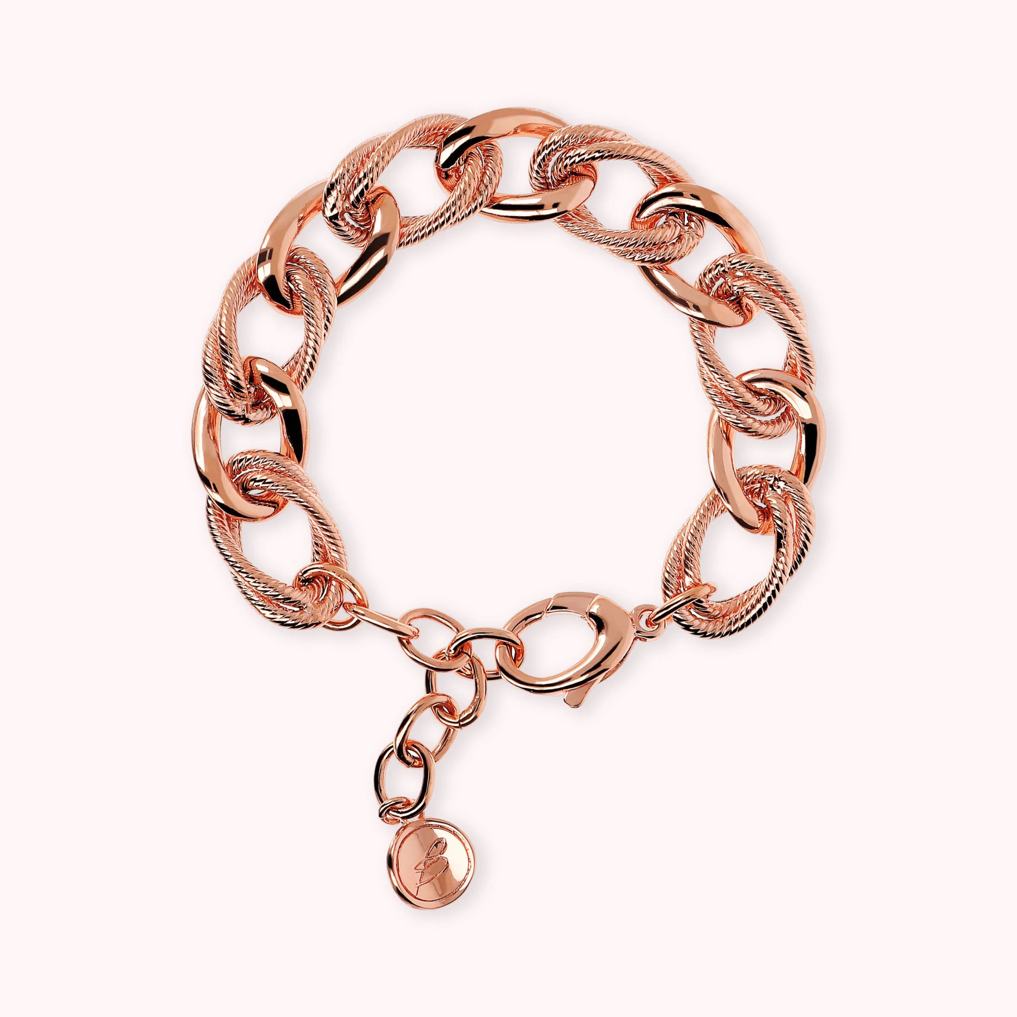 Bracelet Bronzallure réalisé sur une base Golden Rosé, doré à l'or fin 18ct, agrémenté d'une alternance de maille gourmette et de double maille ovale à surface rayée; fermoir mousqueton avec rallonge.