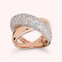 Anello dal volume morbido e avvolgente, dove l’incrocio di luce e brillantezza crea un effetto sofisticato e deciso. Un gioiello che dona personalità e luce a ogni gesto.